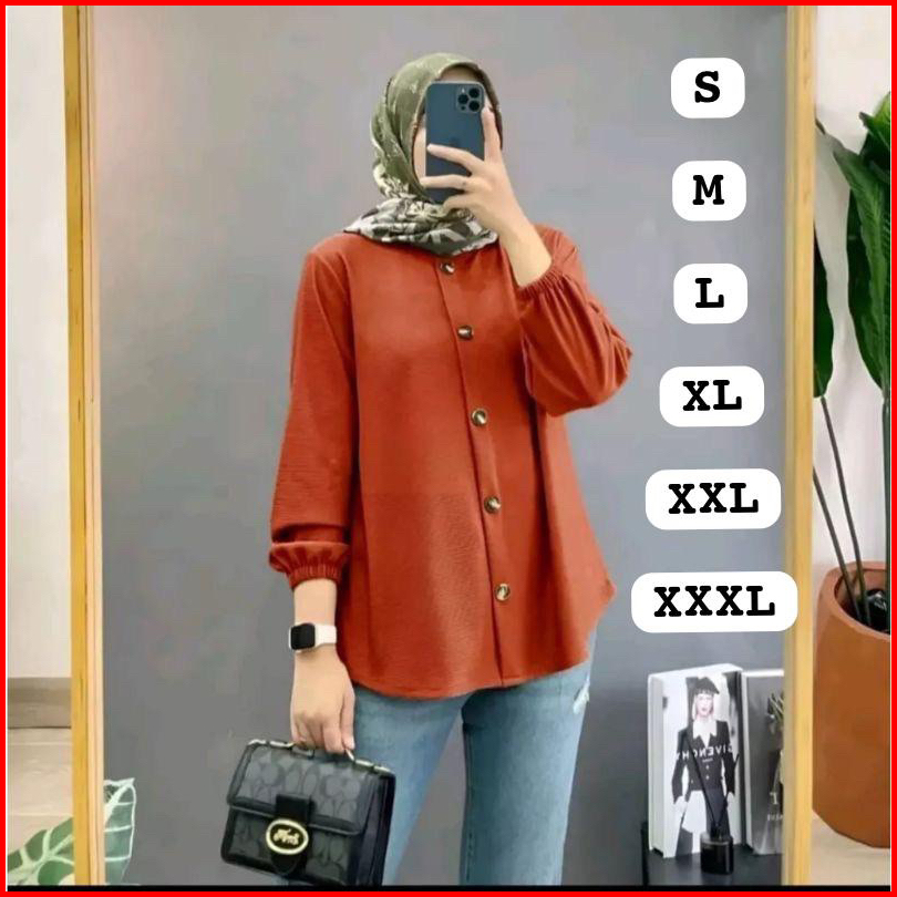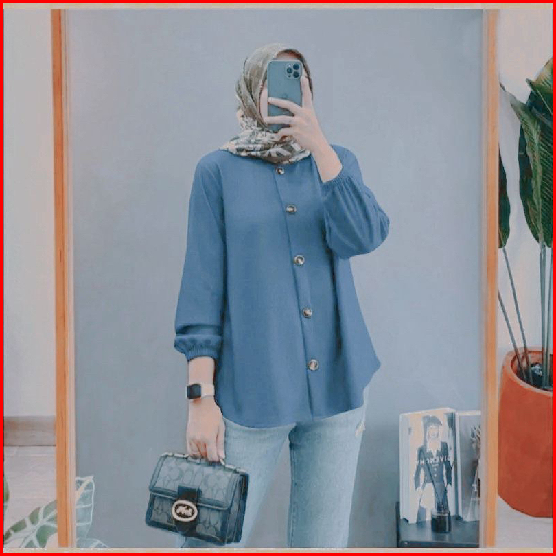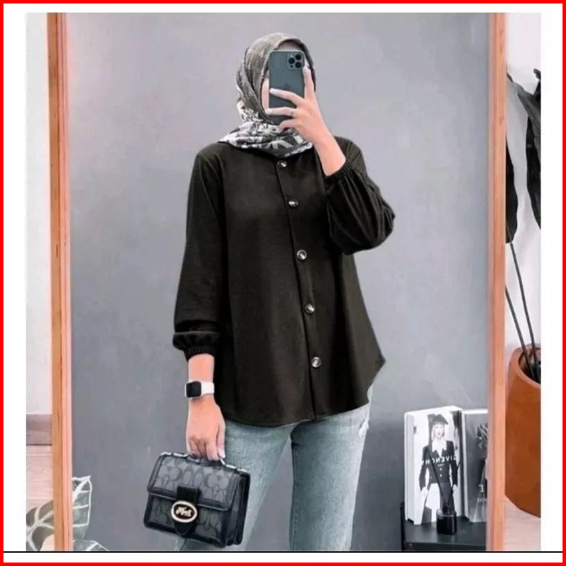 Kemeja Wanita Atasan Wanita Cringkel Airflow Lengan Karet-kemeja Blouse Kekinian