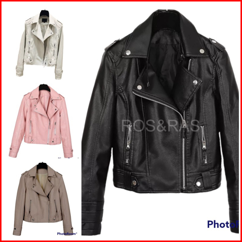 Jaket Kulit Wanita Crop Rock N Roll K2 Semi Kulit Sintetis Jaket Perempuan Jaket Wanita Hitam Mocca Pink Putih