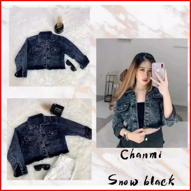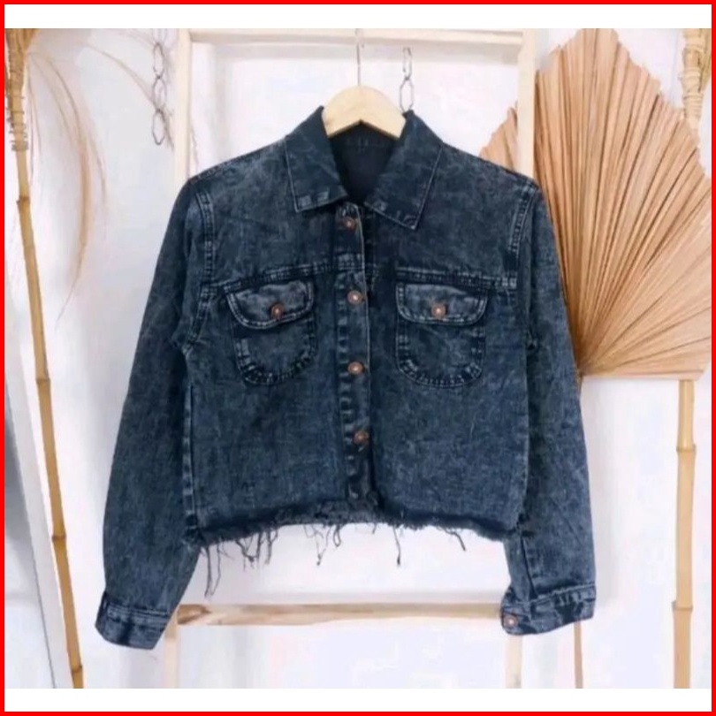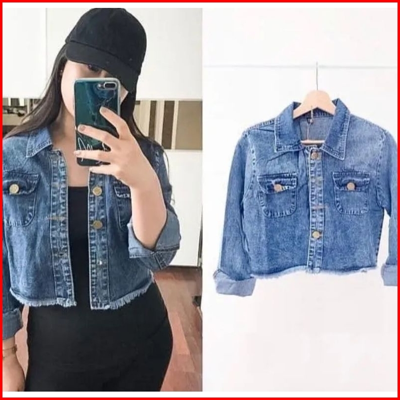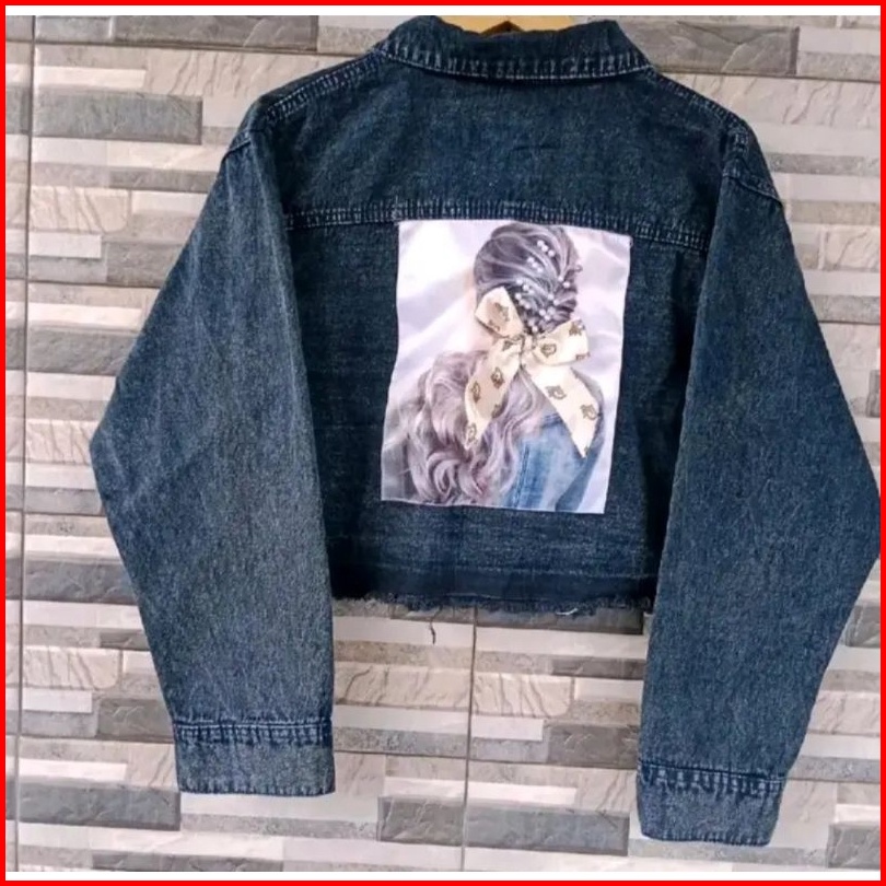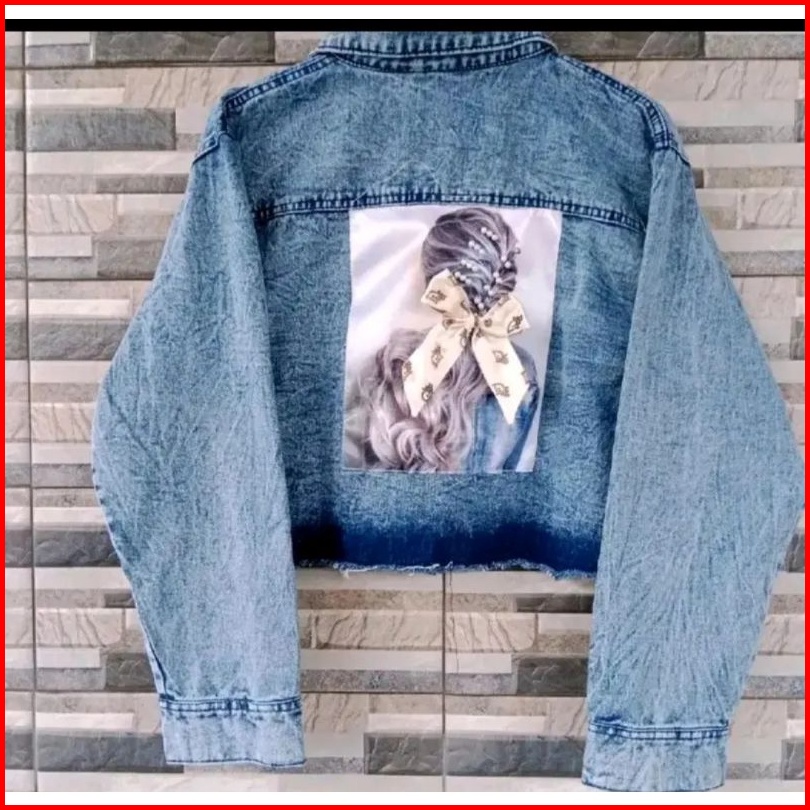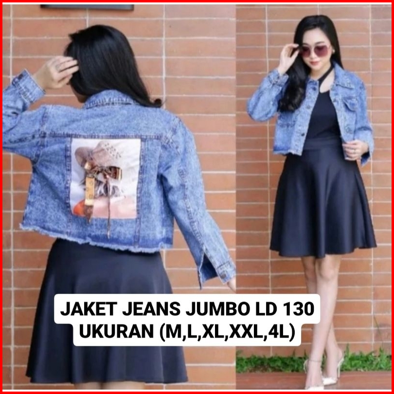 Jaket Jeans Wanita Crop Rawis Pita Belakang Super Jumbo Ld 130 M L Xl Xxl 4xl
