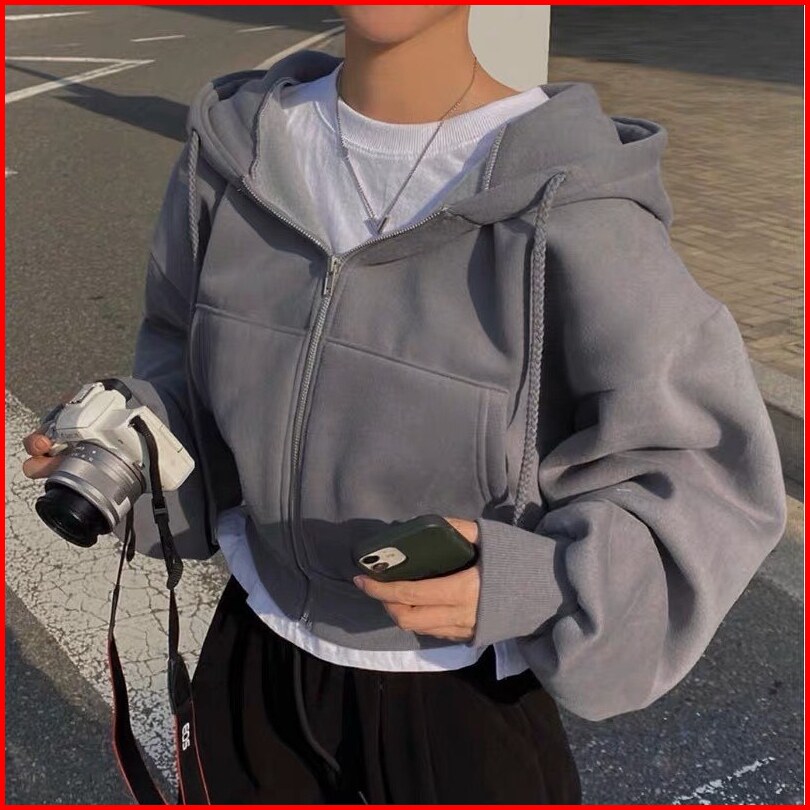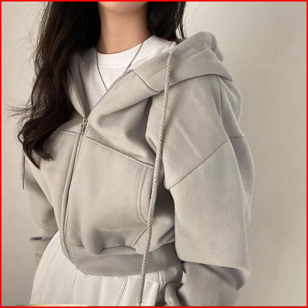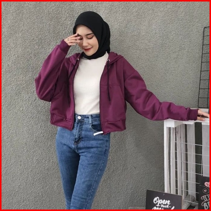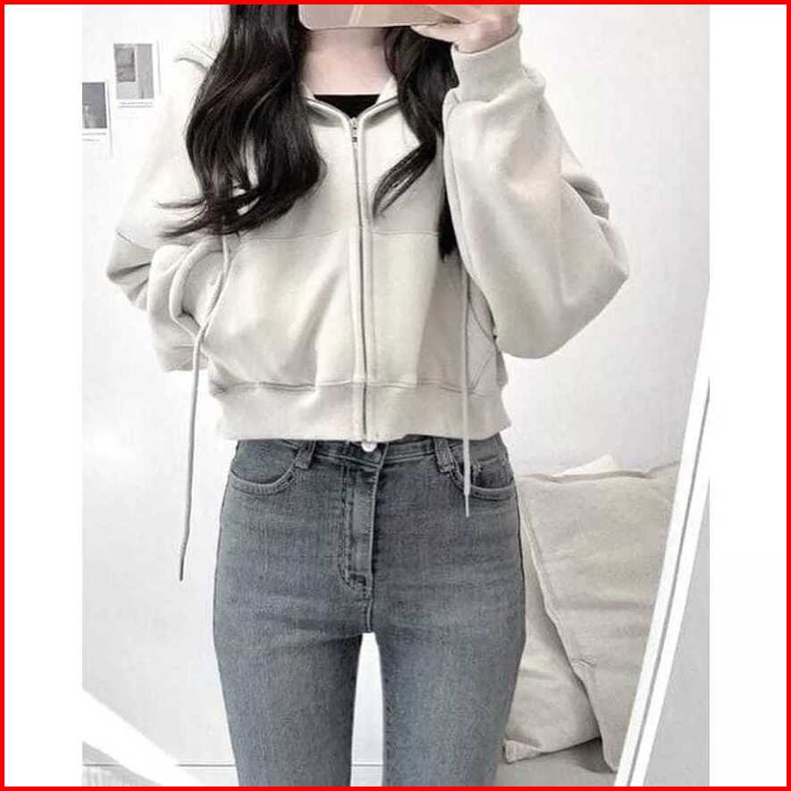 Jaket Croope Hoodie Wanita Zipper - Sweater Wanita Omera Crope