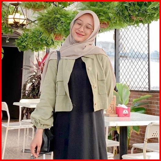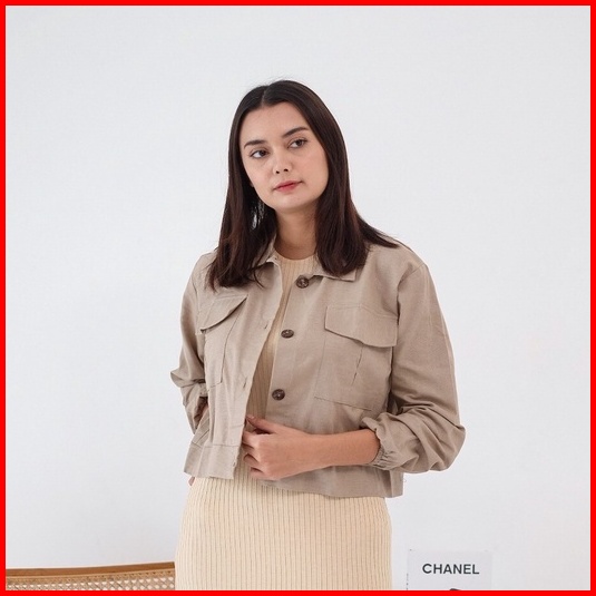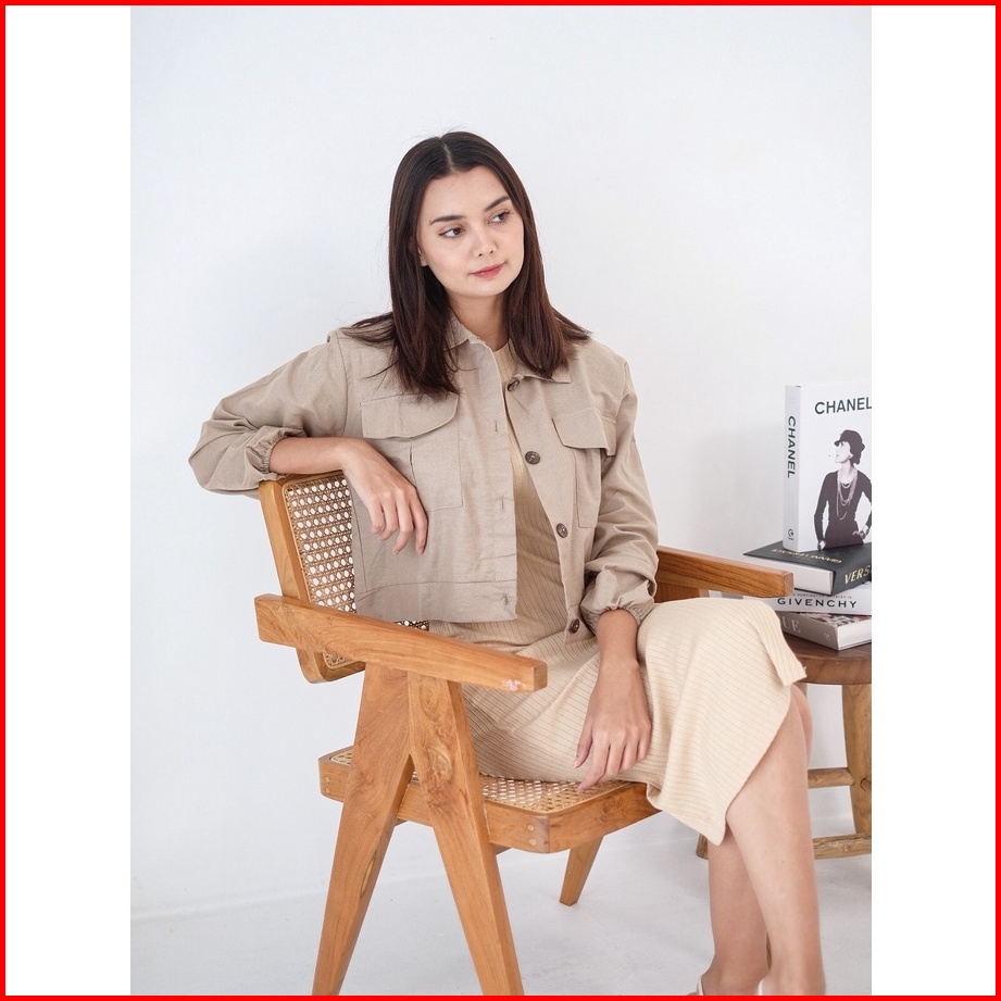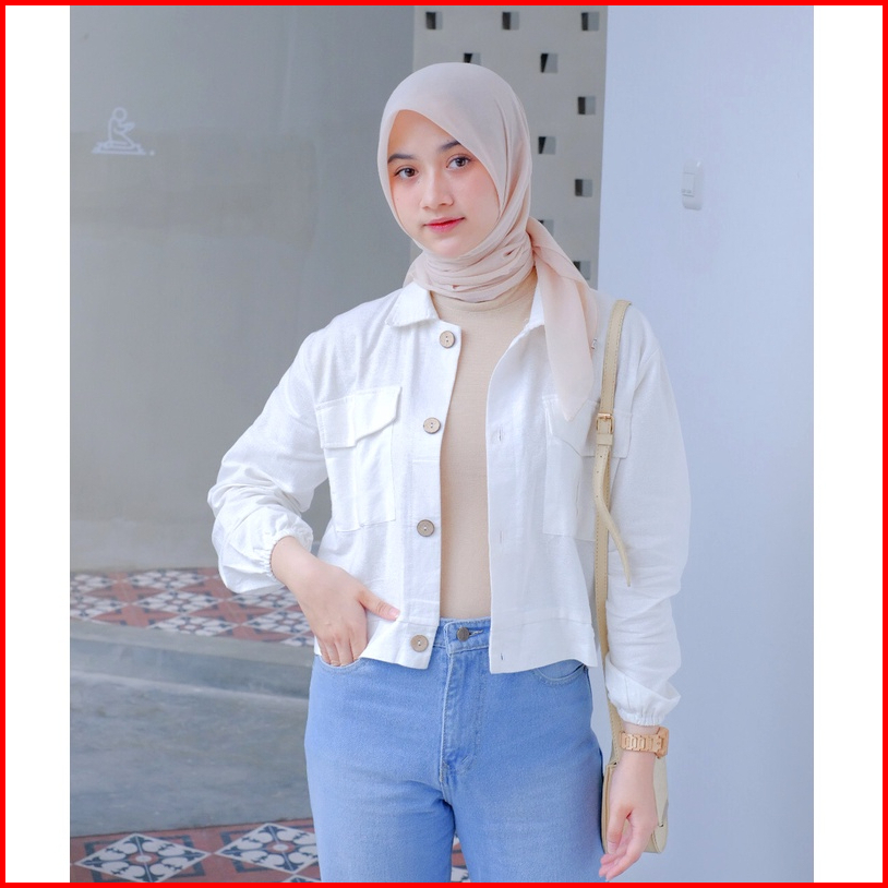 Lyora Shirt Linen Crop Atasan Outer Kameja Jaket Wanita Tangan Kerut