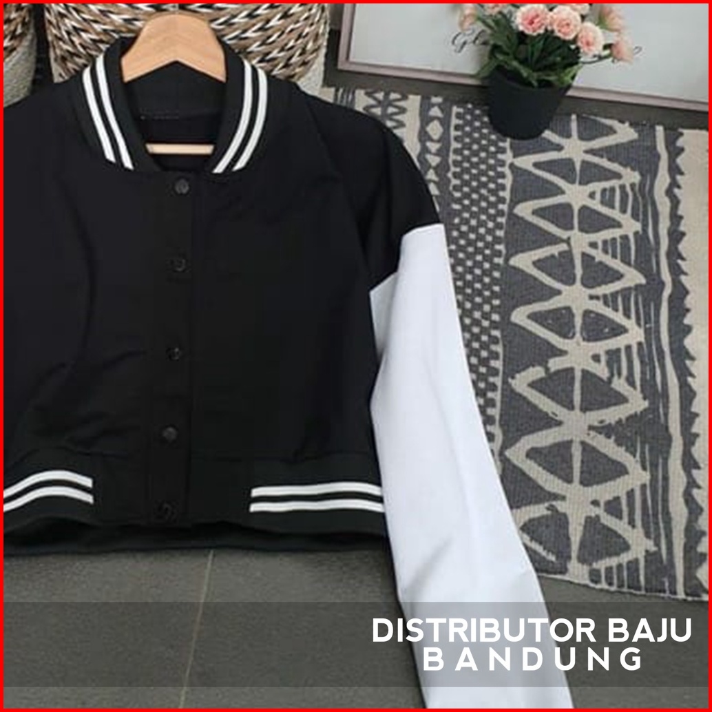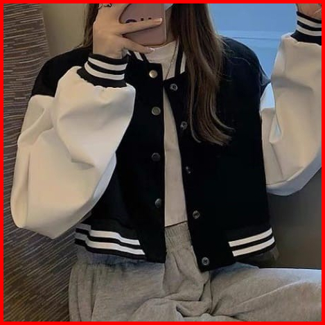 Jaket Baseball Crop Wanita Korean Style Varsity Atasan Wanita Jaket Crop Wanita Bahan Fleece