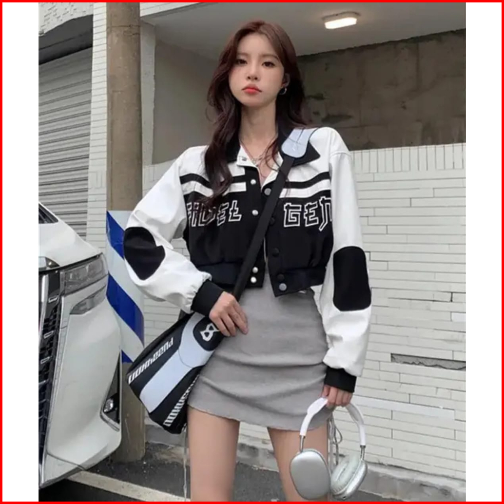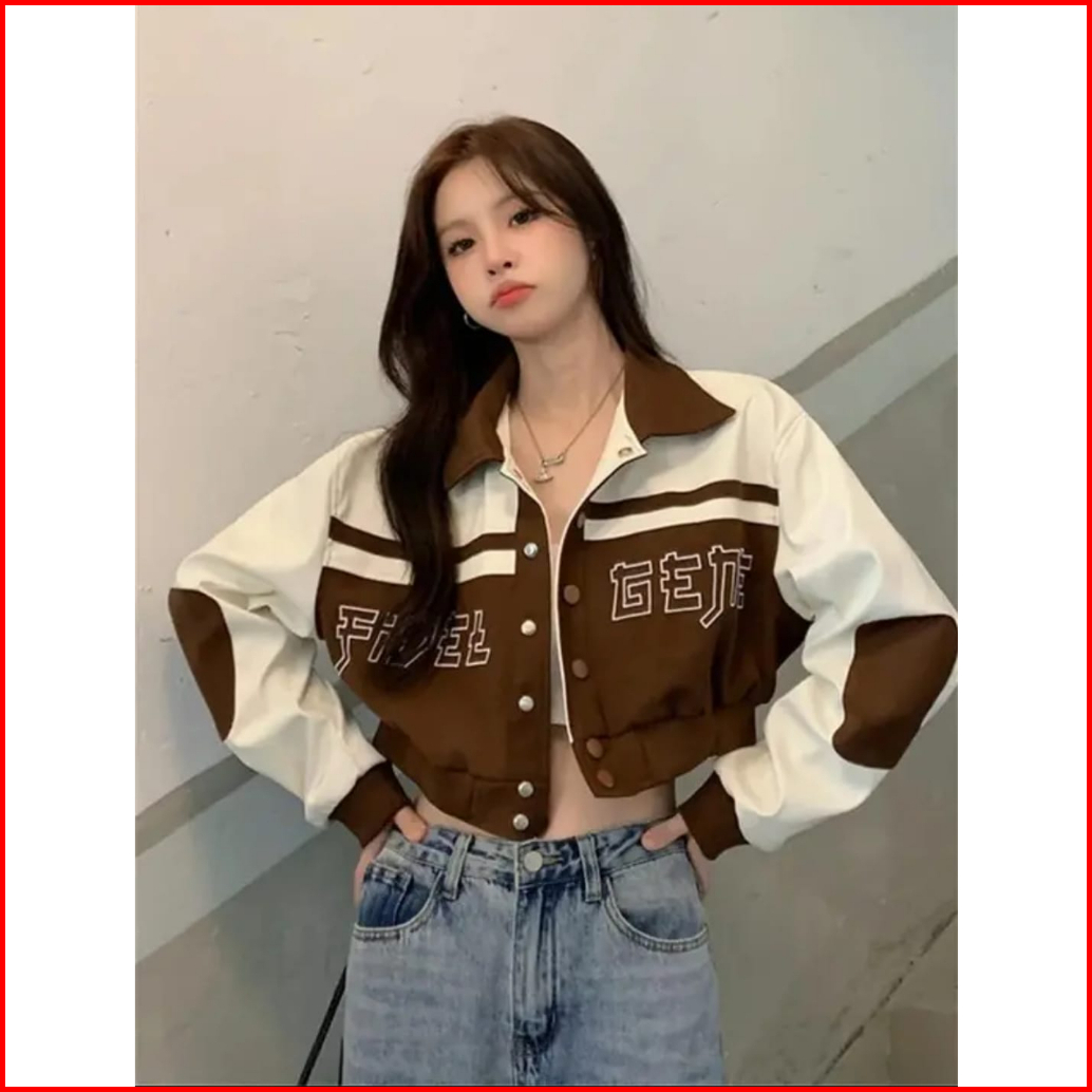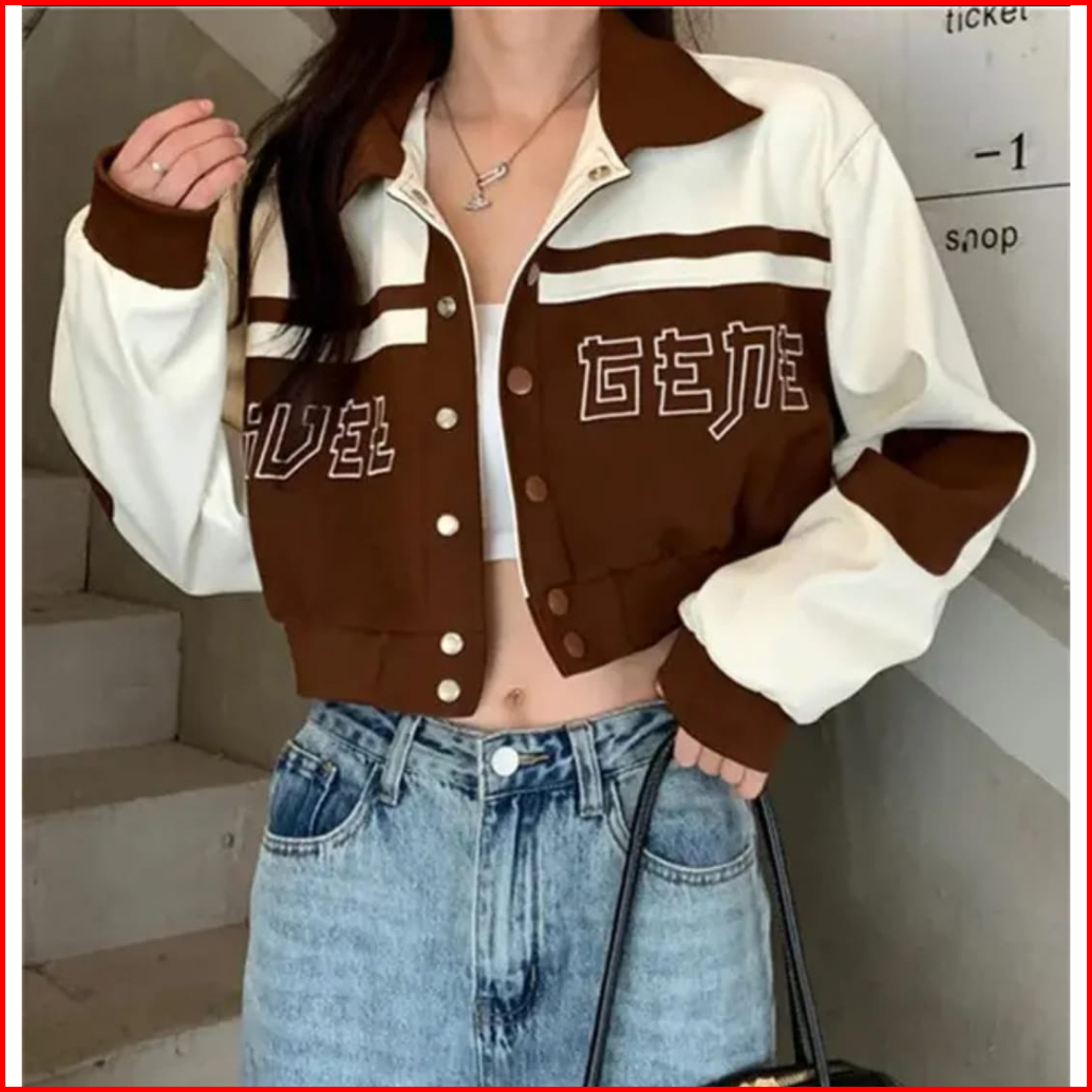 Jacket Crop Wanita Gaya Korean Style Lucu - Guci Croope Jacket Kerah Wanita Kekinian - Crop Top Sweater