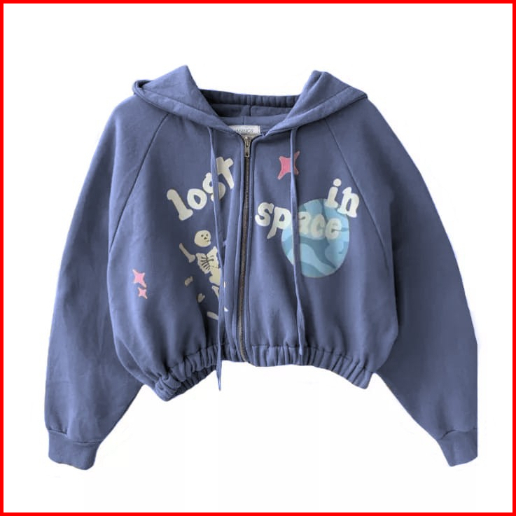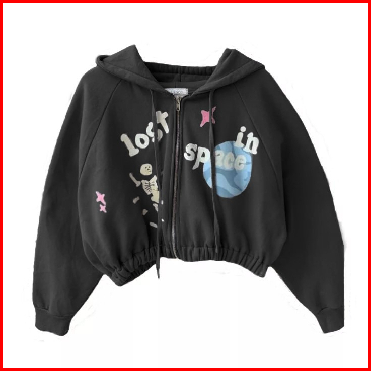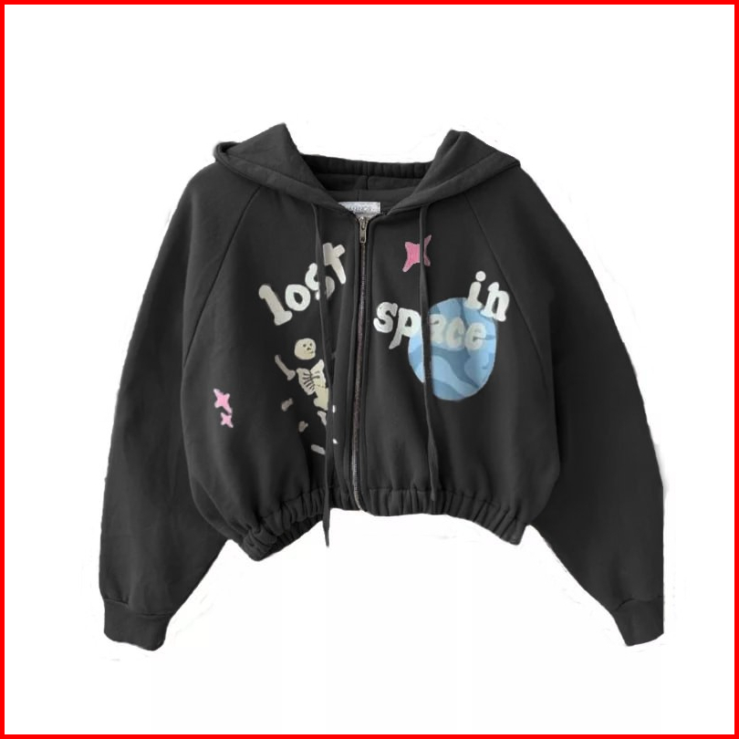 Space In Jaket - Jaket Crop Zipper Hoodie Wanita - Jaket Wanita