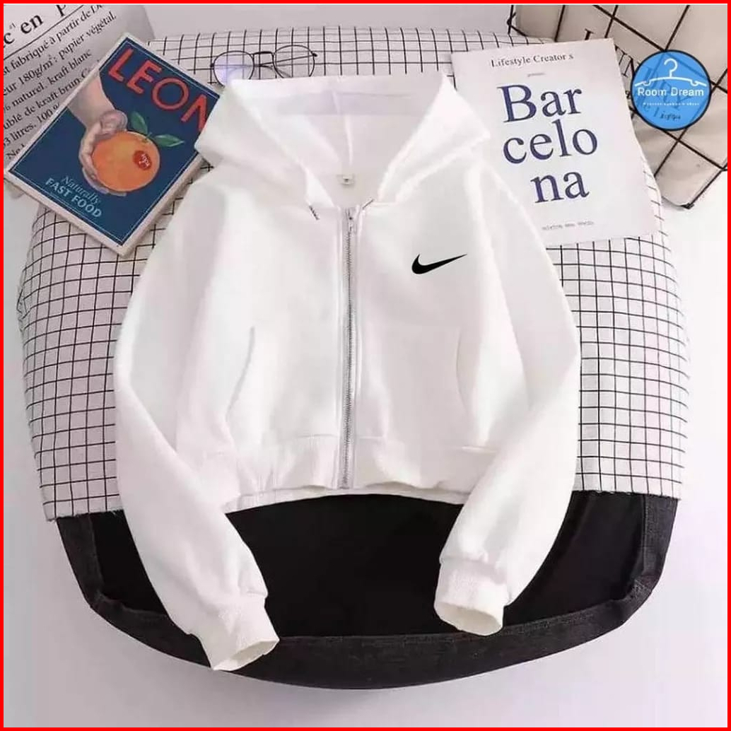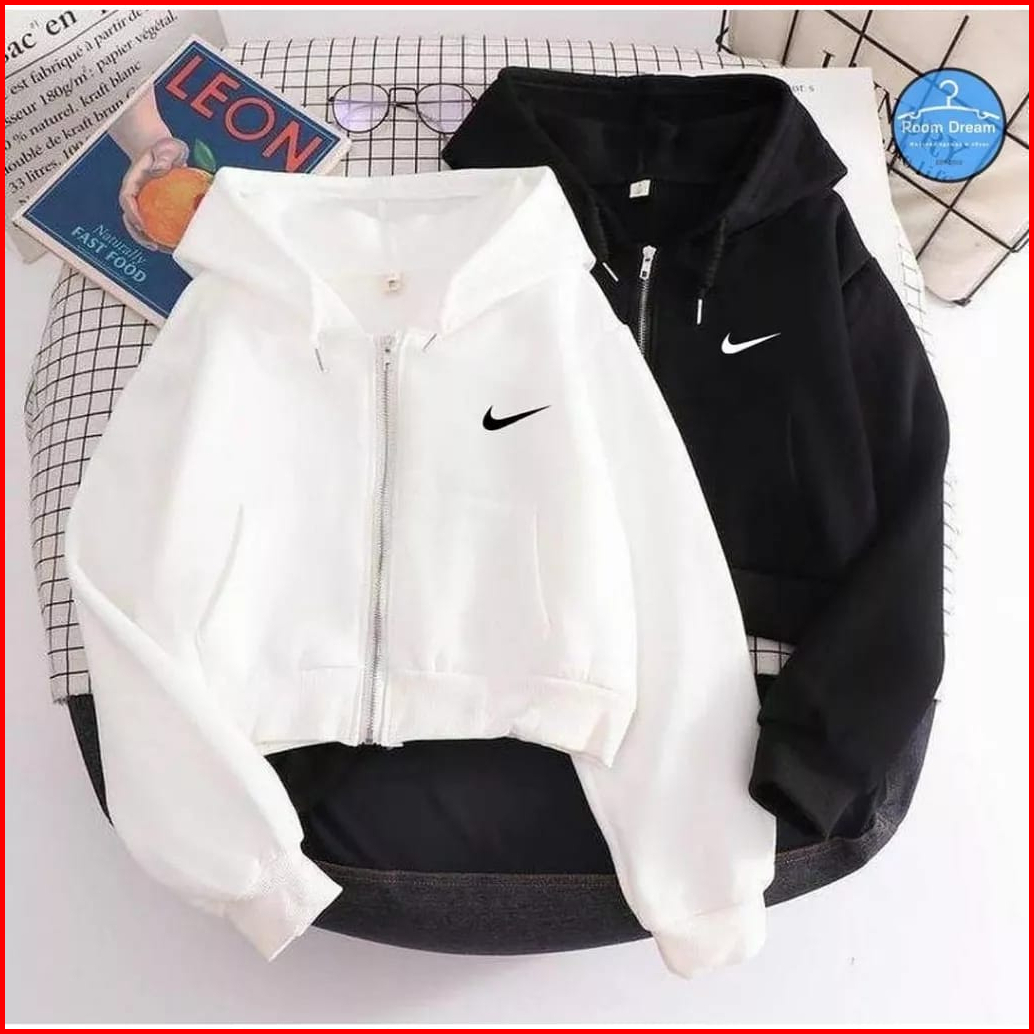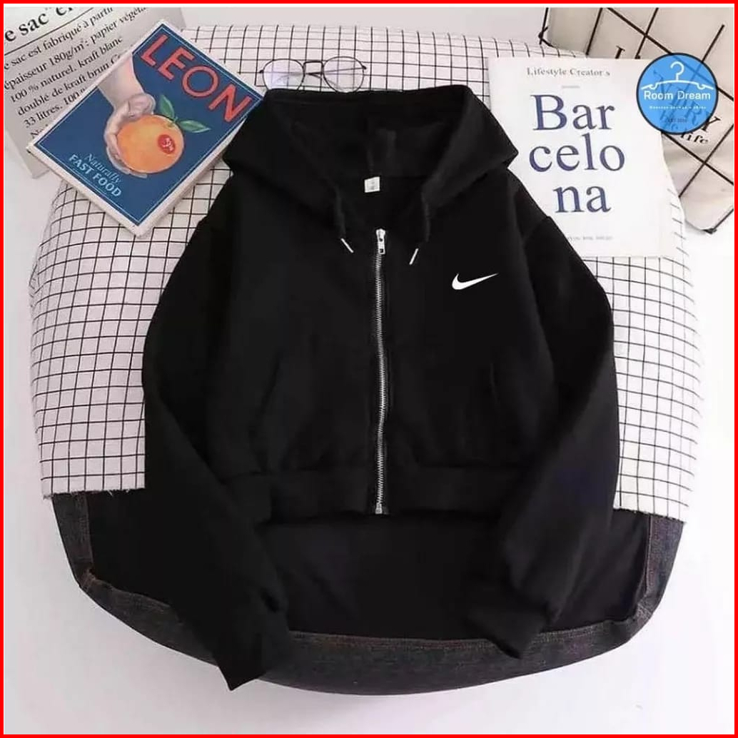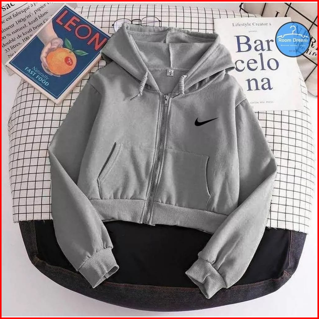 Nk Croope Hoodie Ziper Wanita Oversize - Sweater Jaket Crope Korean Style Kekinian
