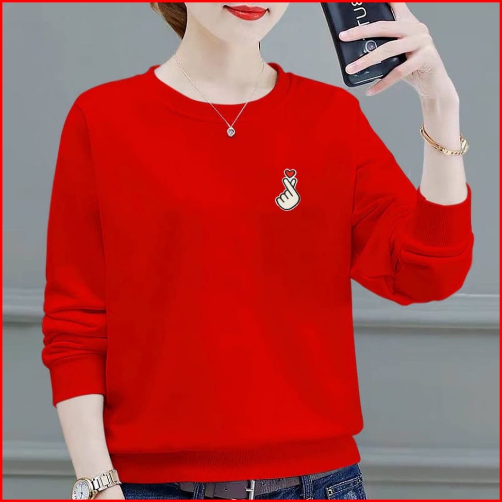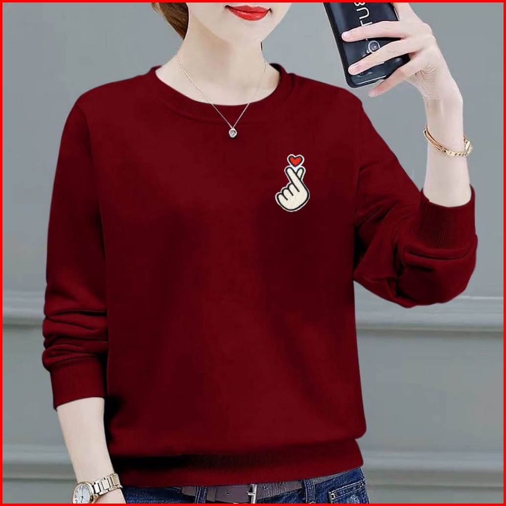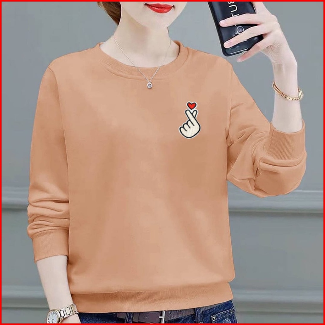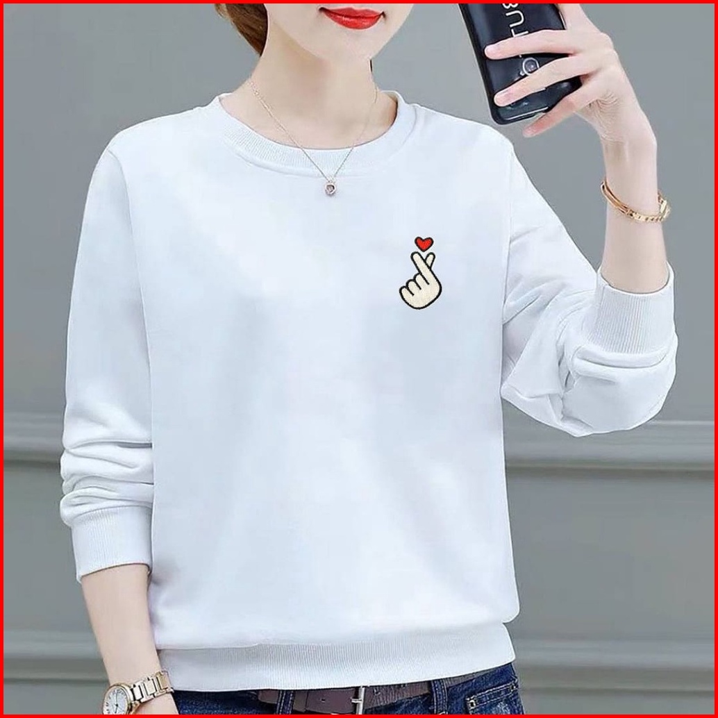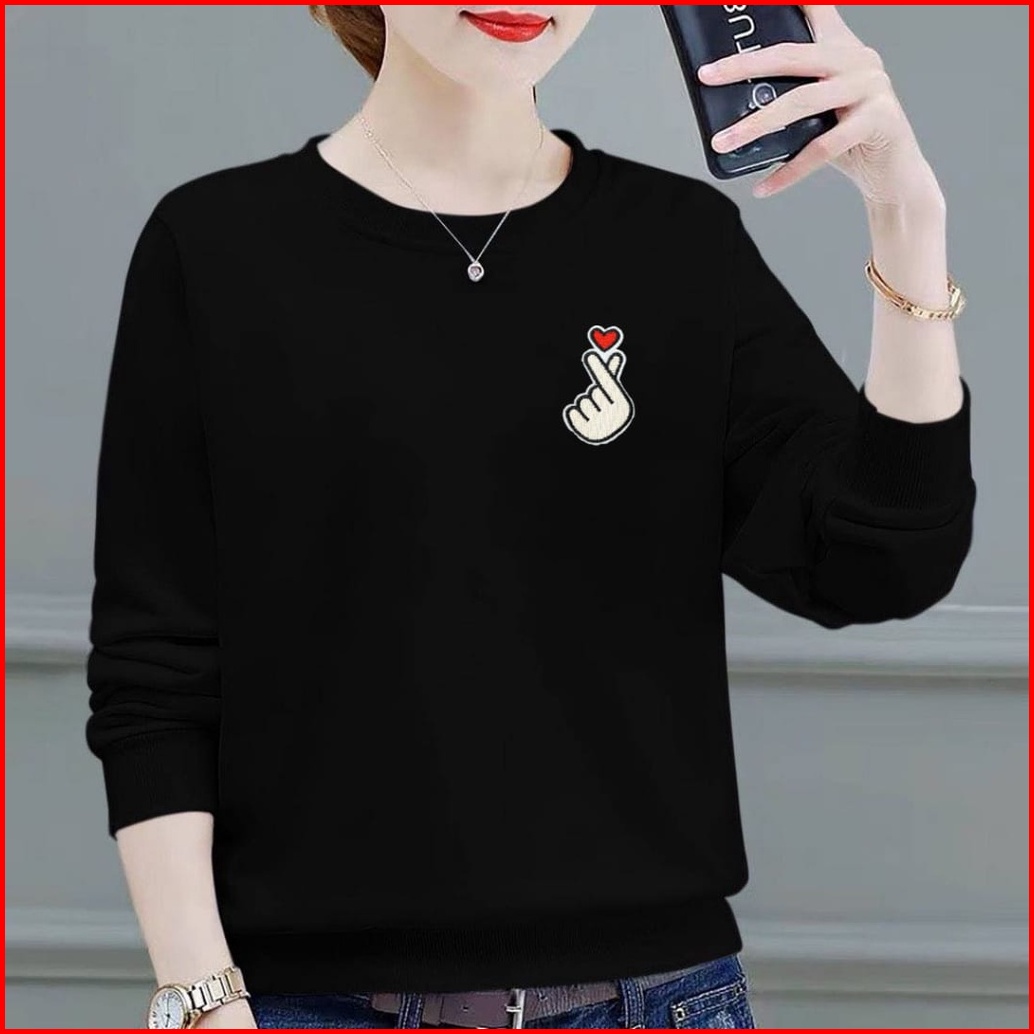 Kaos Lengan Panjang Wanita Logo Saranghae Kaos Sweatshirt Wanita Atasan Wanita Lengan Panjang
