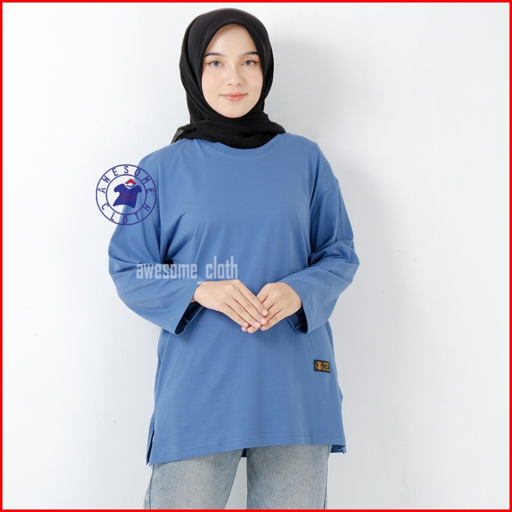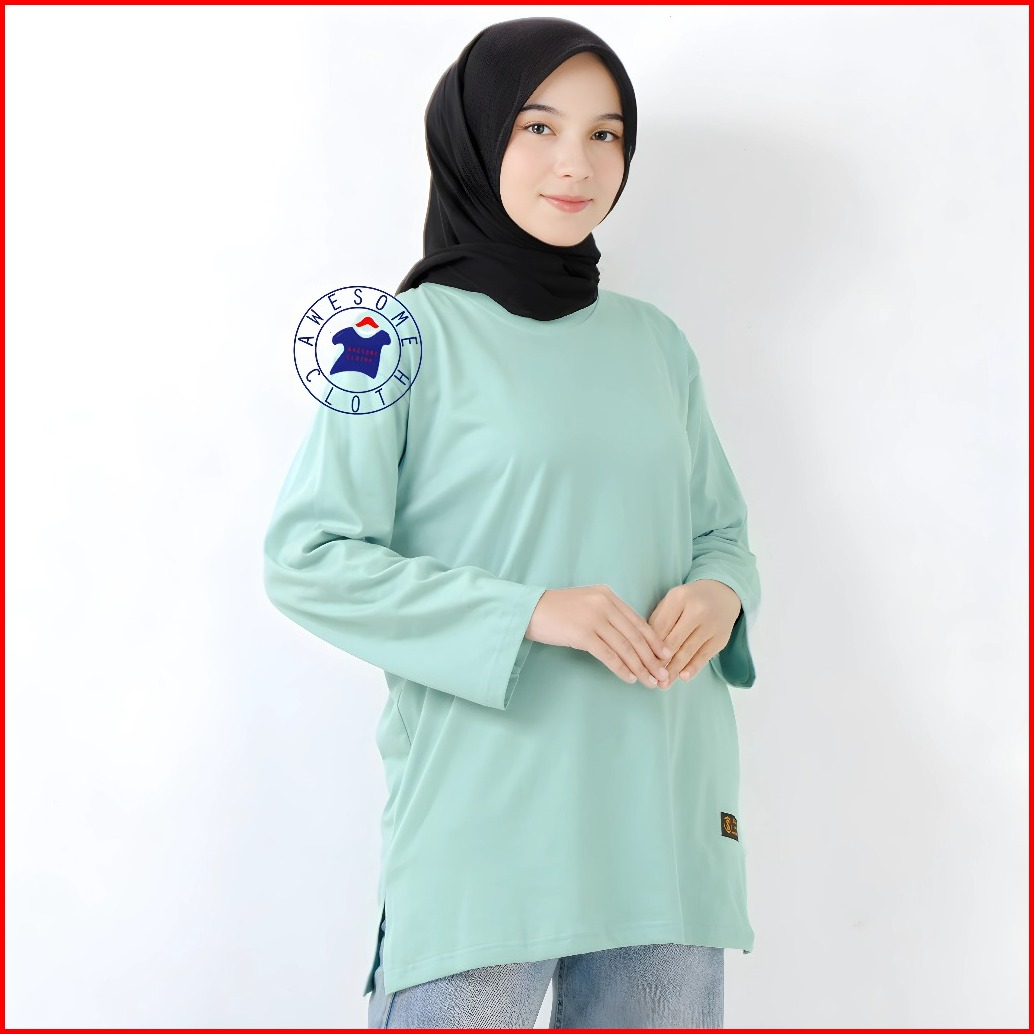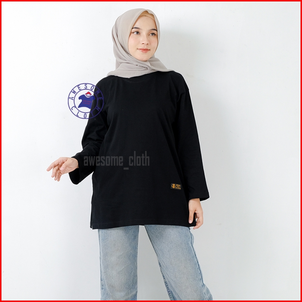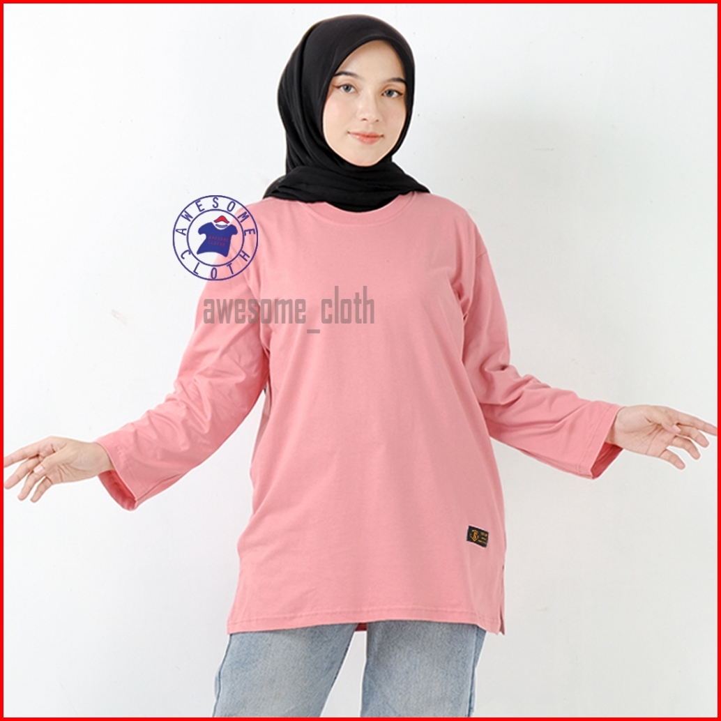 Baju Kaos Oversize Wanita Lengan Panjang Kaos Oversize Polos Wanita Longsleeve Jumbo Kekinian Murah