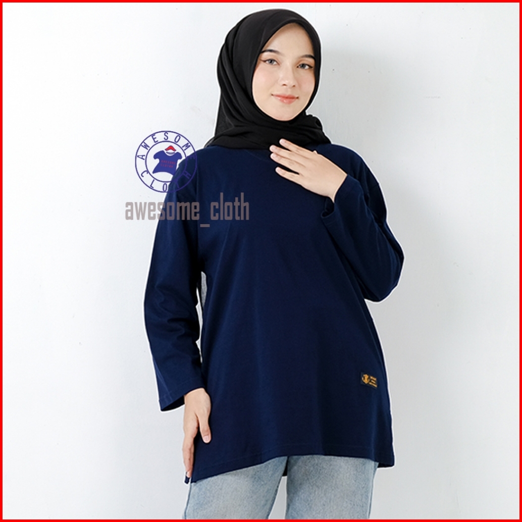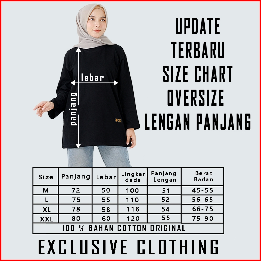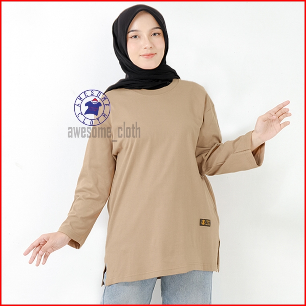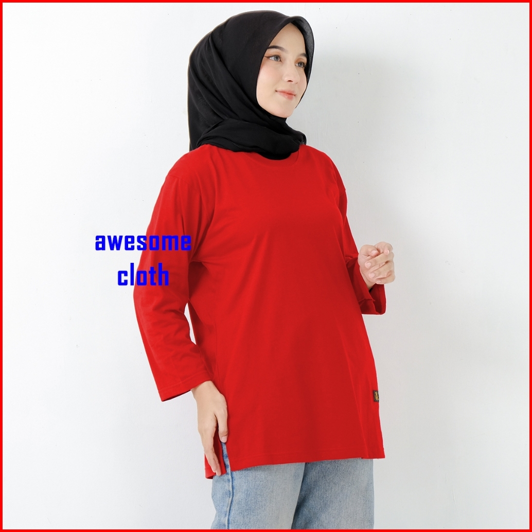 Baju Kaos Oversize Wanita Lengan Panjang Kaos Oversize Polos Wanita Longsleeve Jumbo Kekinian Murah