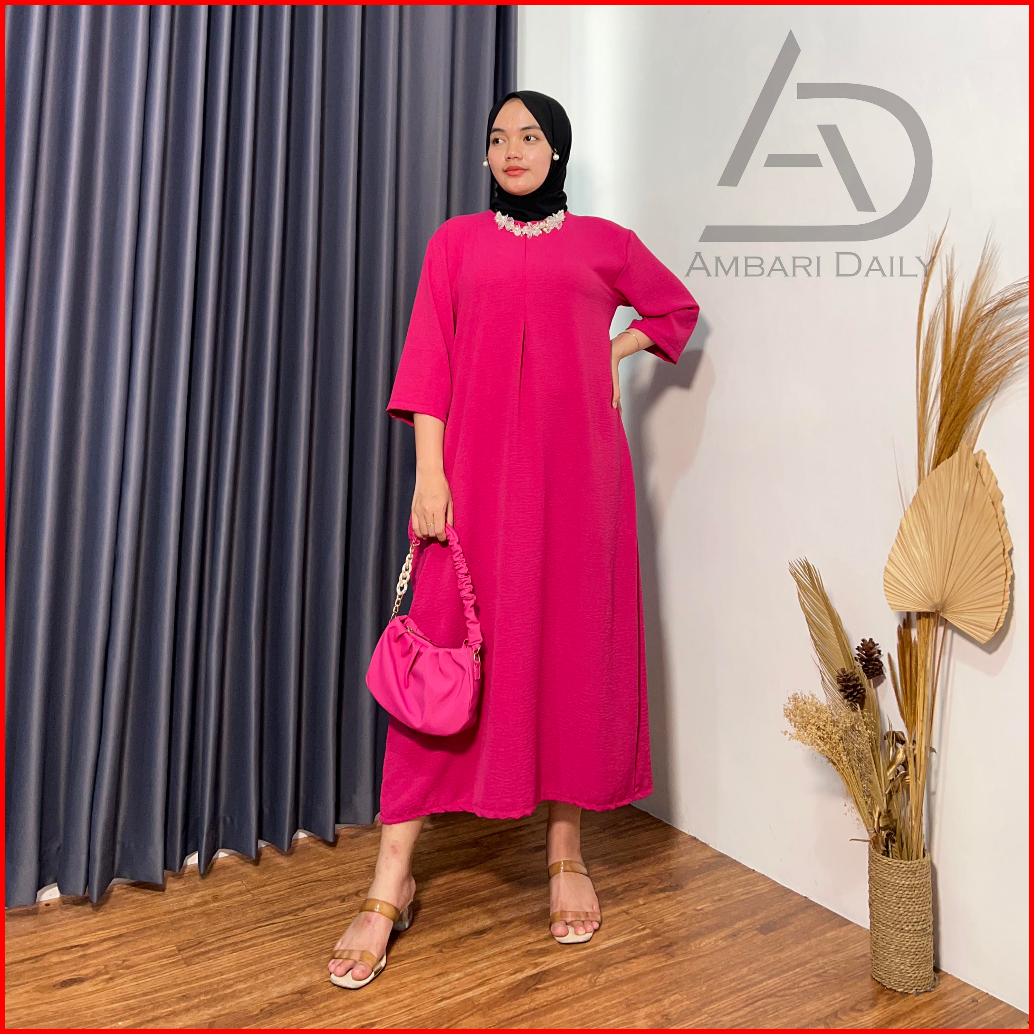 Gamis Daster Viral Lengan 3 4 Crinkel Terbaru