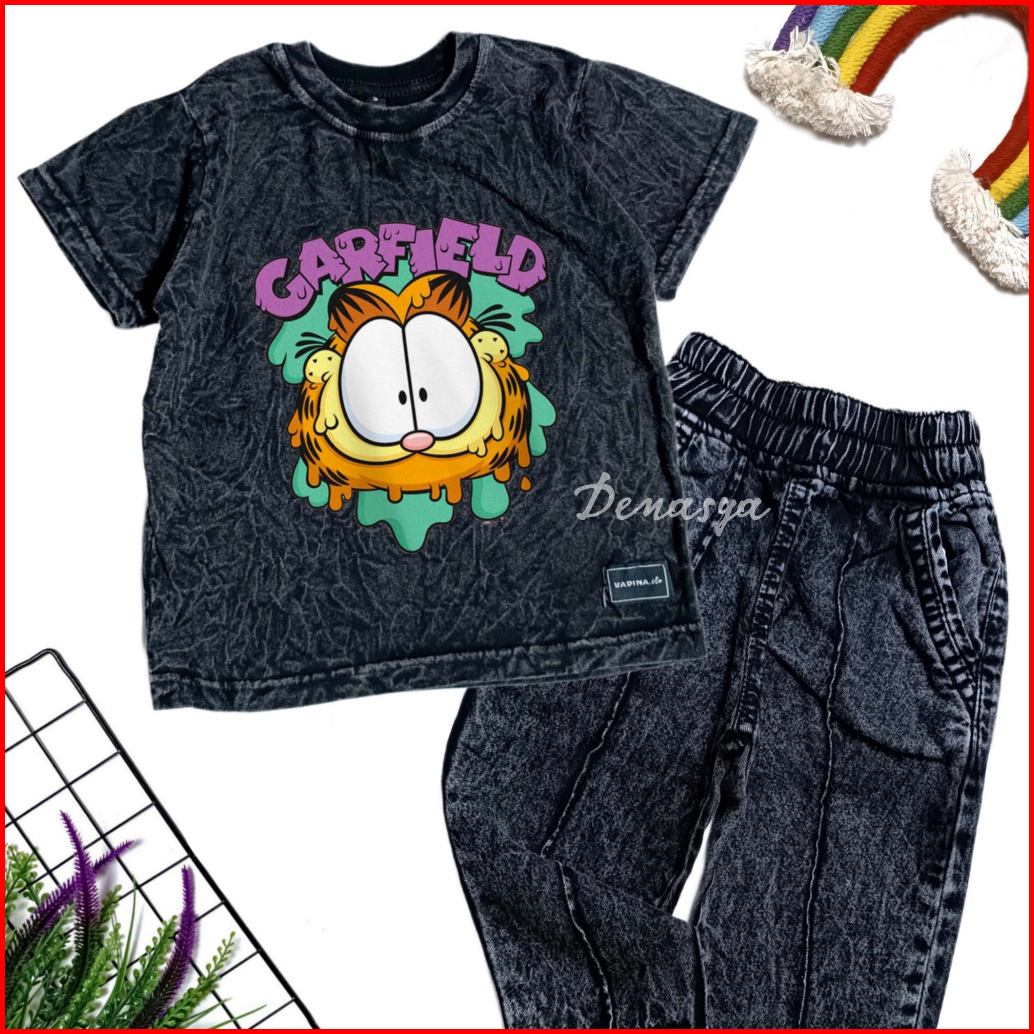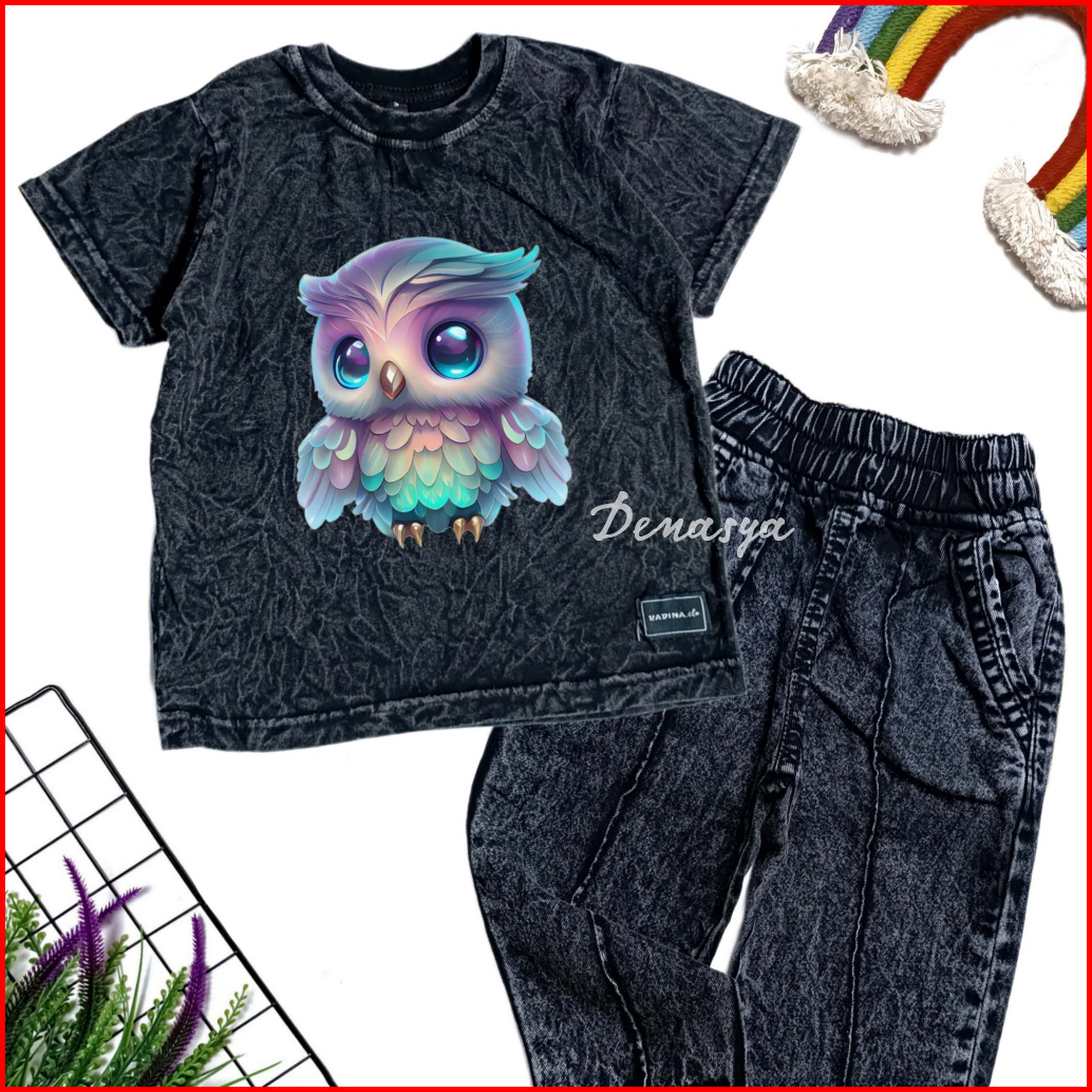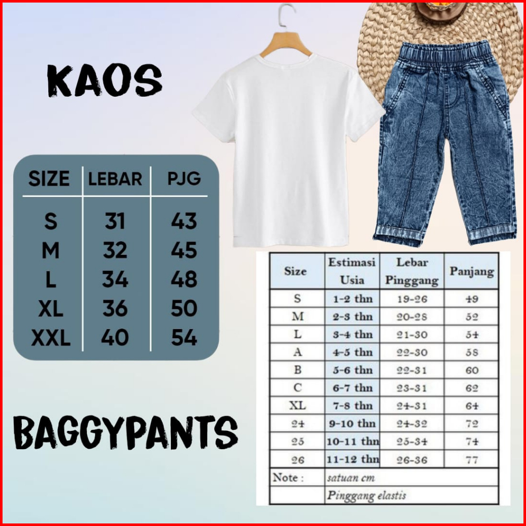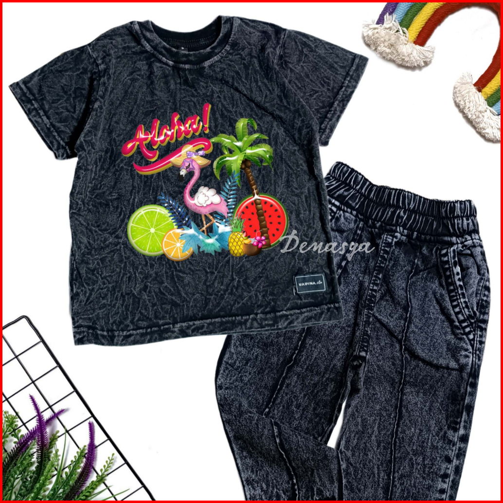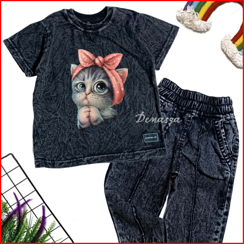 Setelan Anak Perempuan Setelan Baggypants Jeans Anak Kaos Snowblack Sablon Anak 1-10 Tahun