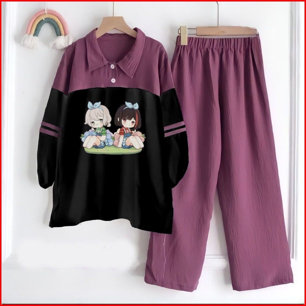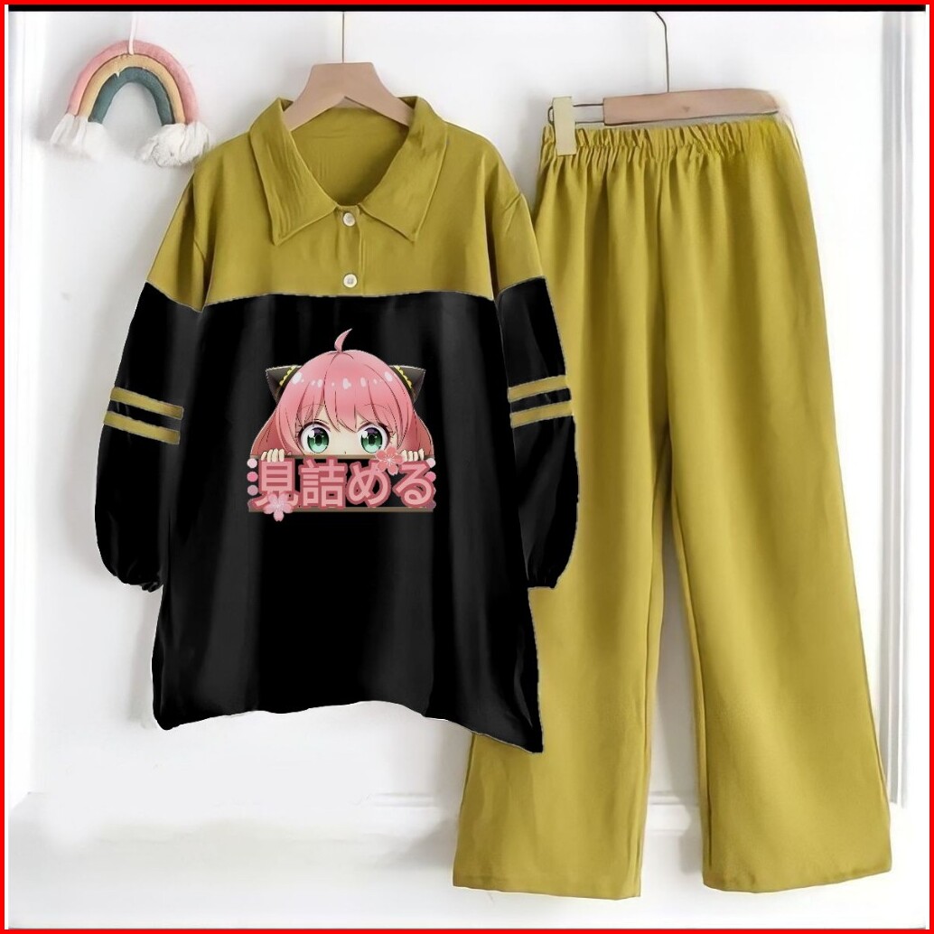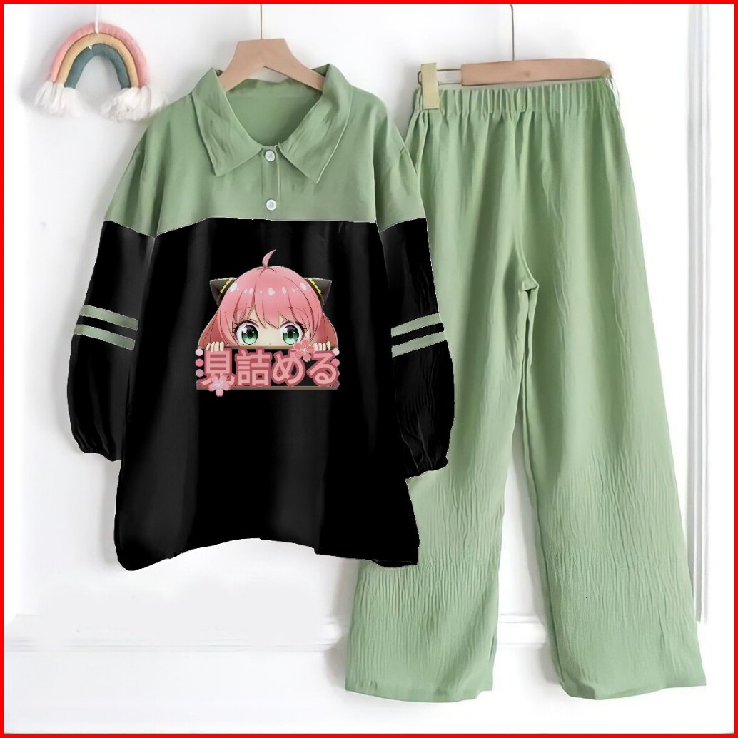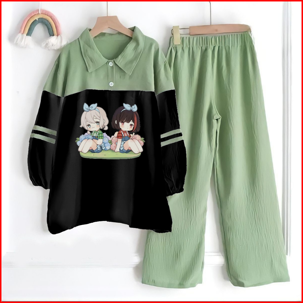 One Set Mikan Set Crinkle Anak Perempuan Setelan Anak Perempuan Motif Gambar Morlin Set Kids Anya Set Kids