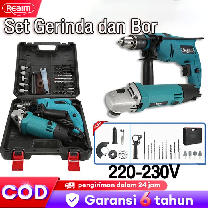 REAIM Gerinda dan bor dapat box paket lengkap gerinda mesin gerinda tangan paket bor paket bor dan gerinda promo paket