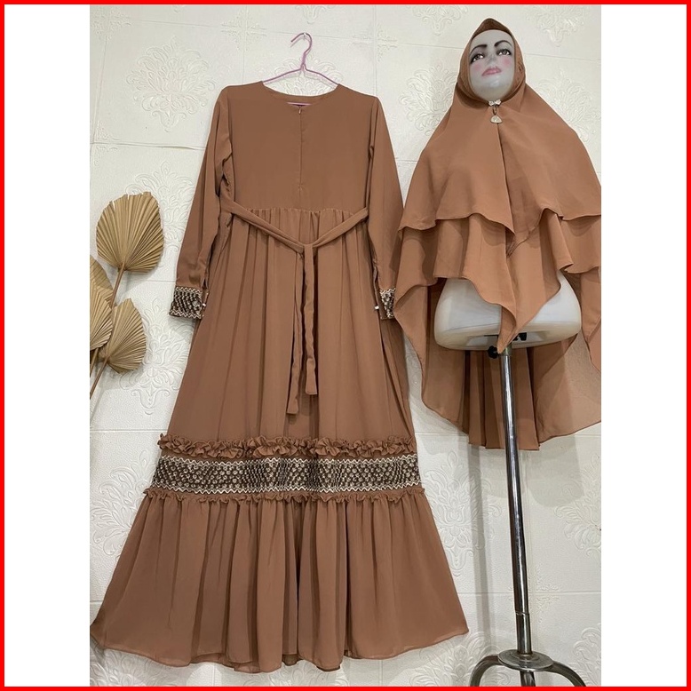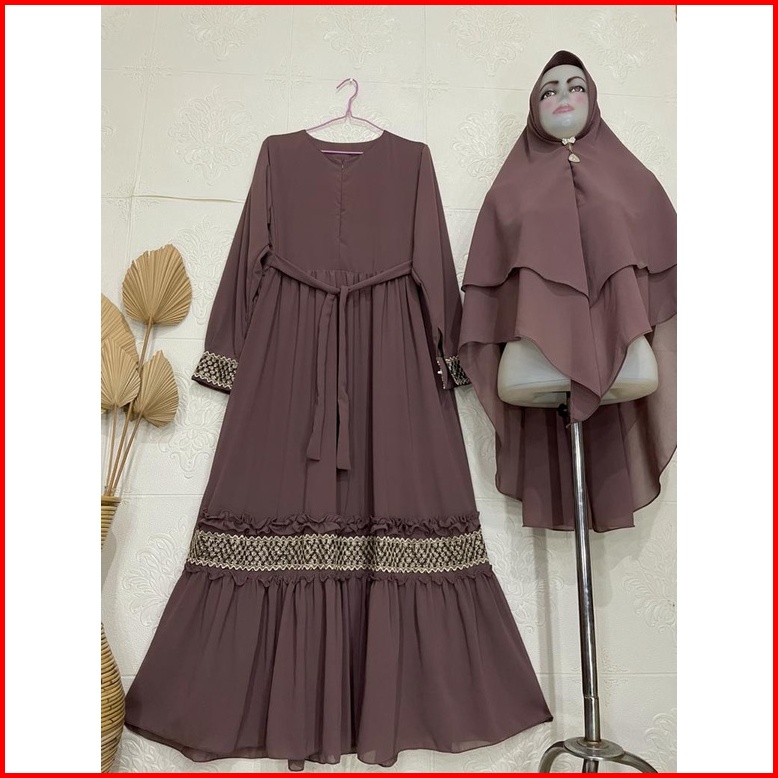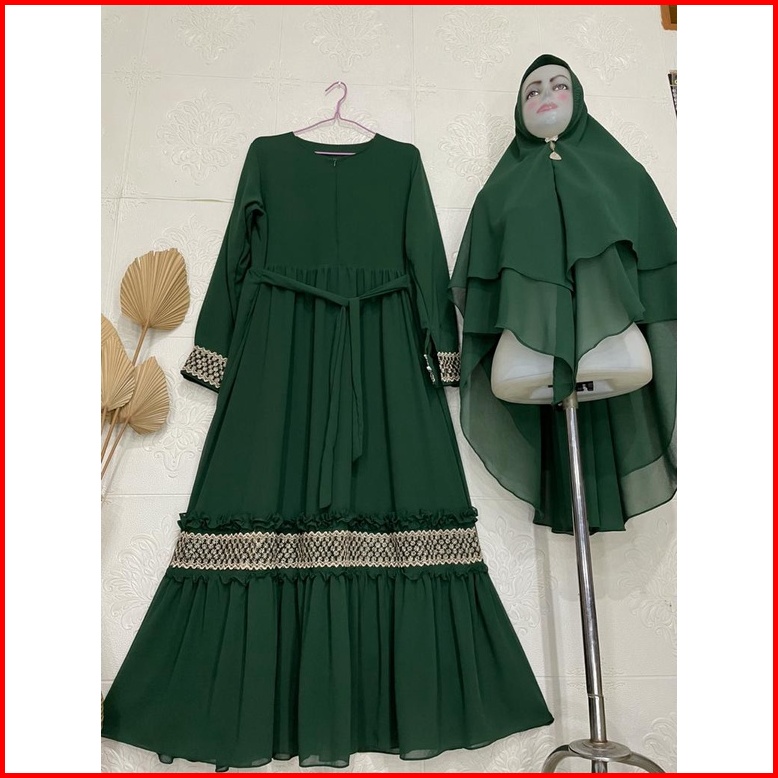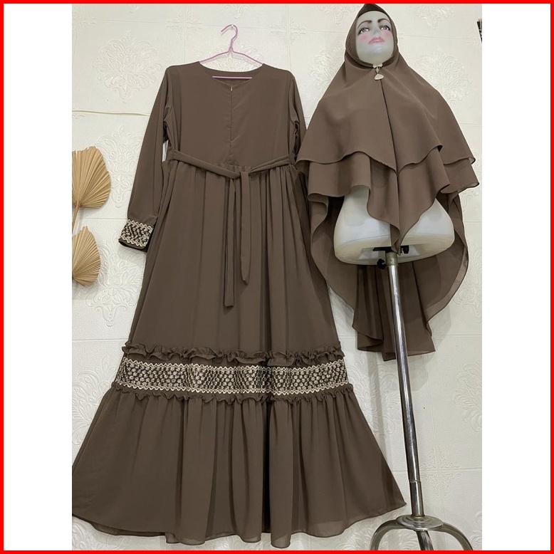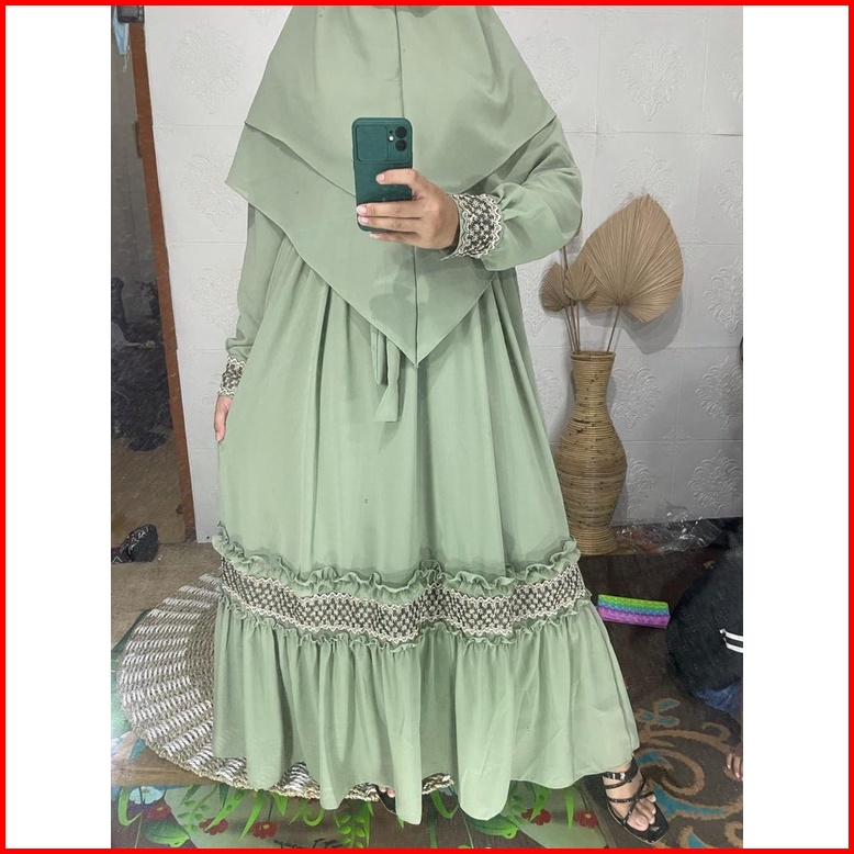 Gamis Syari Ceruty Mix Renda Depan Dan Tangan Gamis Syari Busui Gamis Set Khimar Terbaru