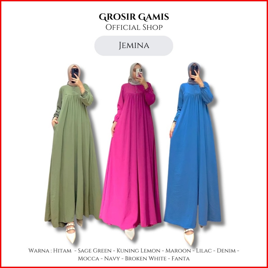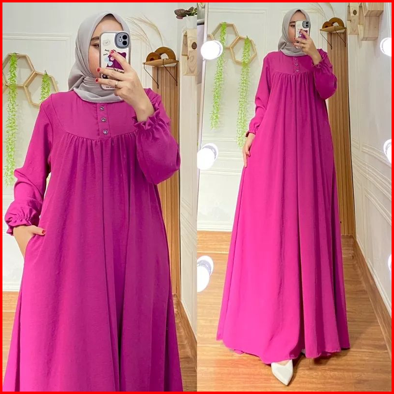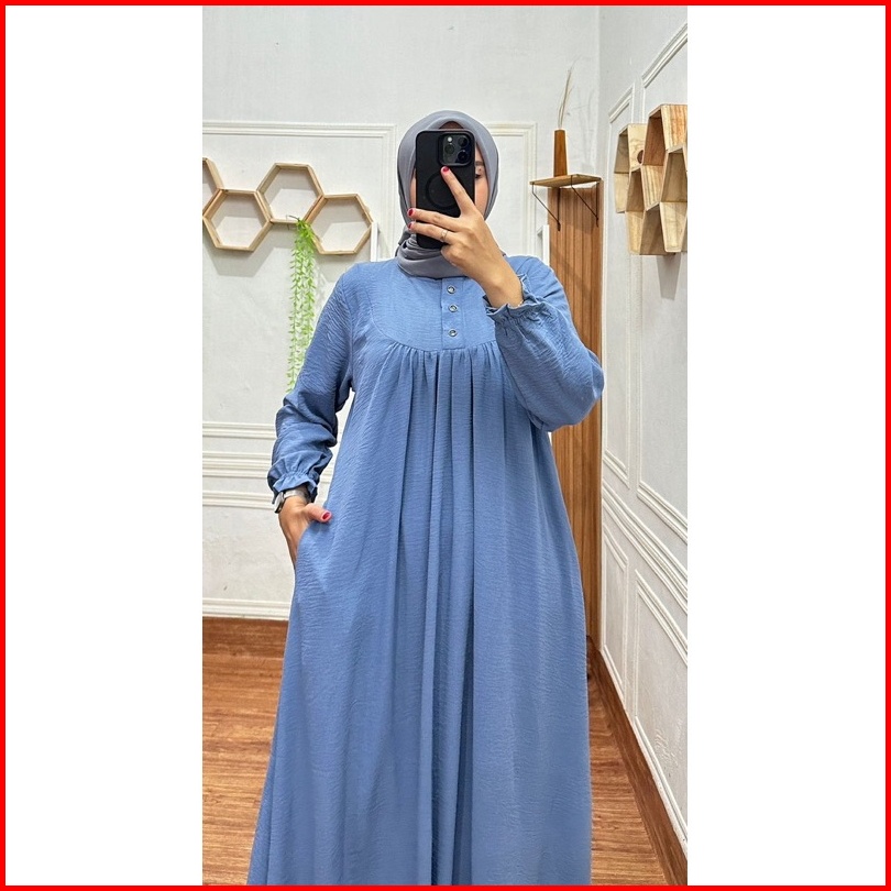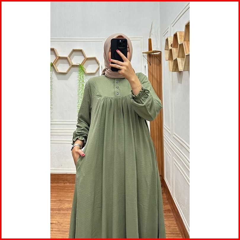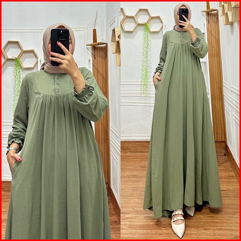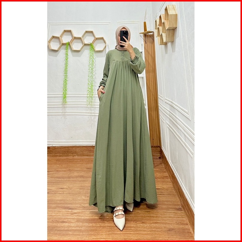 Gamis Crinkel Lebaran 2025 Dress Elegan Simpel Mewah Jemina Airflow Premium Busui Saku Tali Samping