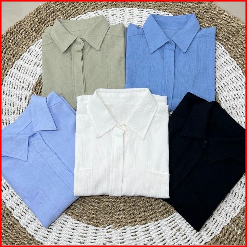 Kemeja Wanita Linen Pocket - Oversized Linen Shirt - Atasan Wanita Kmj