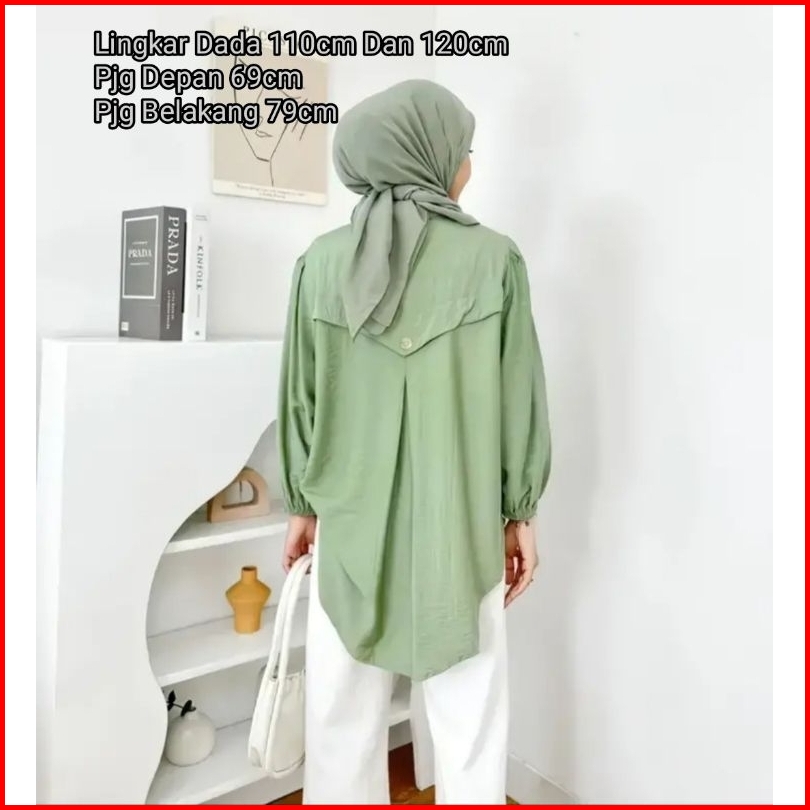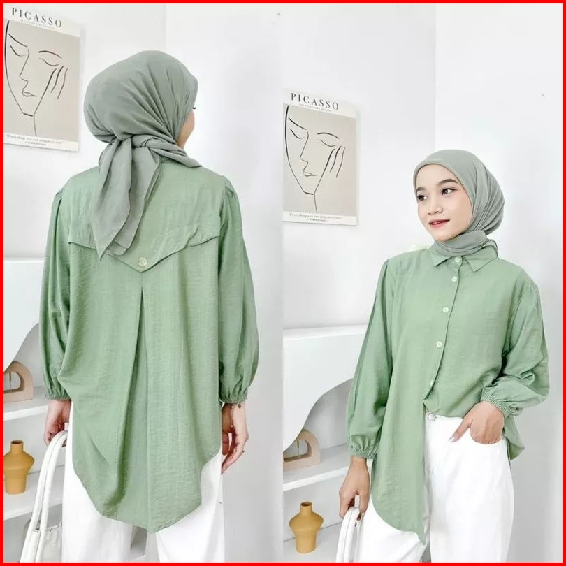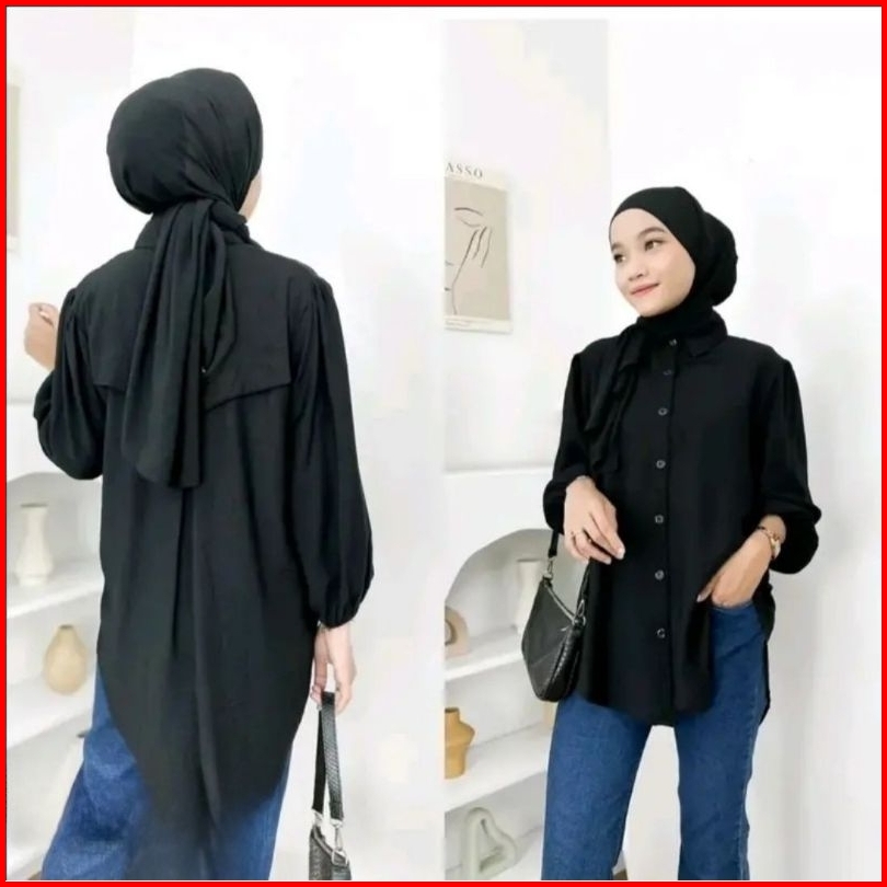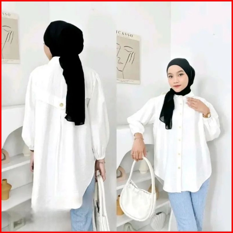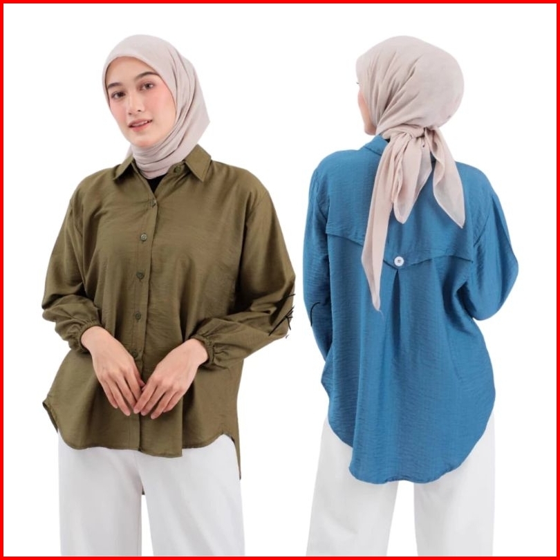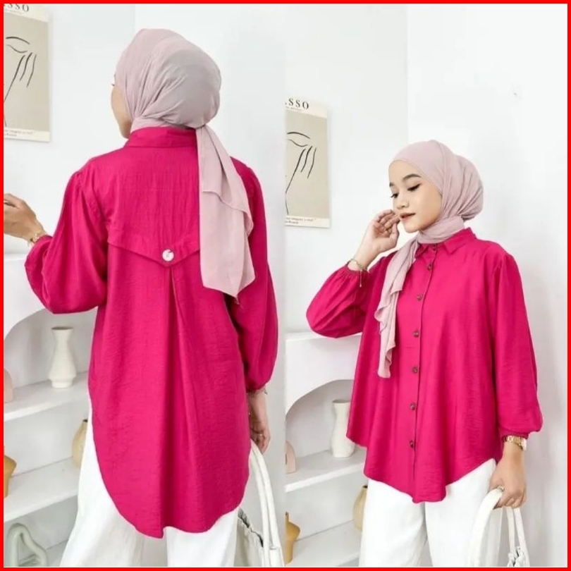 Kemeja Wanita Bahan Pololinen Laura Blouse Atasan Wanita Full Kancing Oversize