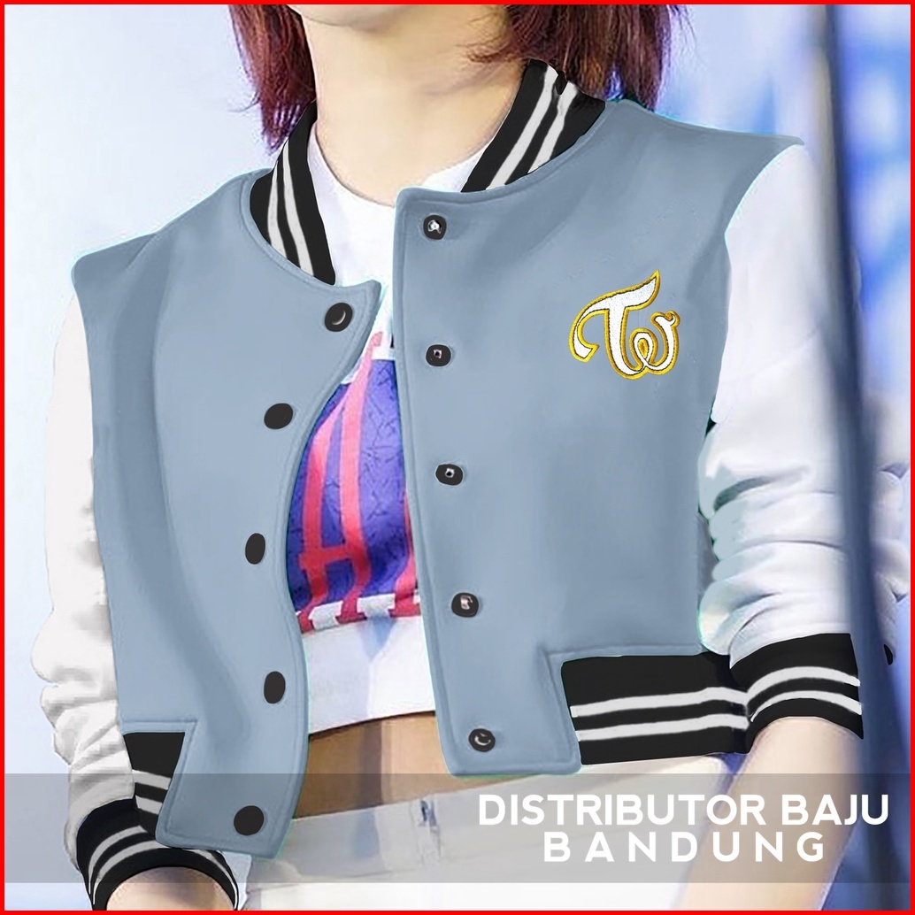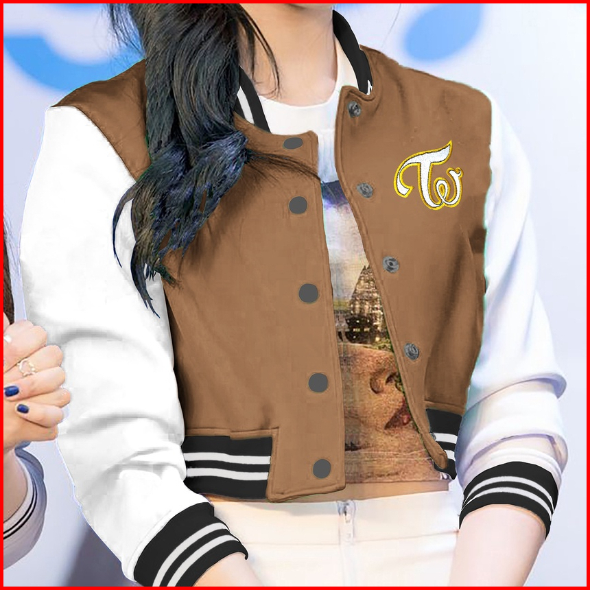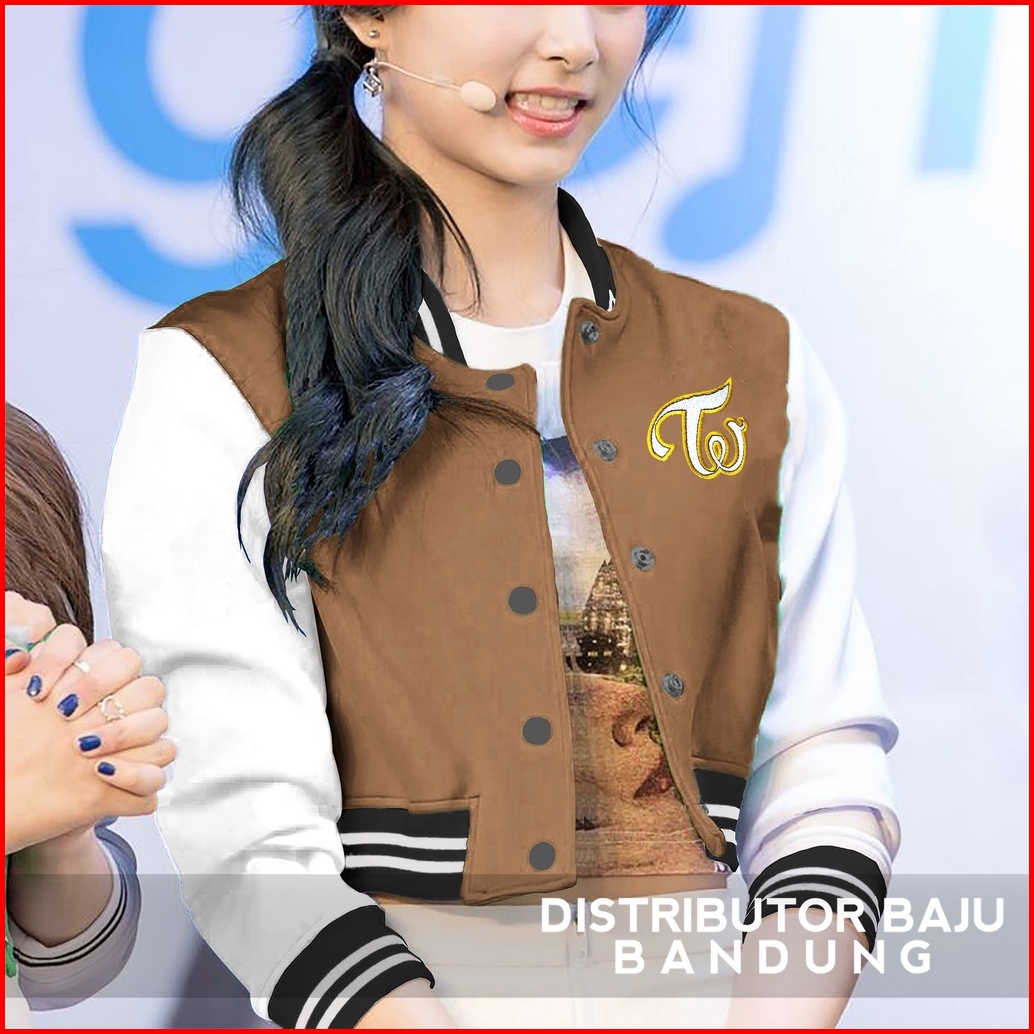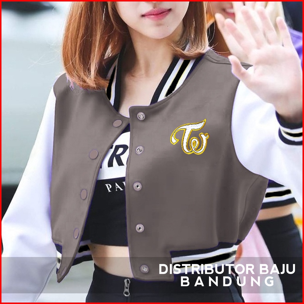 Jaket Baseball Crop Tw K-pop Style Varsity Atasan Wanita Jaket Wanita Bahan Fleece Allsize