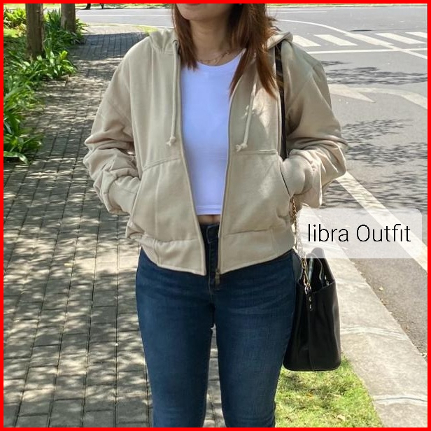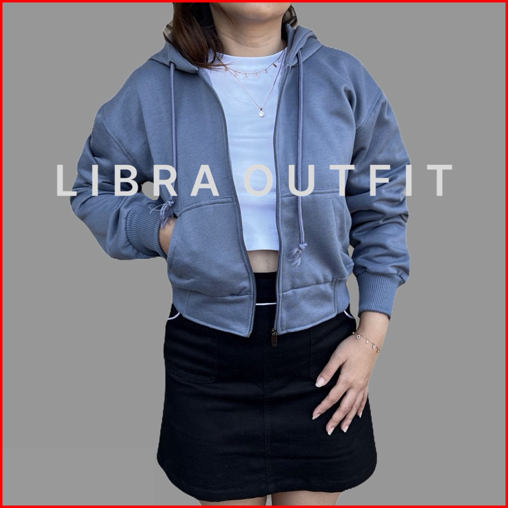 Crope Hodie Wanita Jaket Crop Denim By Libra
