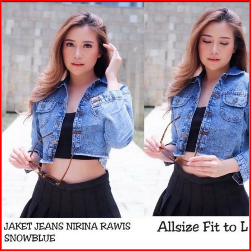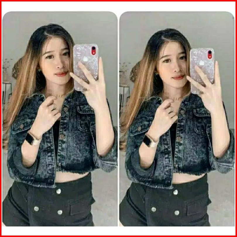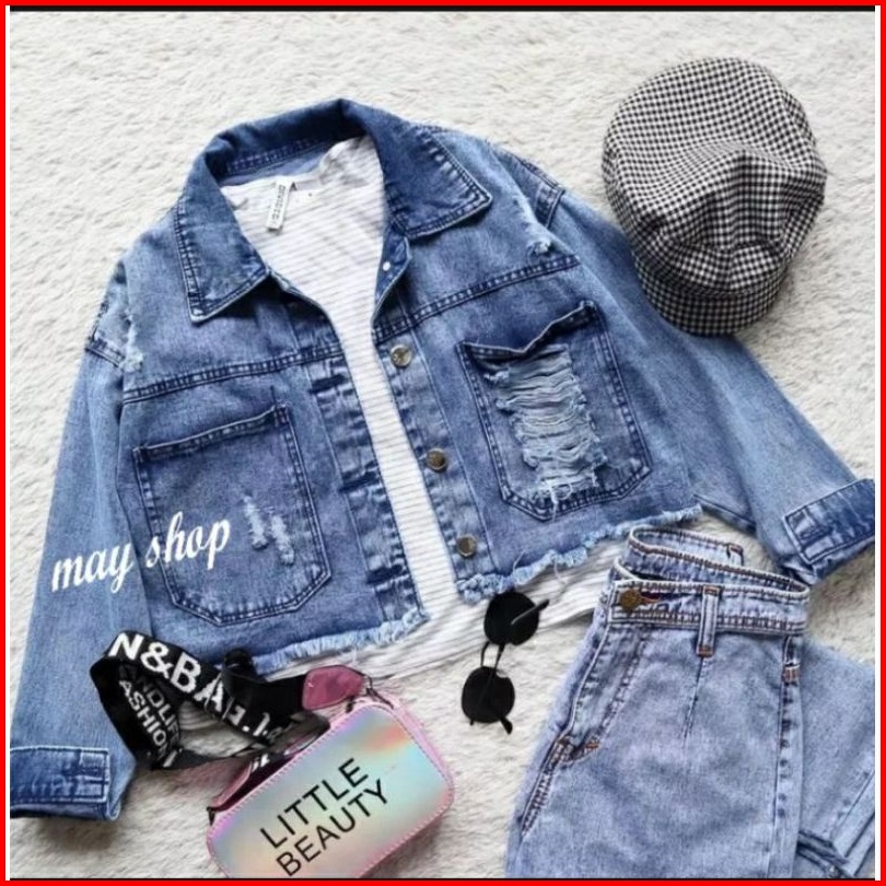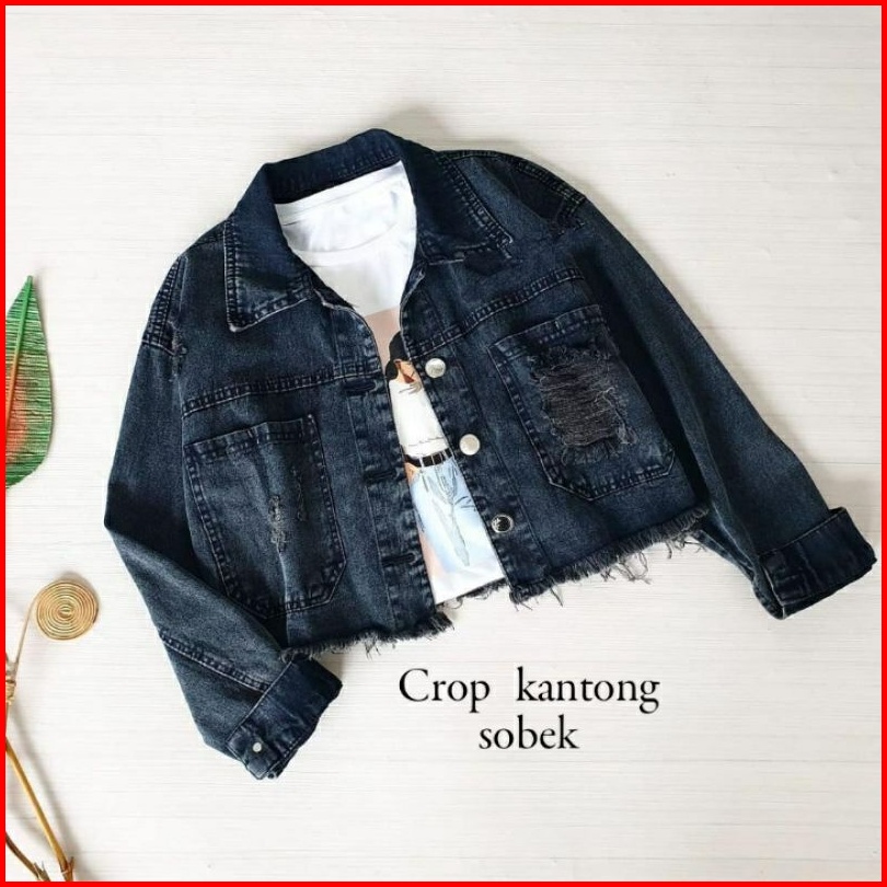 Jaket Jeans Rawis Fashion Distroy Ripped Crop Jacket Jeans Sobek Robek Ripped Wanita Crop Top Rawis Jins Denim Cewek Sob