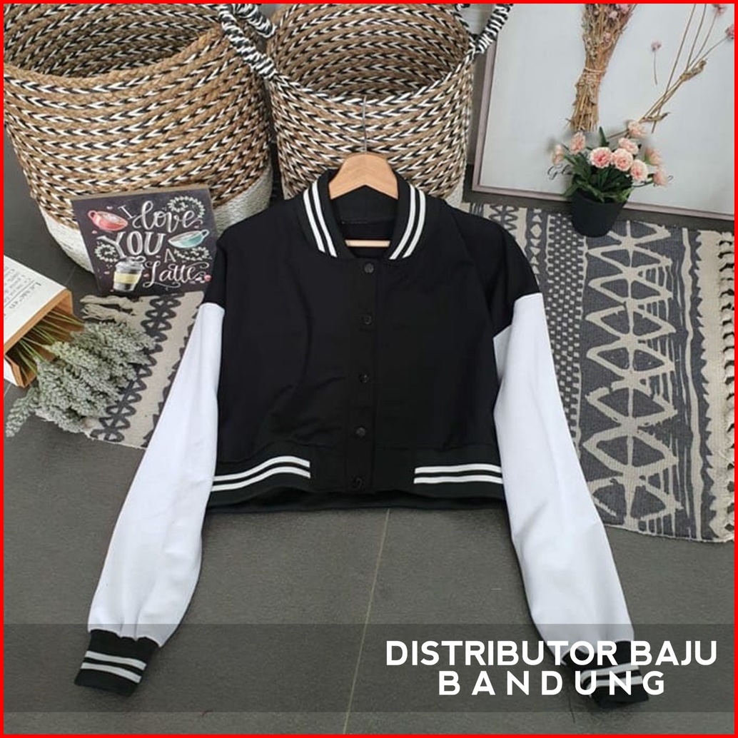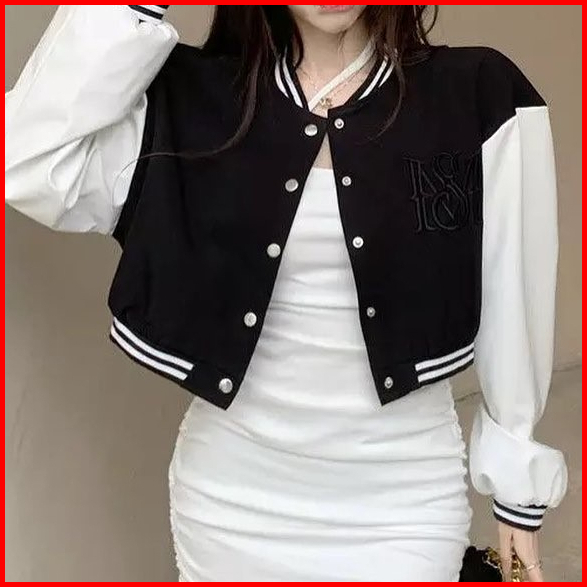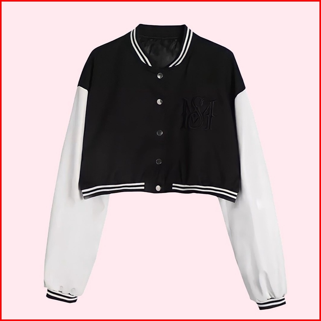 Jaket Baseball Crop Korean Style Varsity Pakaian Wanita Jaket Wanita Bahan Fleece Allsize