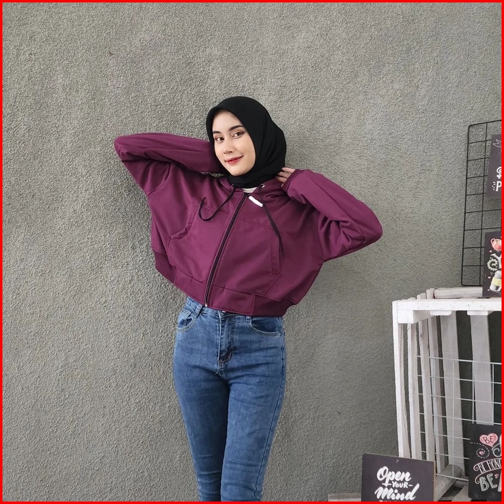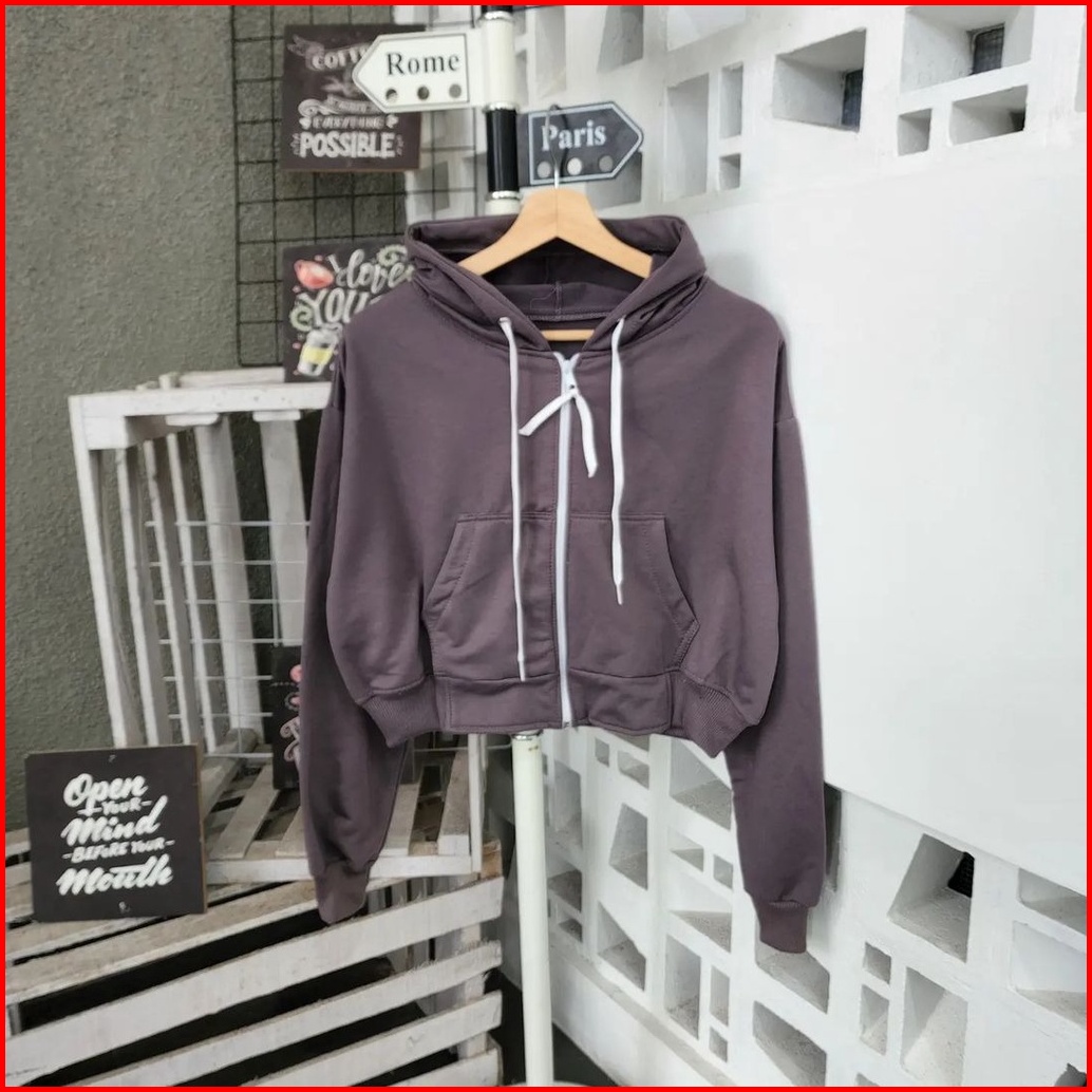 Basic Crop Zipper Jacket Crop Wanita Korean Style Wanita Ootd