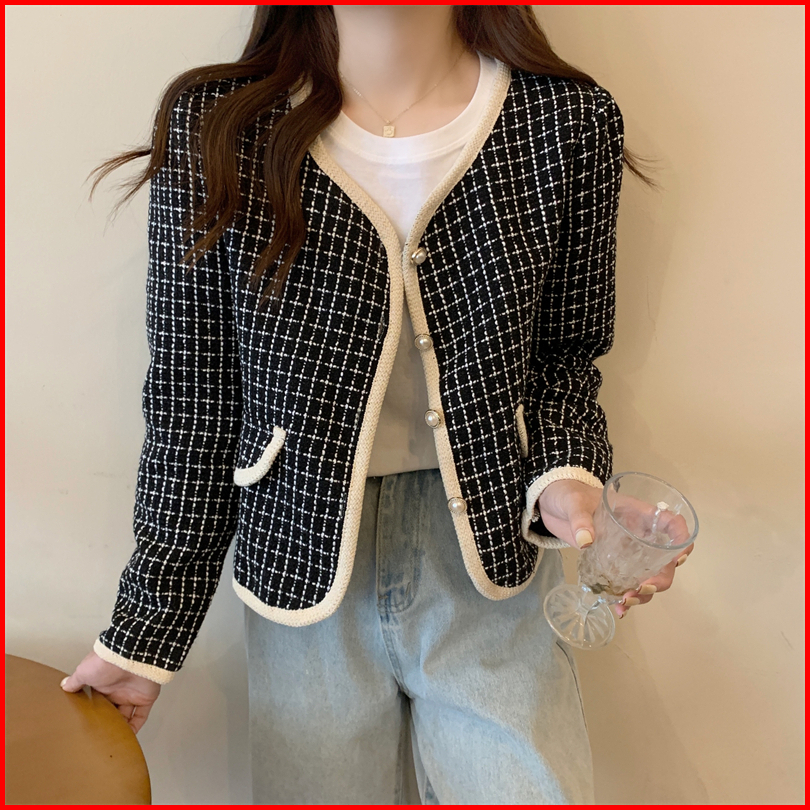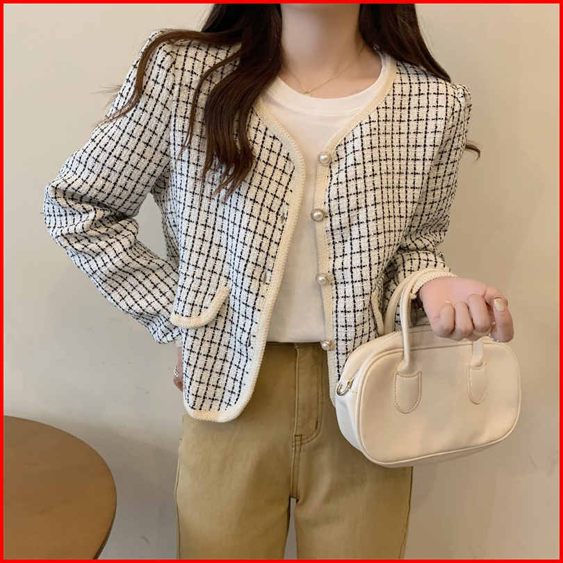 The Monseur Gallery Jaket Crop Wanita Terbaru Korean Style Plaid Jacket
