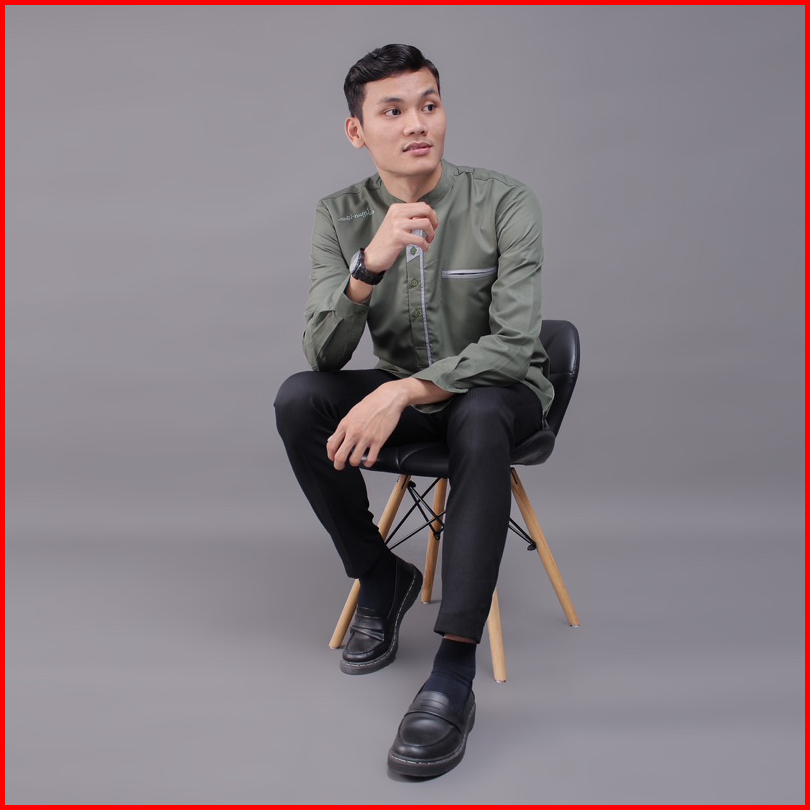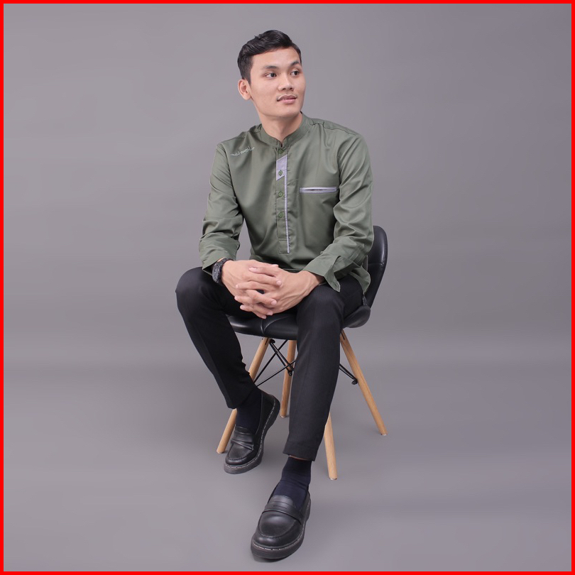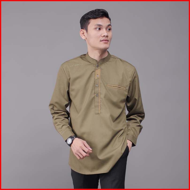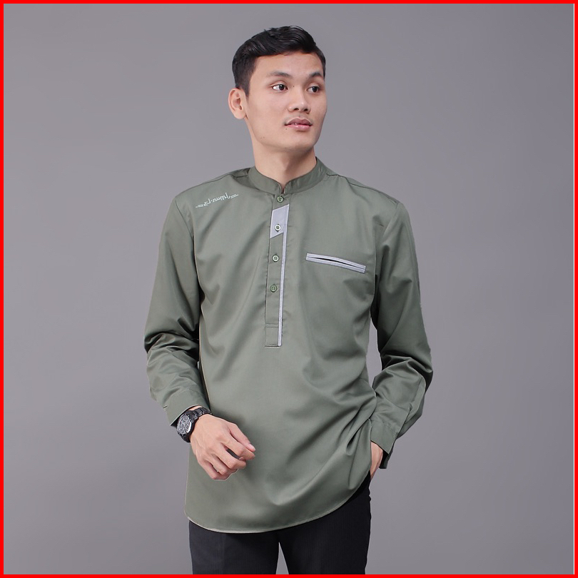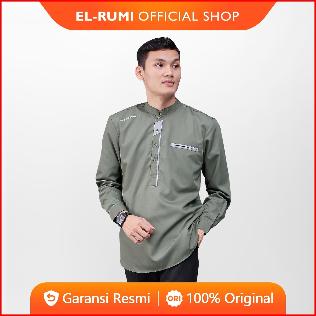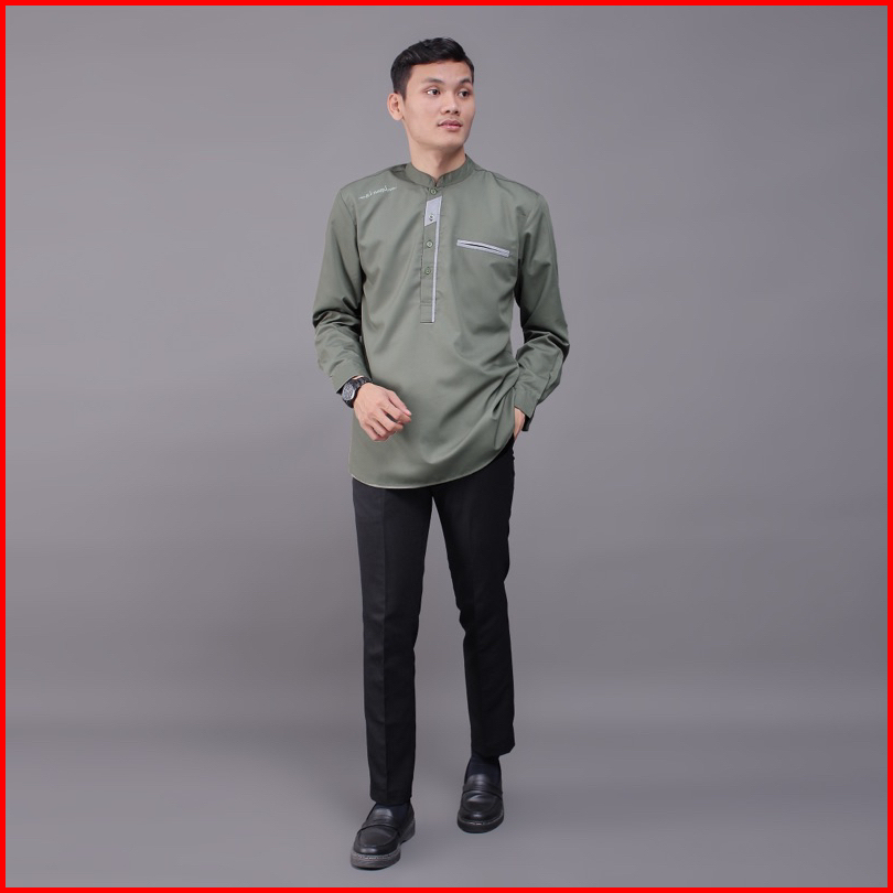 Kemeja Koko Pria Elrumi Lengan Panjang Motif Abizaar Warna Sage