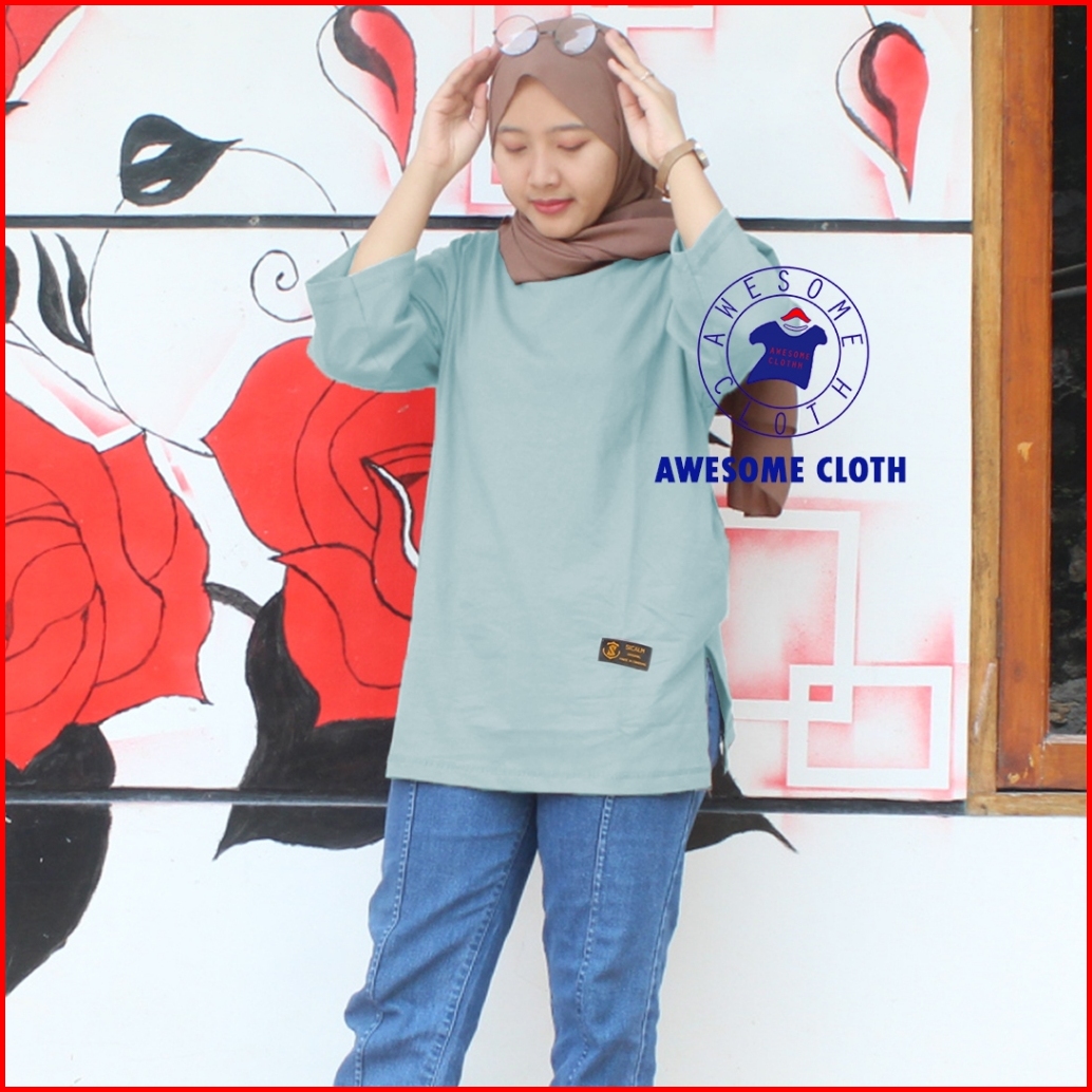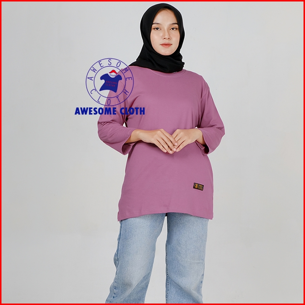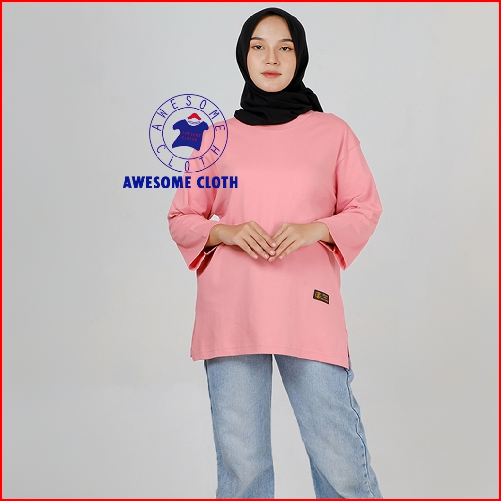 Kaos Lengan 7 8 Wanita Oversize Kaos Polos Lengan Panjang Wanita Bahan Tebal Original Cotton Combed 24s