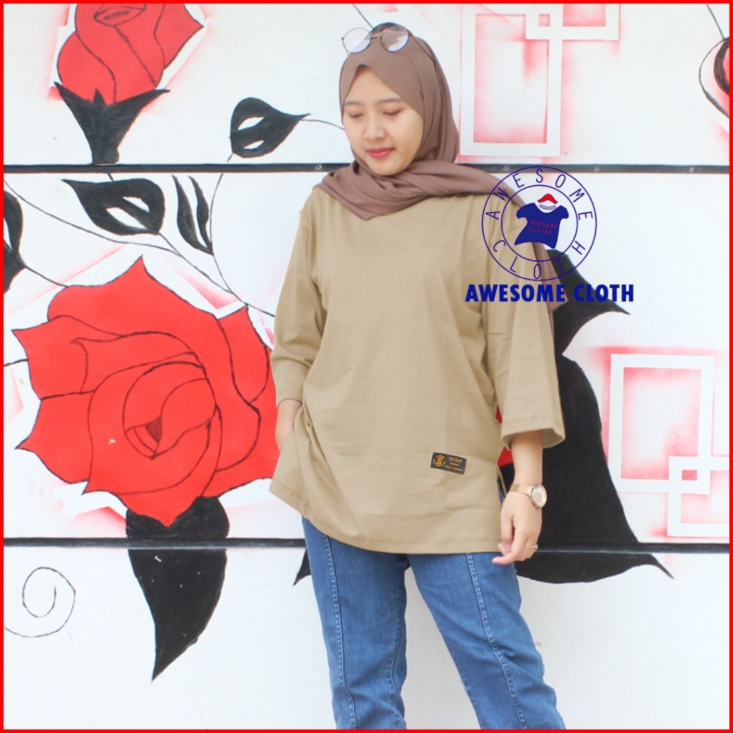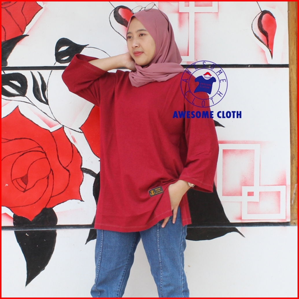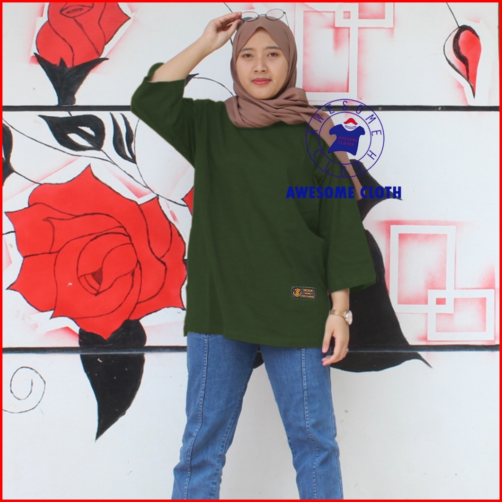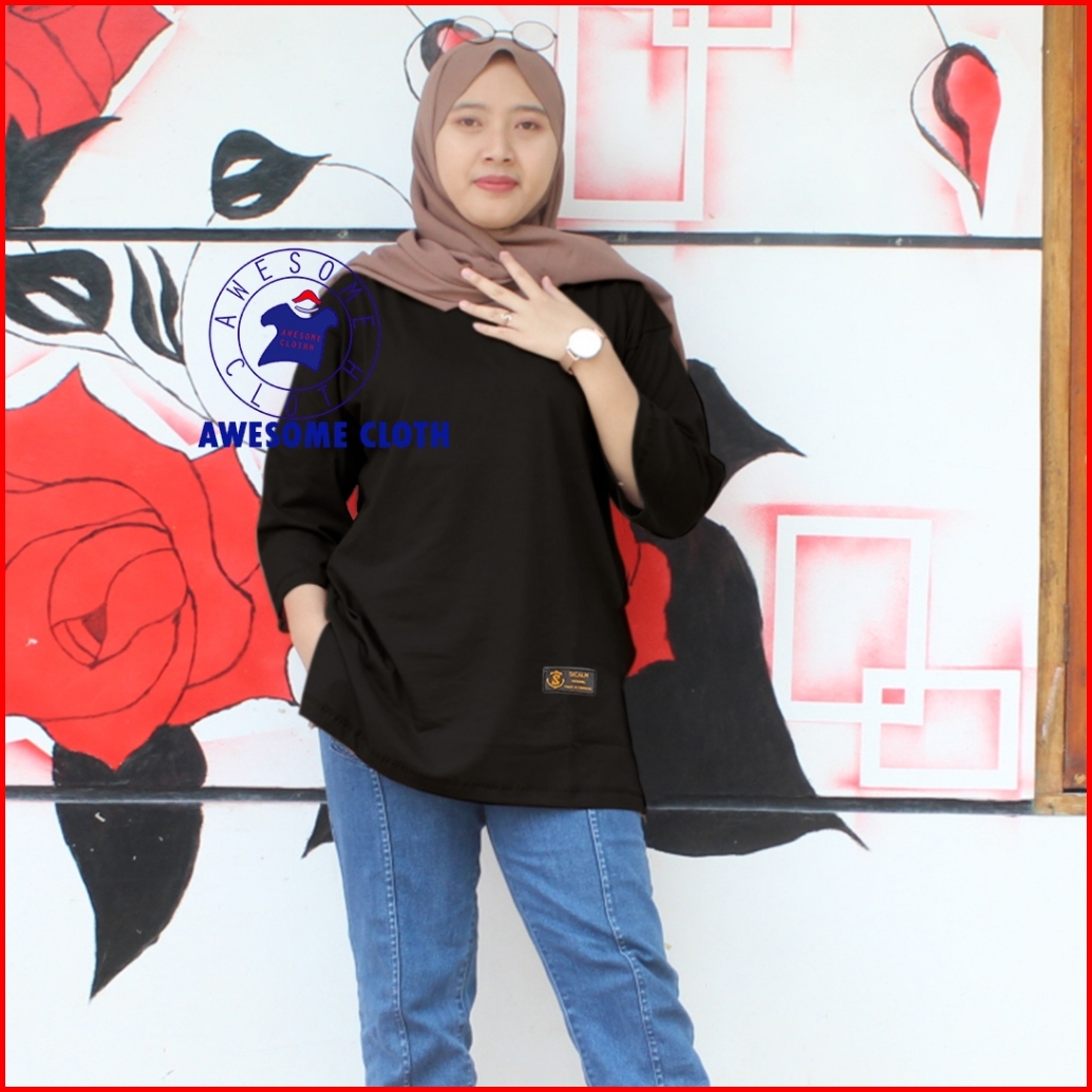 Kaos Lengan 7 8 Wanita Oversize Kaos Polos Lengan Panjang Wanita Bahan Tebal Original Cotton Combed 24s