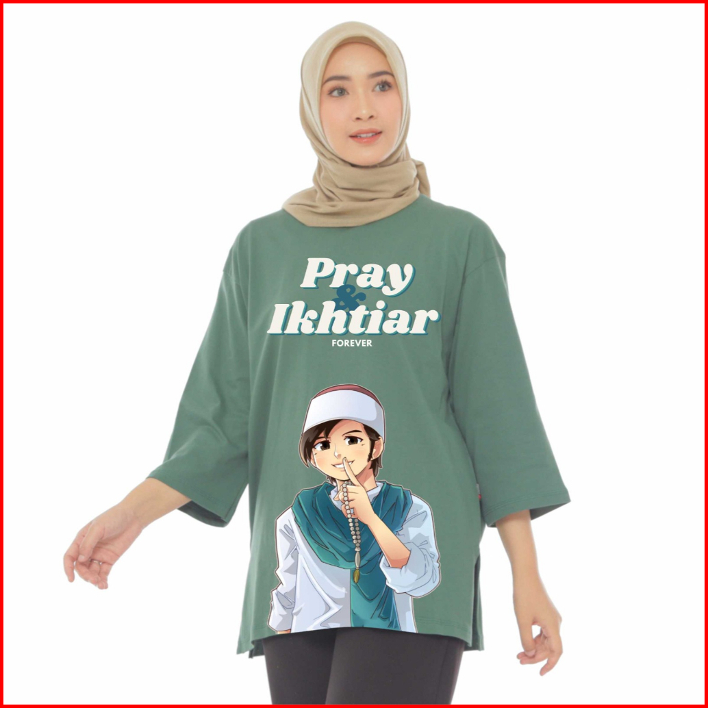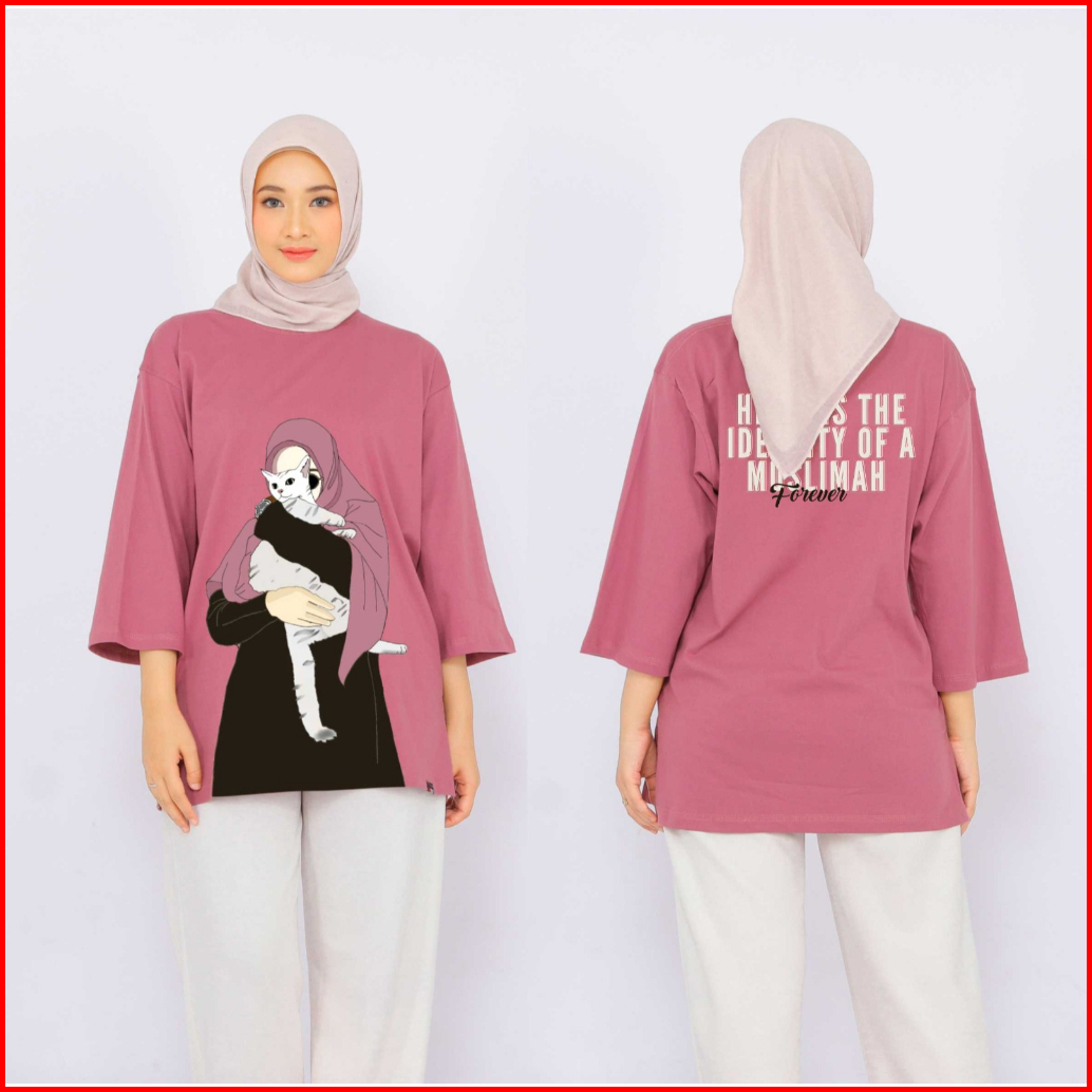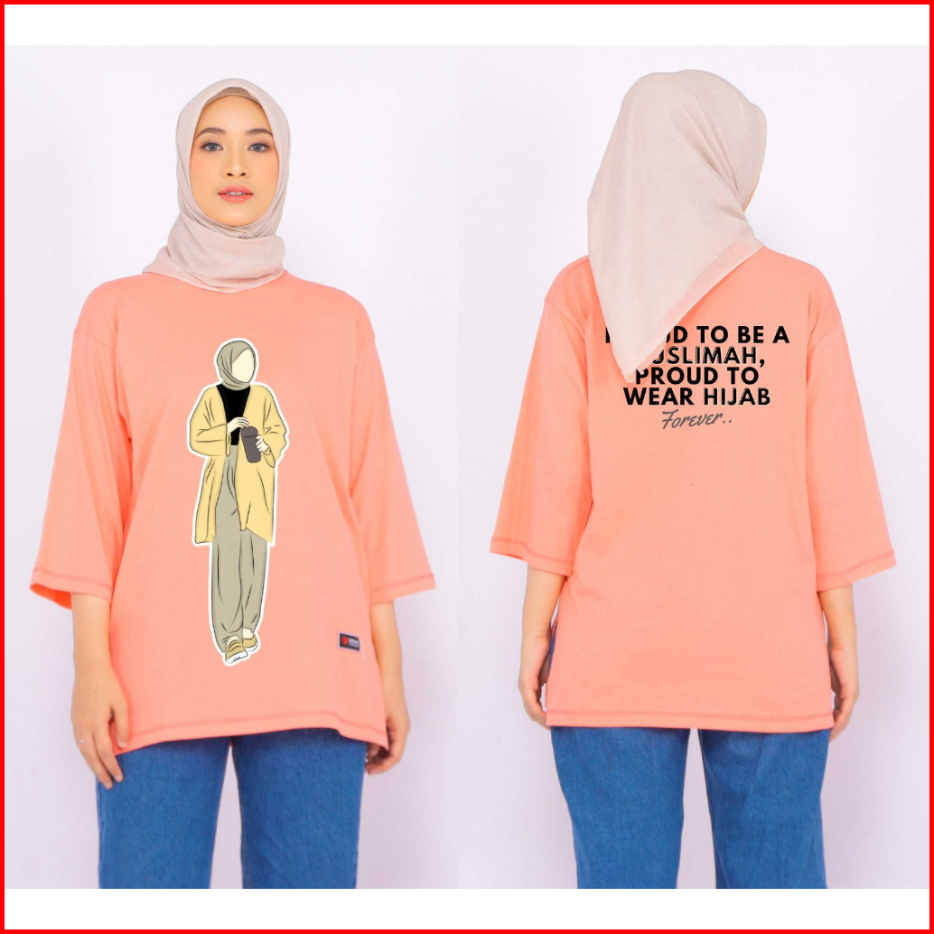 Kaos Oversized Baju Atasan Wanita Terbaru Animasi Muslim Hijabers