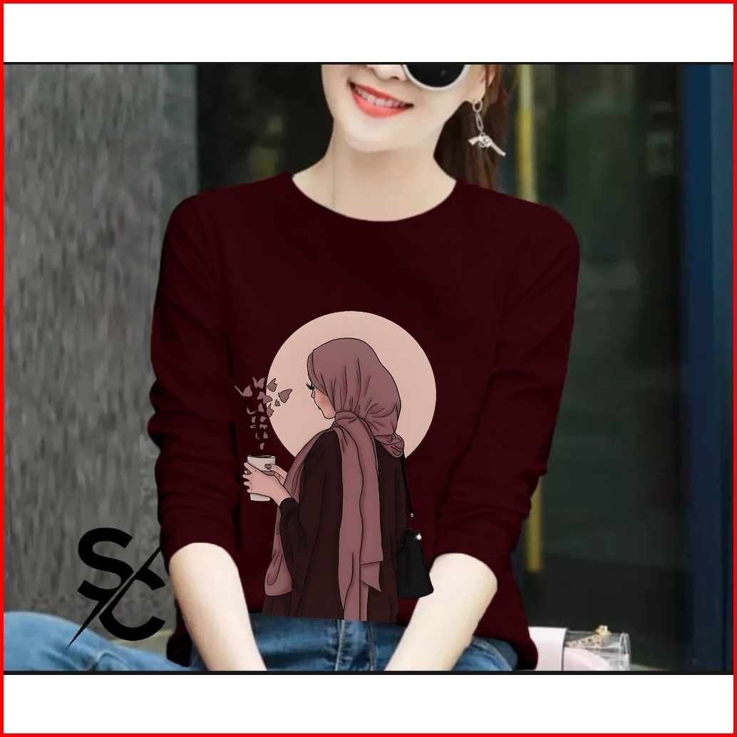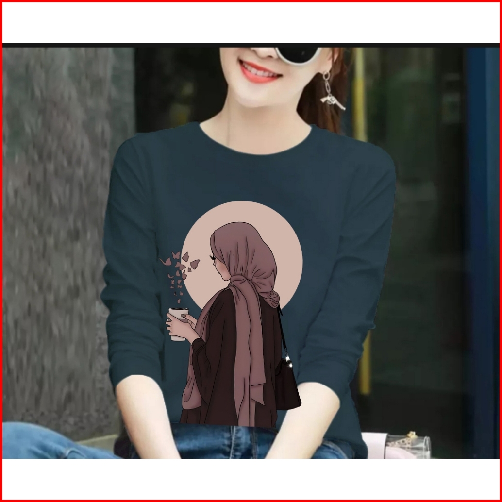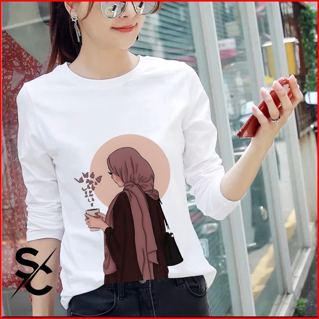 Hijab 12 Kaos Wanita Lengan Panjang Cotton Combed 24s Basic T-shirt Terbaru
