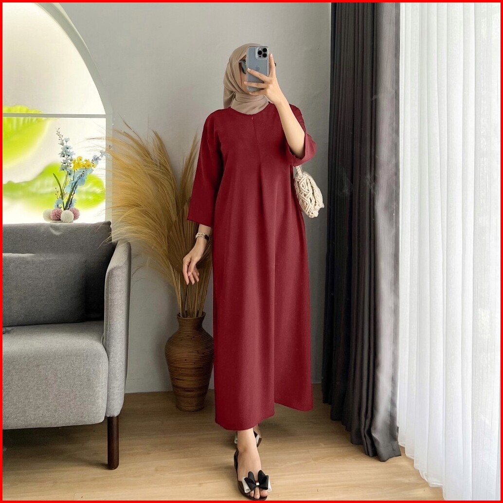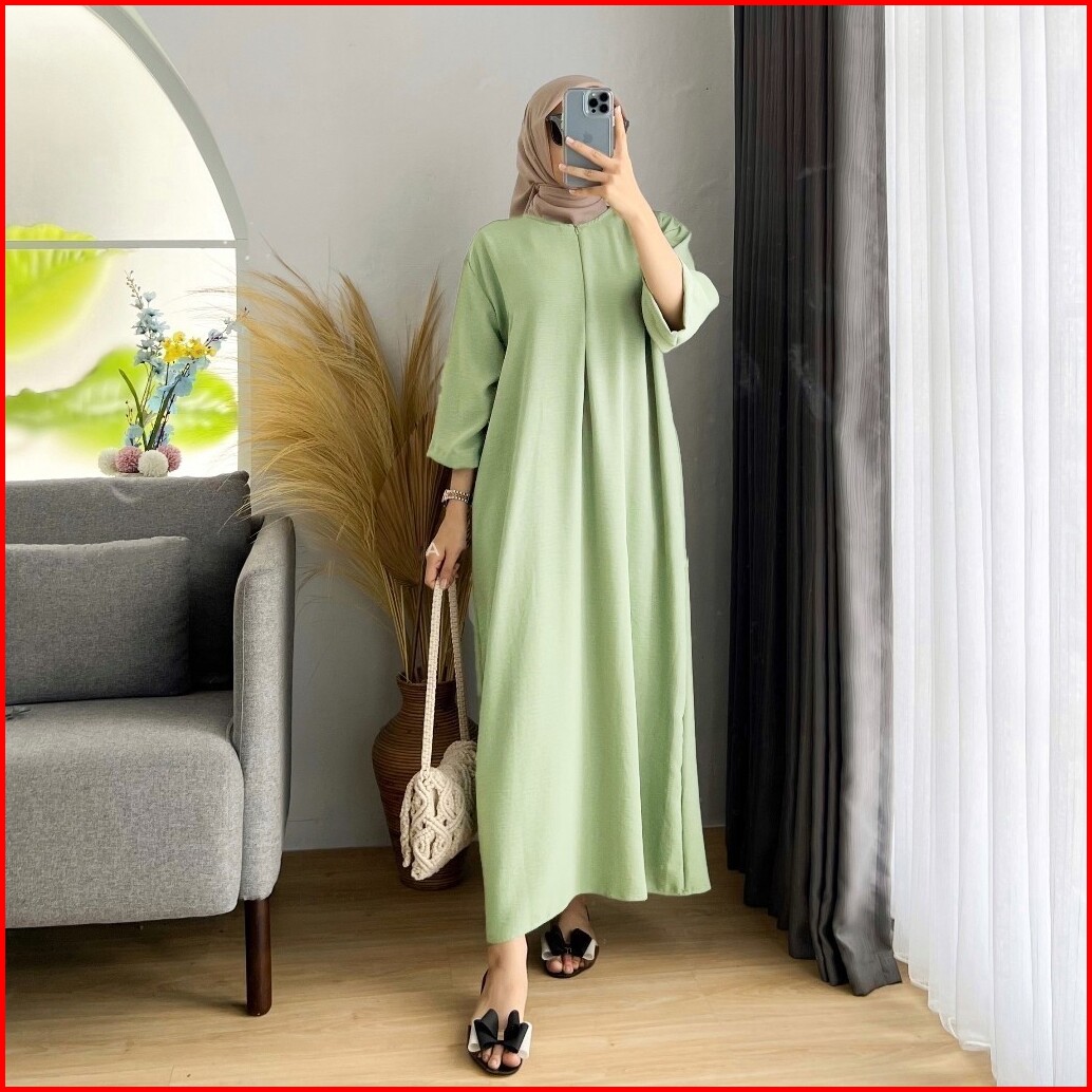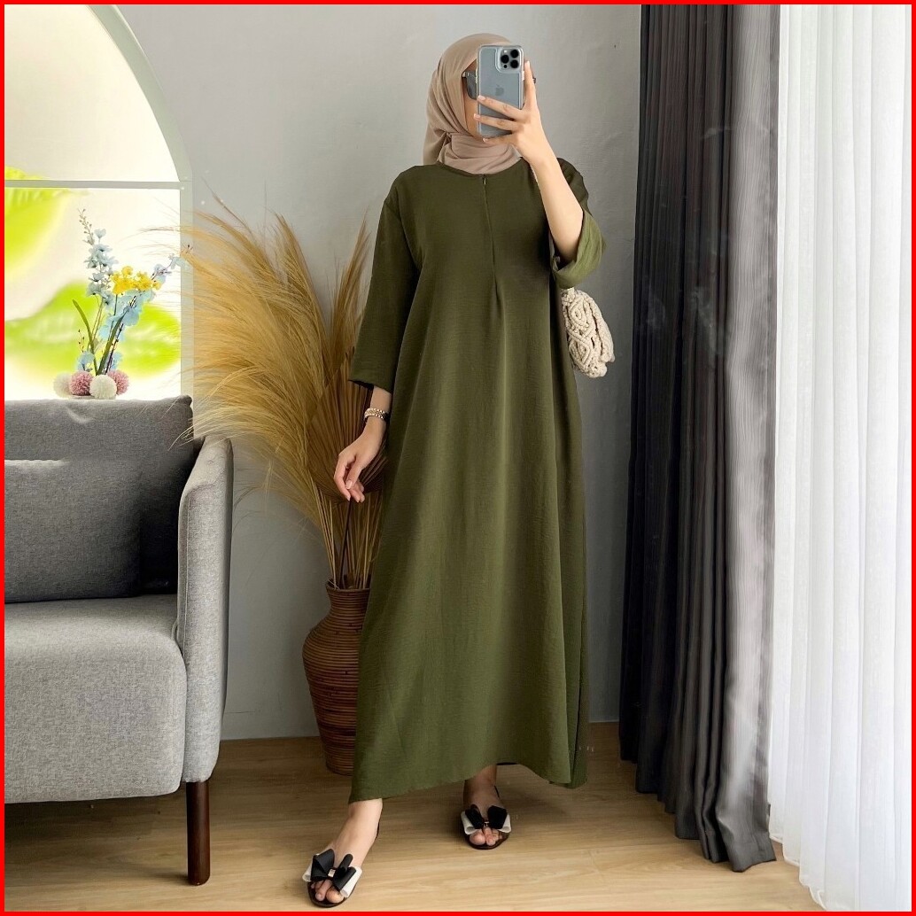 Daster Crinkle Kekinian Gamis Lengan 3 4 Busui Friendly - Morris Store