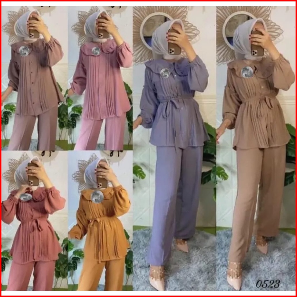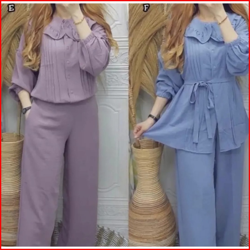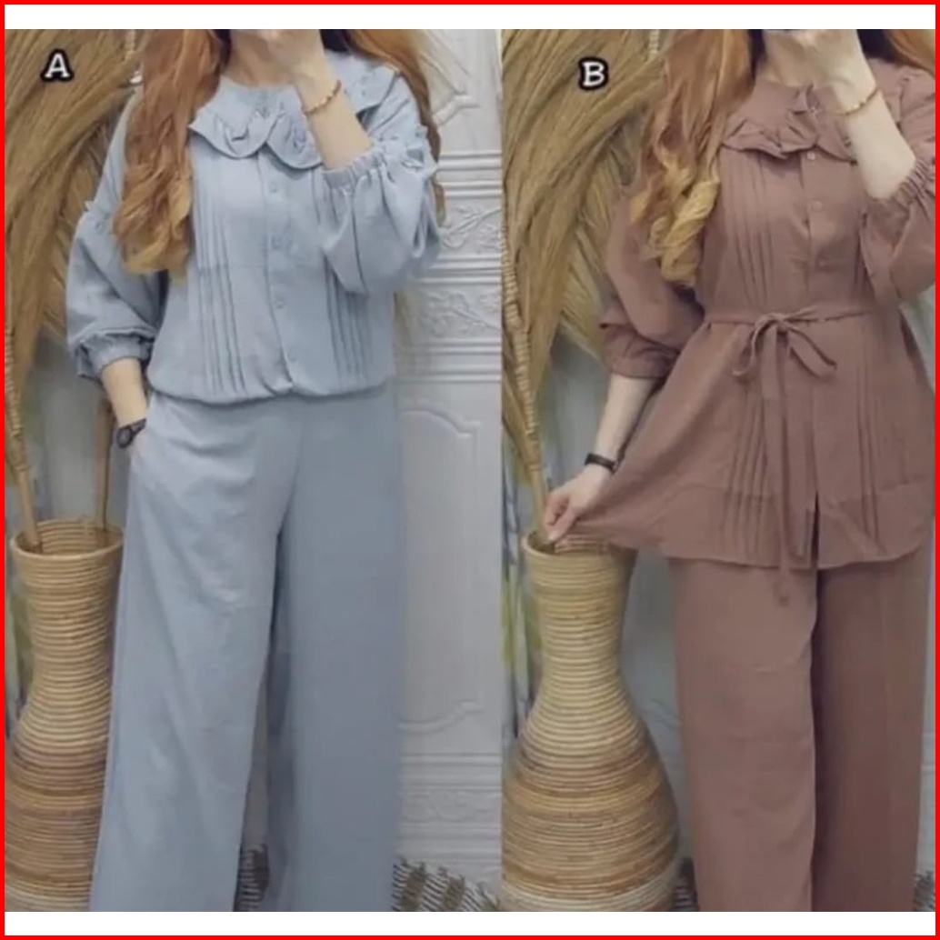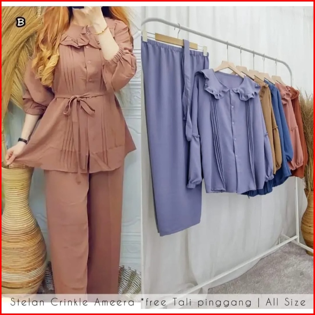 One Set Amera Crinkle Airflow Setelan Wanita Bahan Crinkle Premium Kekinian
