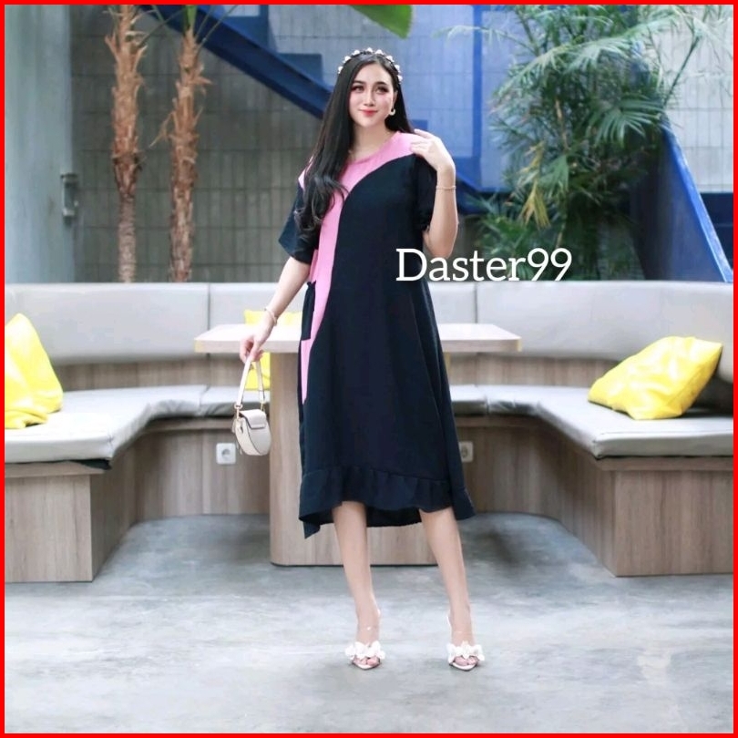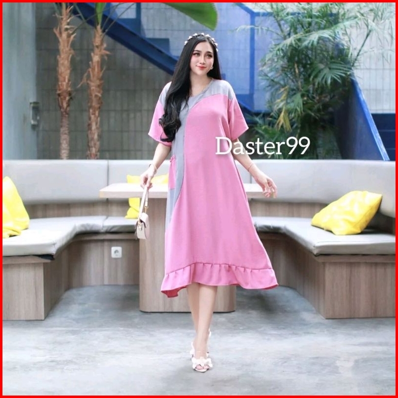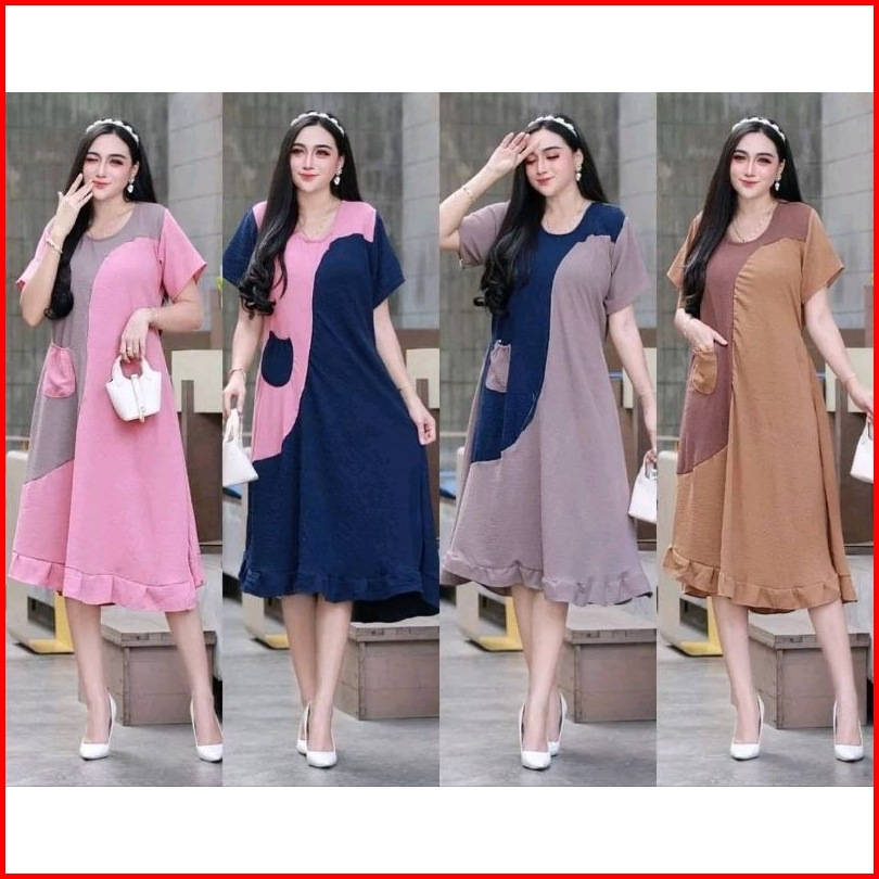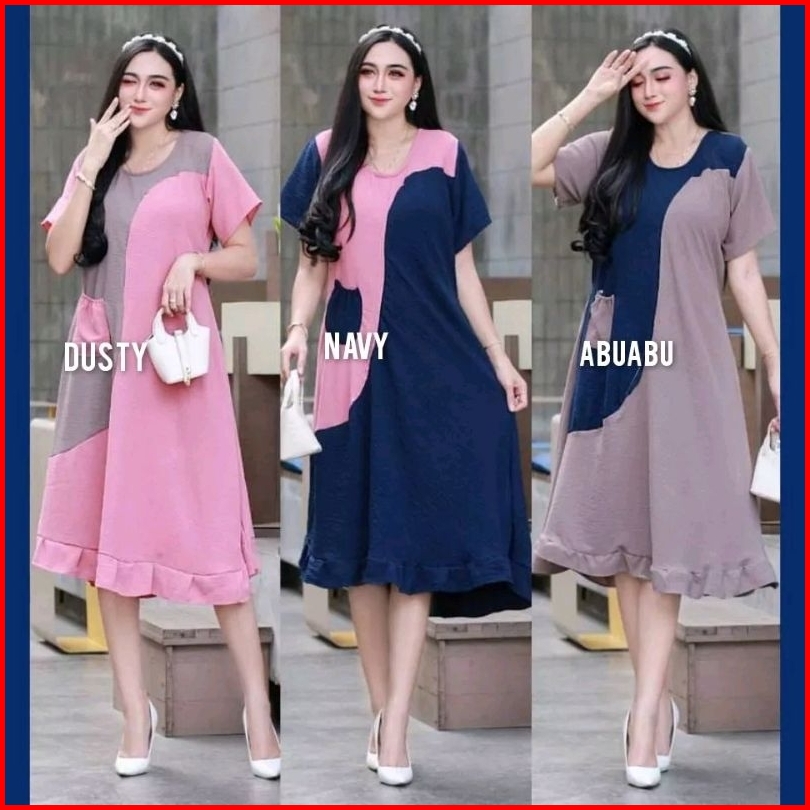 Dress Cringkle Airflow Ld 120 Allsize Dress Daster Kombinasi Jumbo Bahan Adem
