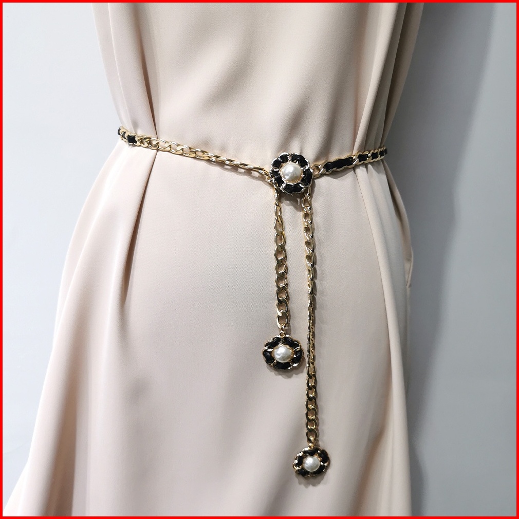 Ikat Pinggang Belt Rantai Slim Model Mutiara Imitasi Fashion Wanita Korea Fashion Womens Belt -lt006
