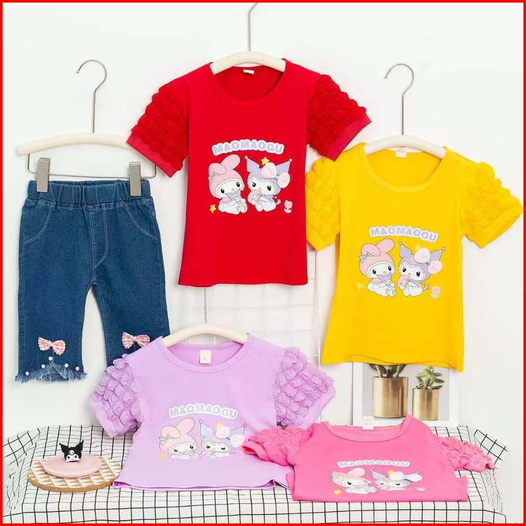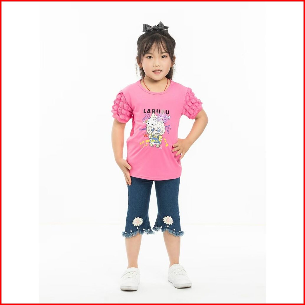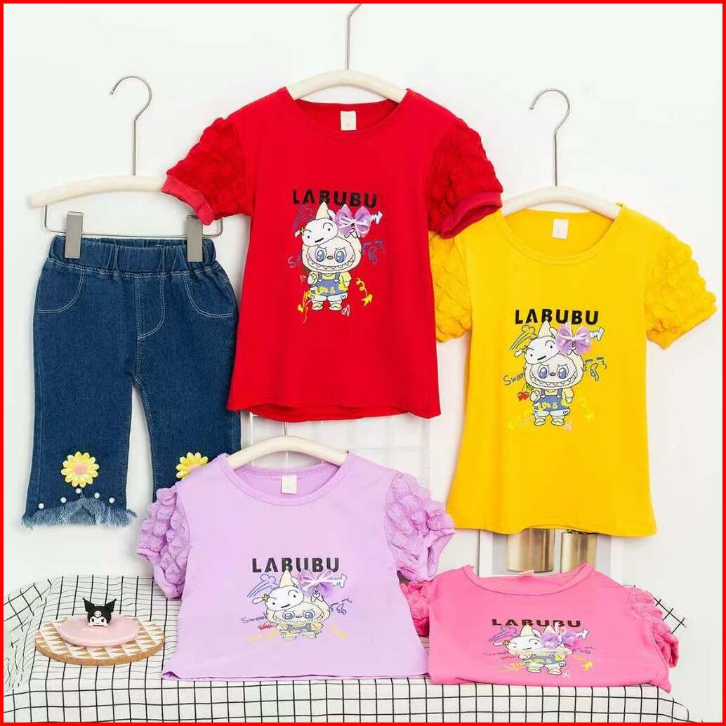 Paket Hemat 2 Setel Setelan Kaos Anak Perempuan Import Usia1-7tahun Set Celana Jeans Anak Perempuan