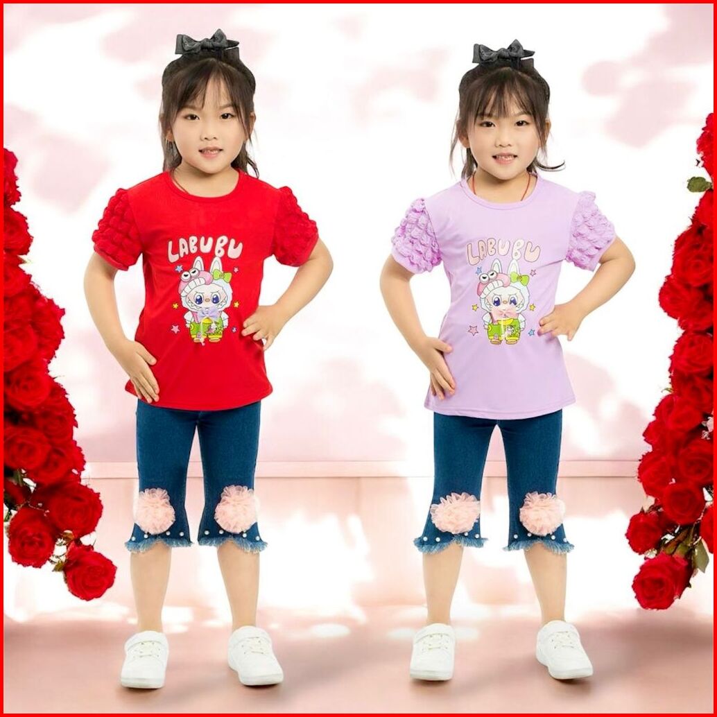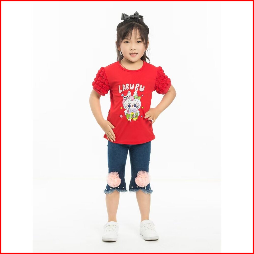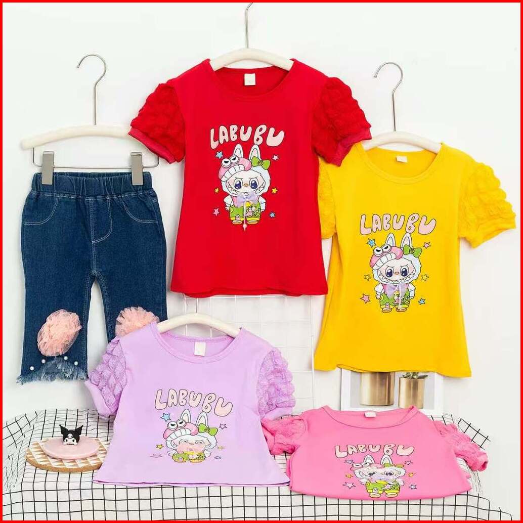 Paket Hemat 2 Setel Setelan Kaos Anak Perempuan Import Usia1-7tahun Set Celana Jeans Anak Perempuan