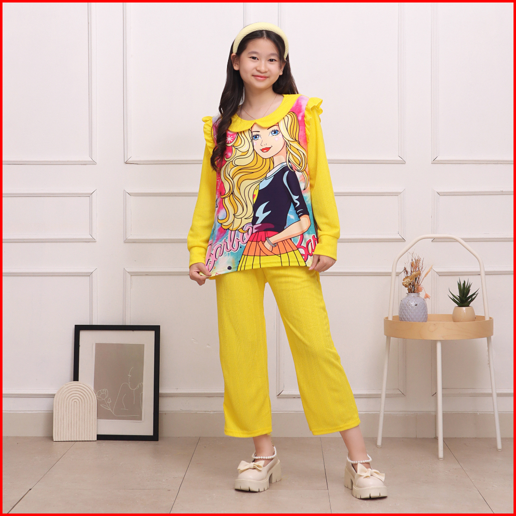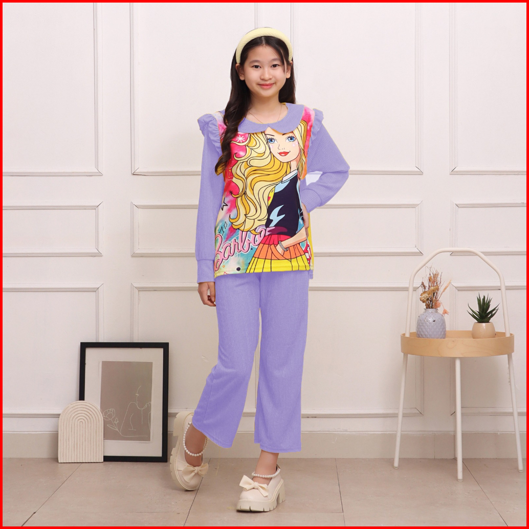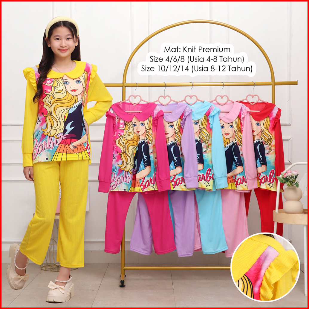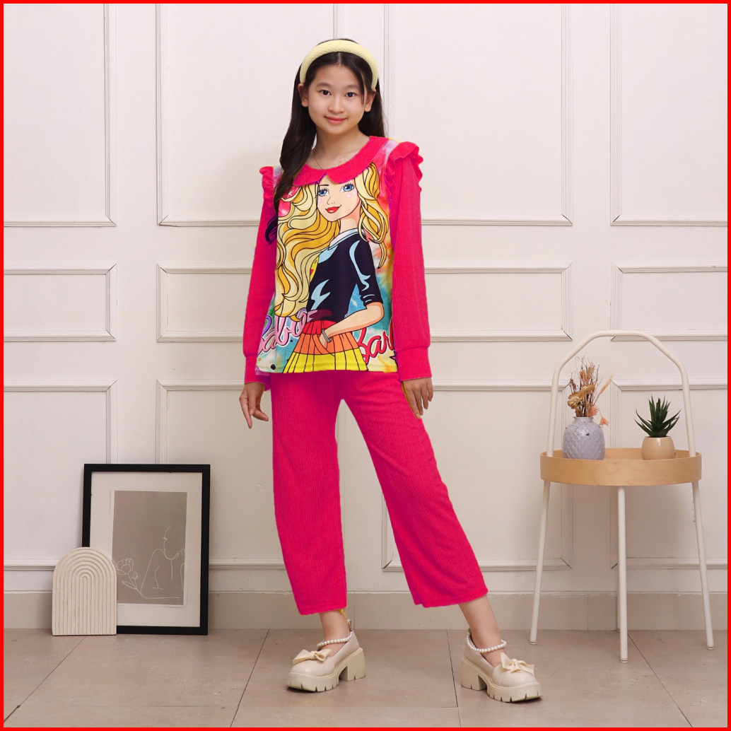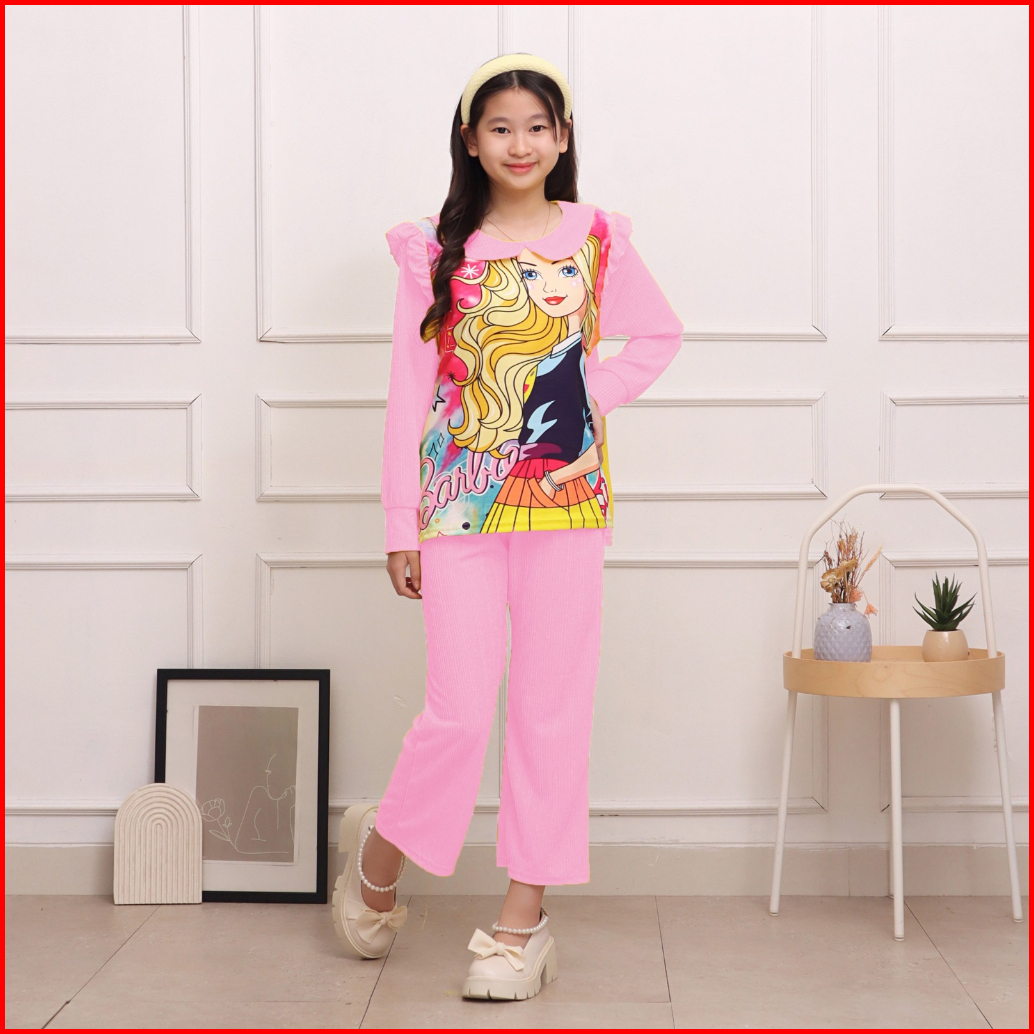 Baju Setelan Anak Perempuan Barbie Usia 4-12 Tahun Bahan Knit Premium