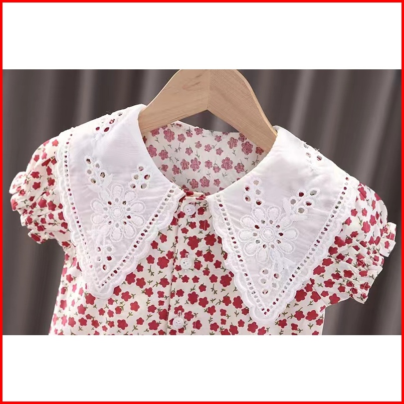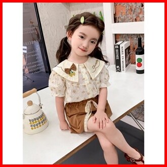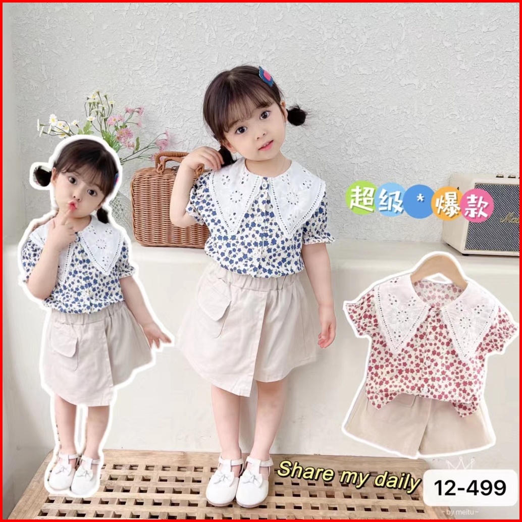 Setelan Kemeja Baju Anak Perempuan Lengan Pendek Usia 1-4 Tahun Setelan Baju Katun Anak Perempuan Import