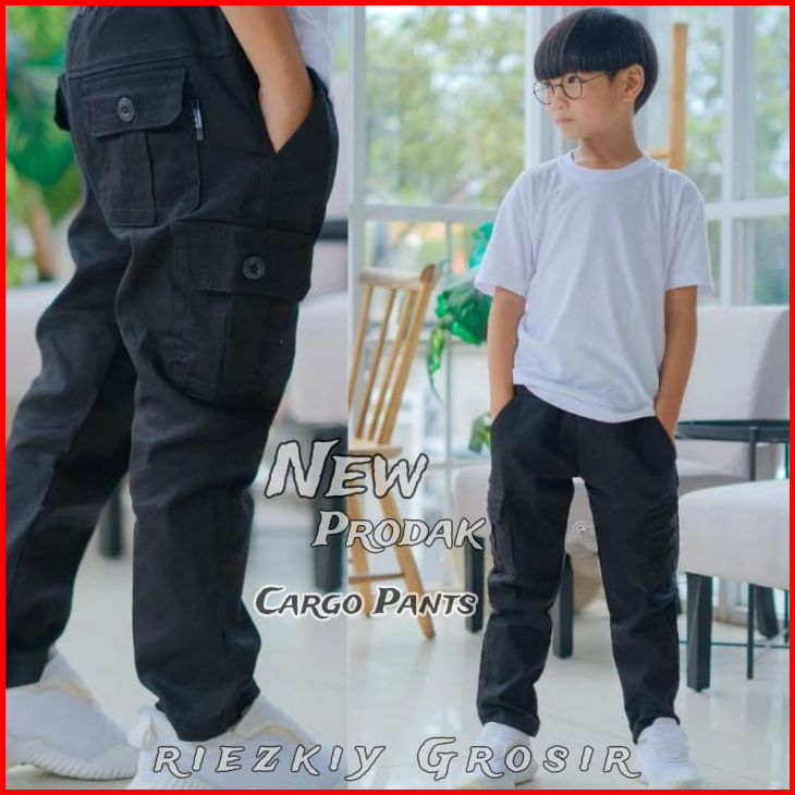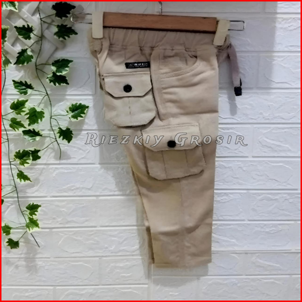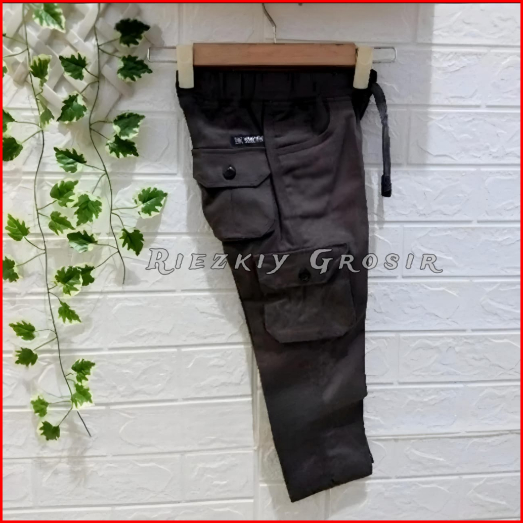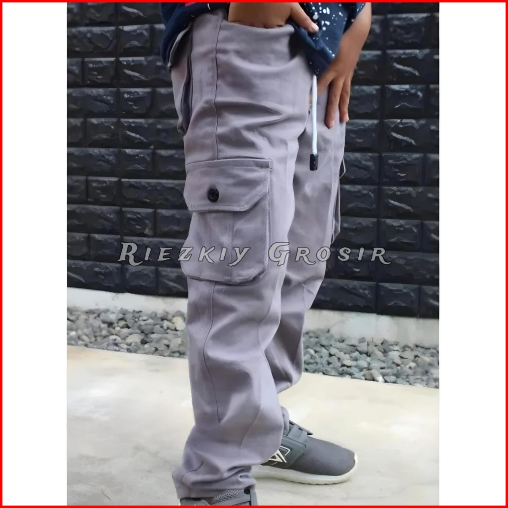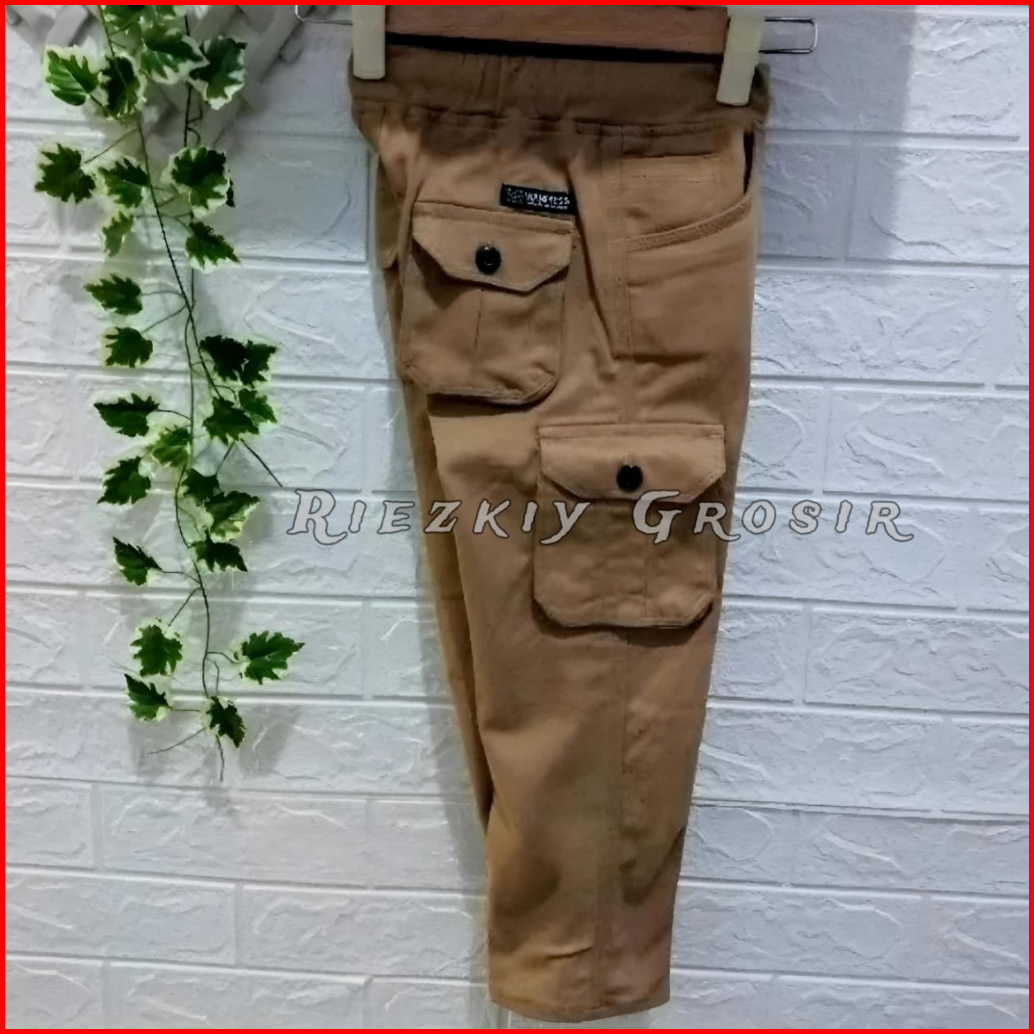 Riekiy -celana Panjang Anak Cargo Umur 1-15 Tahun Kain Tuwill Sretich Premiyum Kain Twill Strech