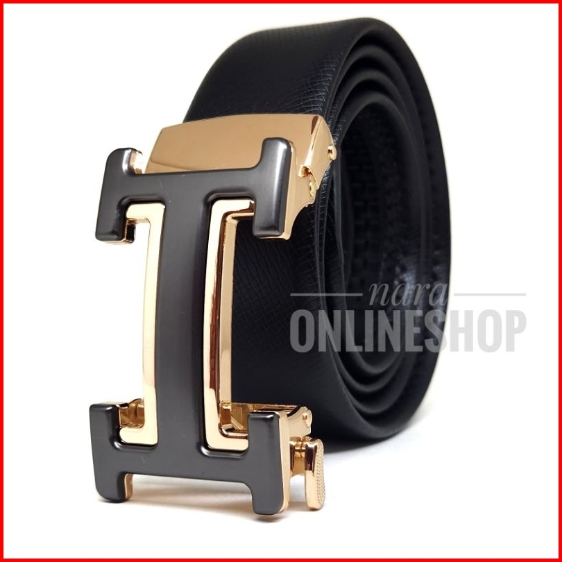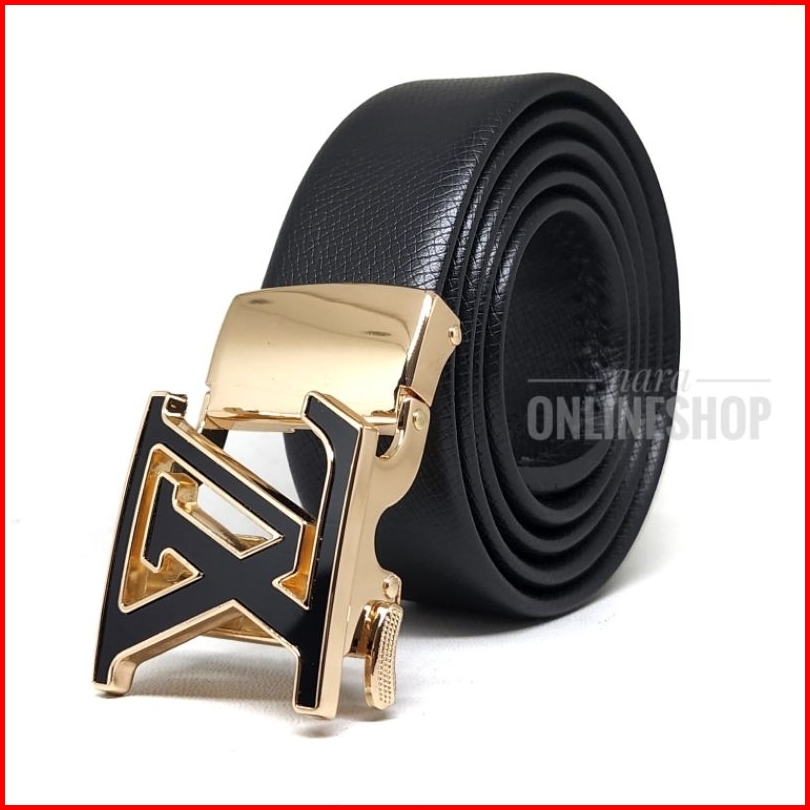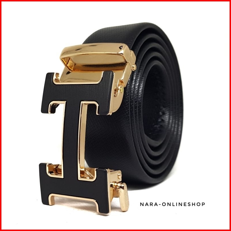 Ikat Pinggang Gesper Pria Model Rel Kulit Big Size 150cm Black Men Belt Kualitas Premium