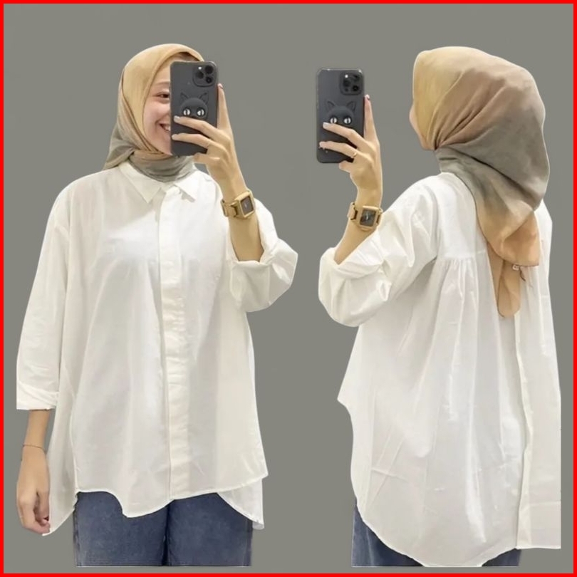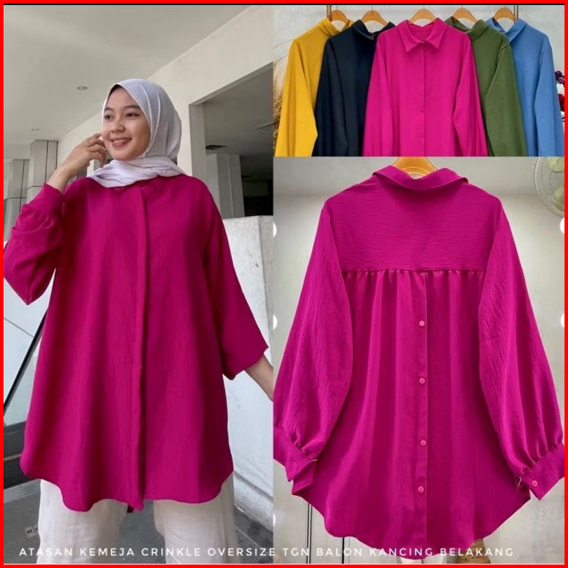 Kemeja Oversize Wanita Jumbo Oversize Wanita Krinkel Airflow Blus Wanita Kancing Belakang
