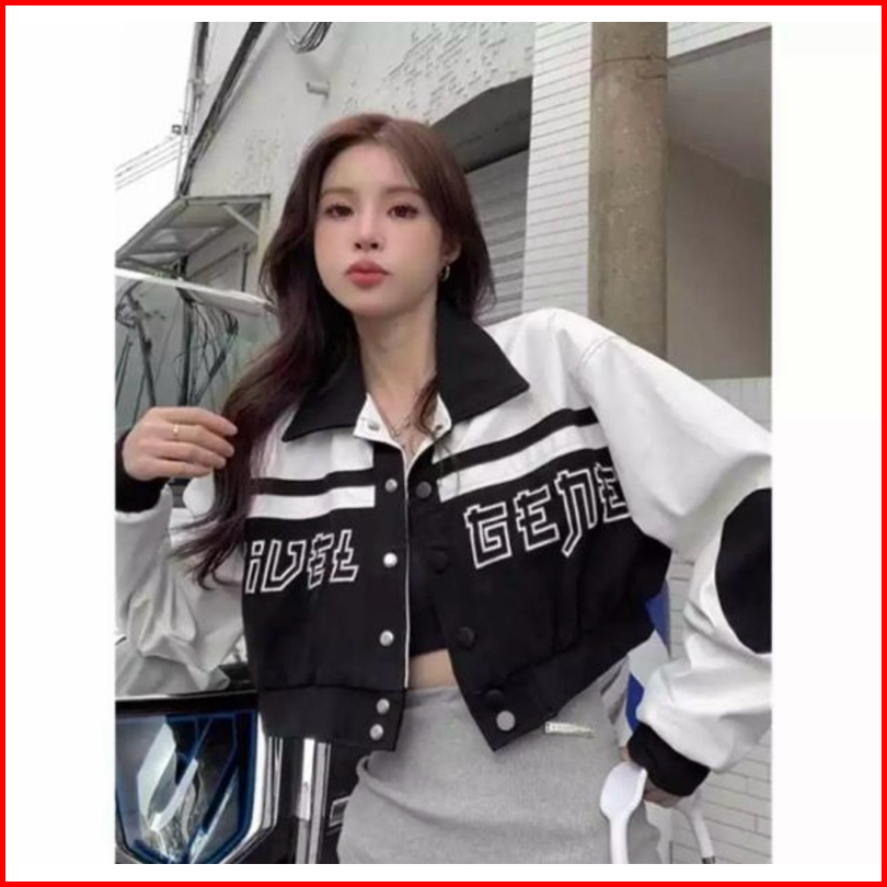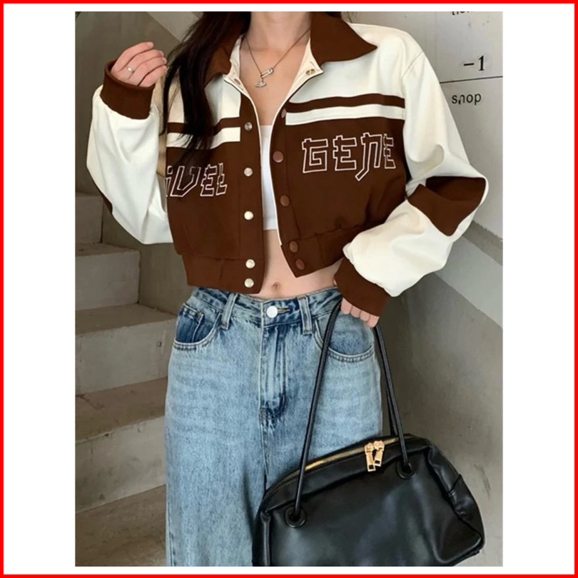 Jaket Crope Wanita Y2k Crope Korean Style Varsity Wanita