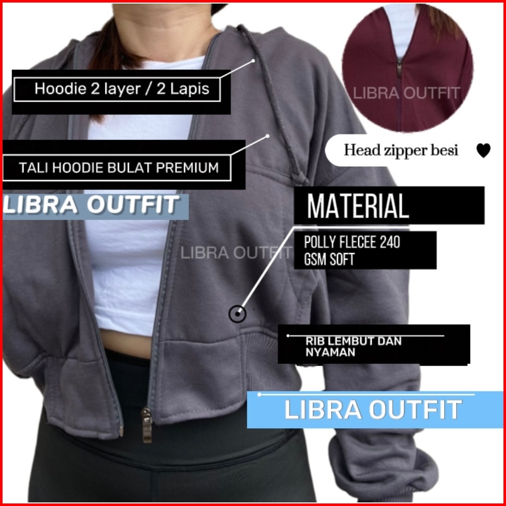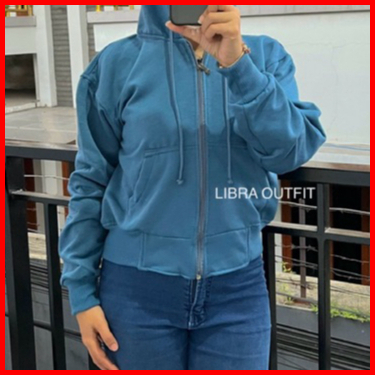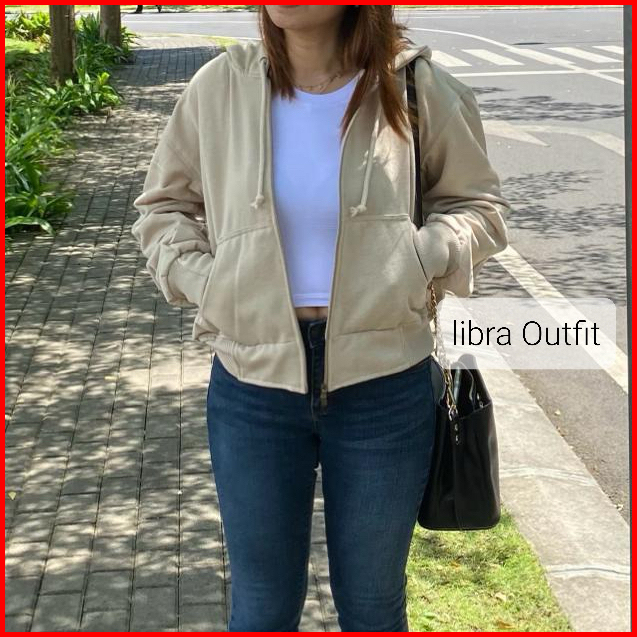 Oversize Crop Wanita Jaket Crop Ziper Wanita Jaket Crope Zip Up Hodie Carla By Libra