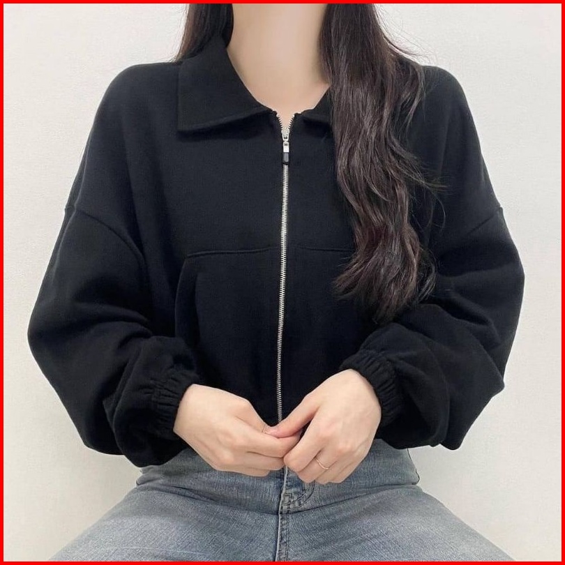 Jaket Wanita Vada Collar Crope Korean Style Jaket Sweater Vada Collar Crope Outerwear Pakaian Wanita Vada Colar Jaket