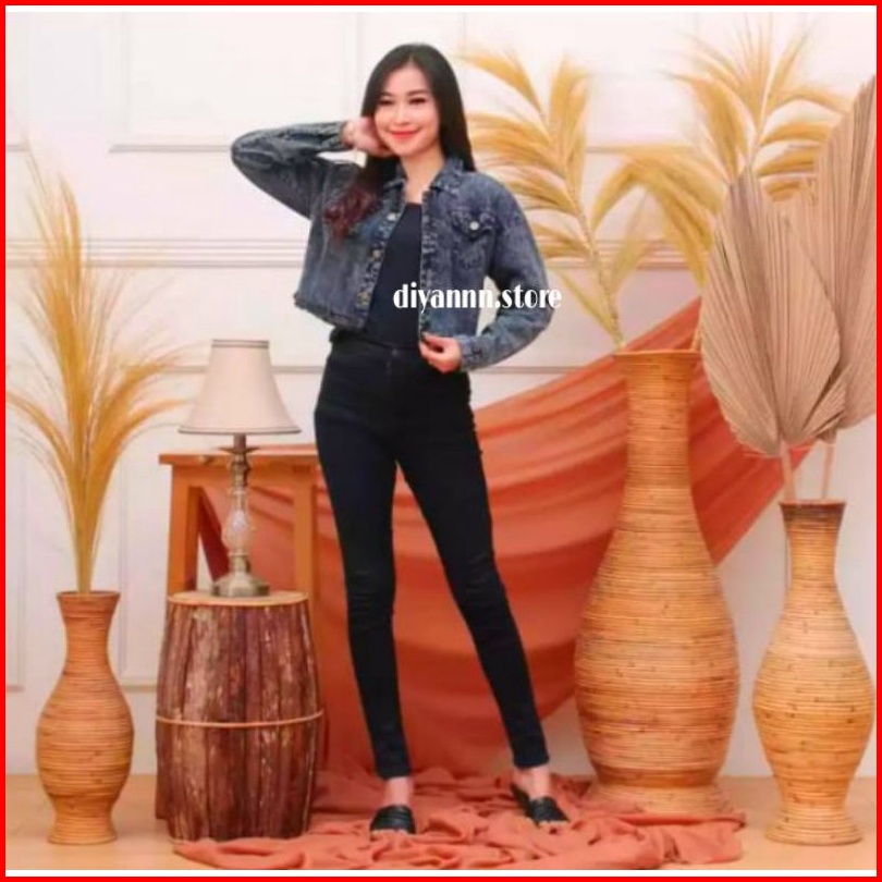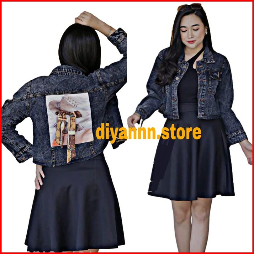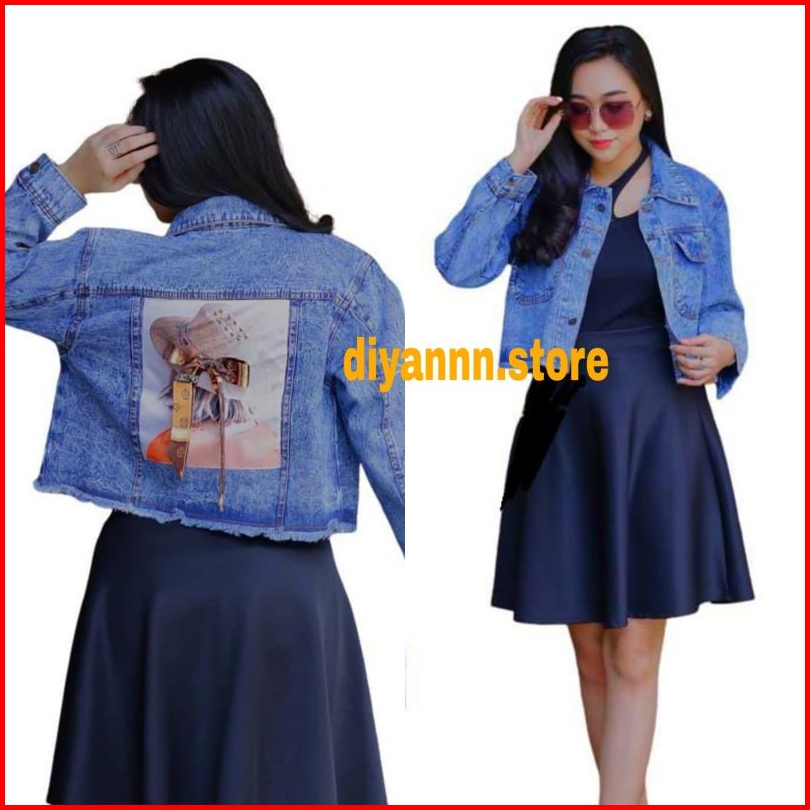 Jaket Jeans Wanita Crop Belakang Pita Jaket Emblem 3d Denim Oversize Murah Cewek Kekinian Model Jins Sobek Rawis
