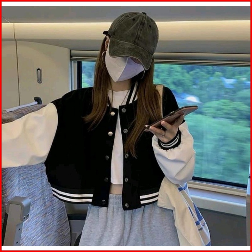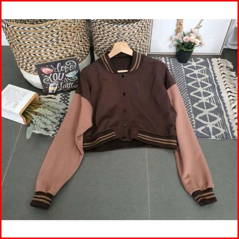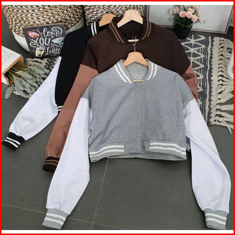 Jaket Baseball Crop Wanita