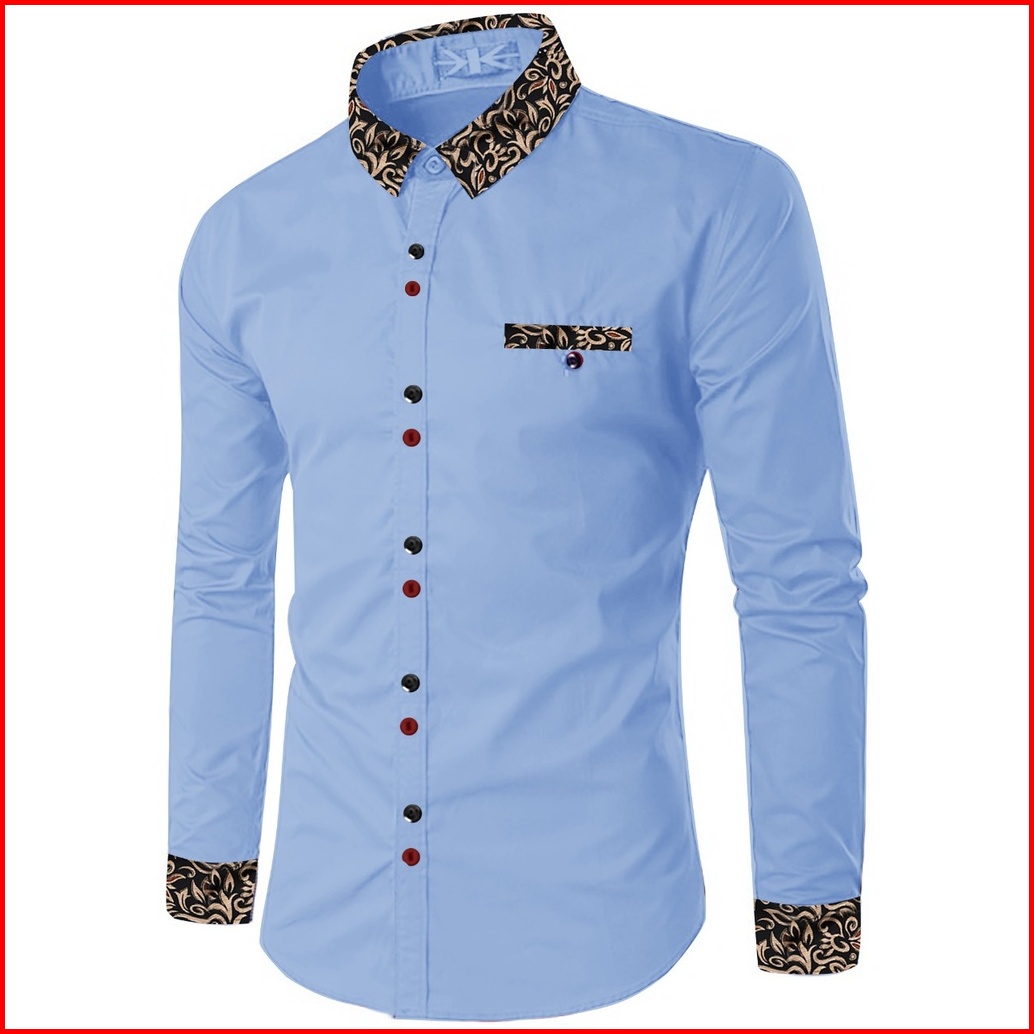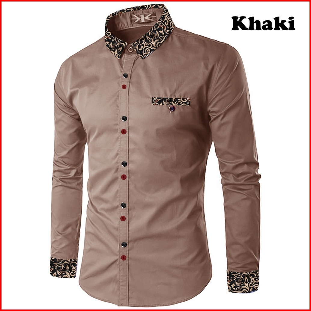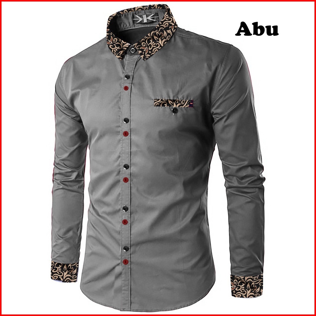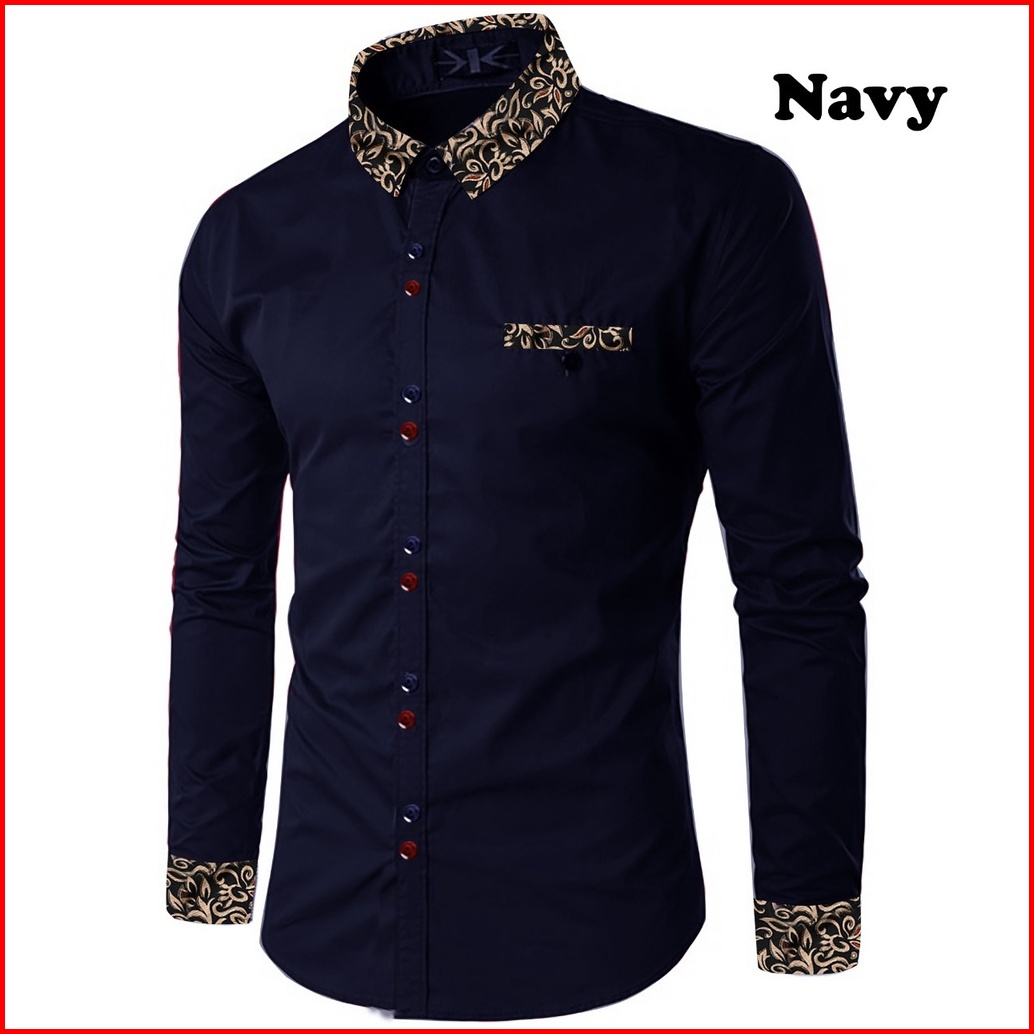 Kiyowo-kemeja Fashion Riko Kombinasi Batik Kasual Lengan Panjang Pria