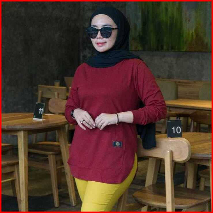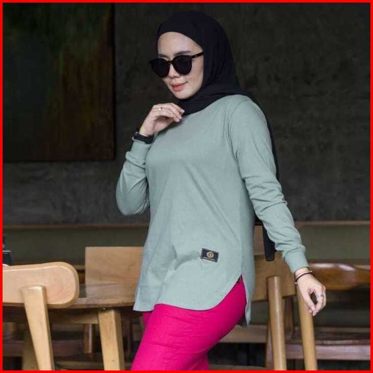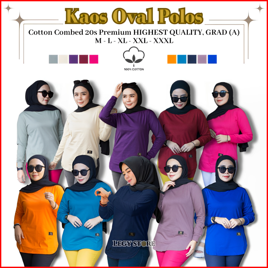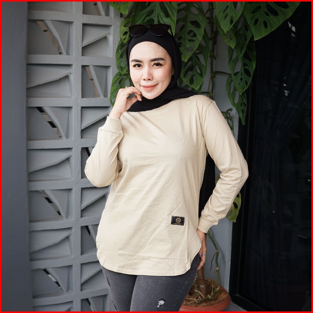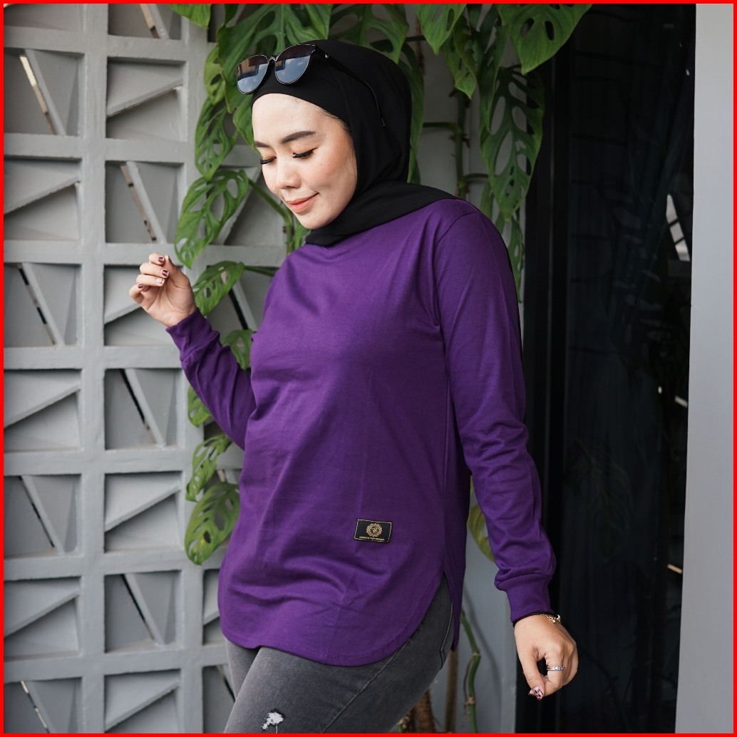 Atasan Wanita Polos Body Oval Lengan Panjang Jumbo Top Basic Katun Combet 20s Hijab Style