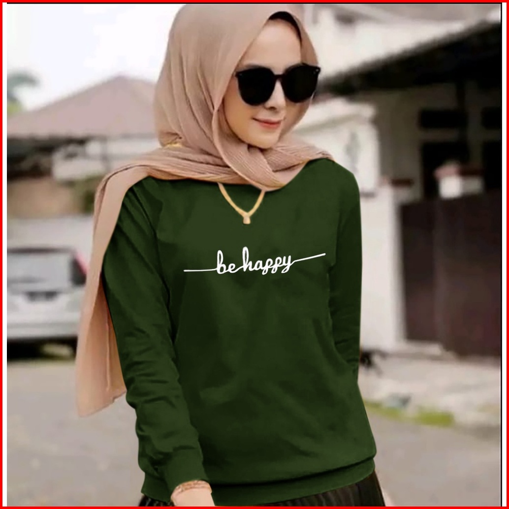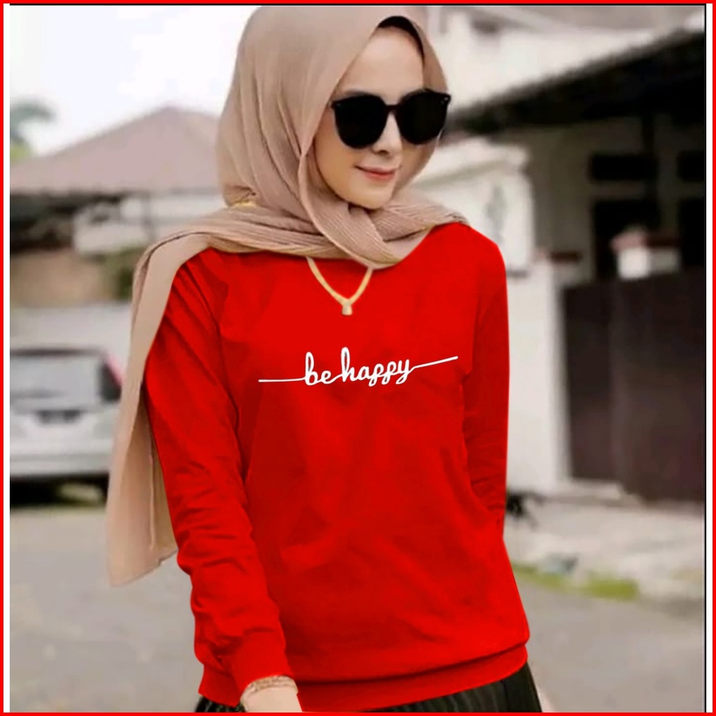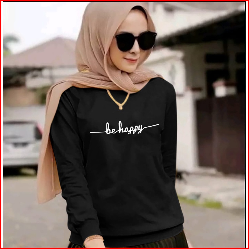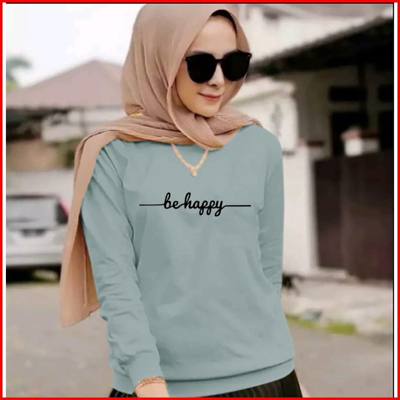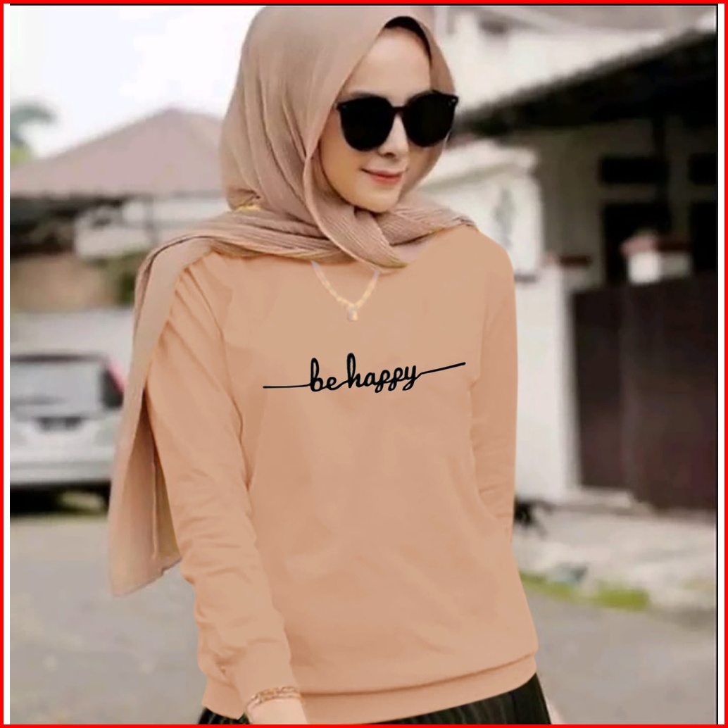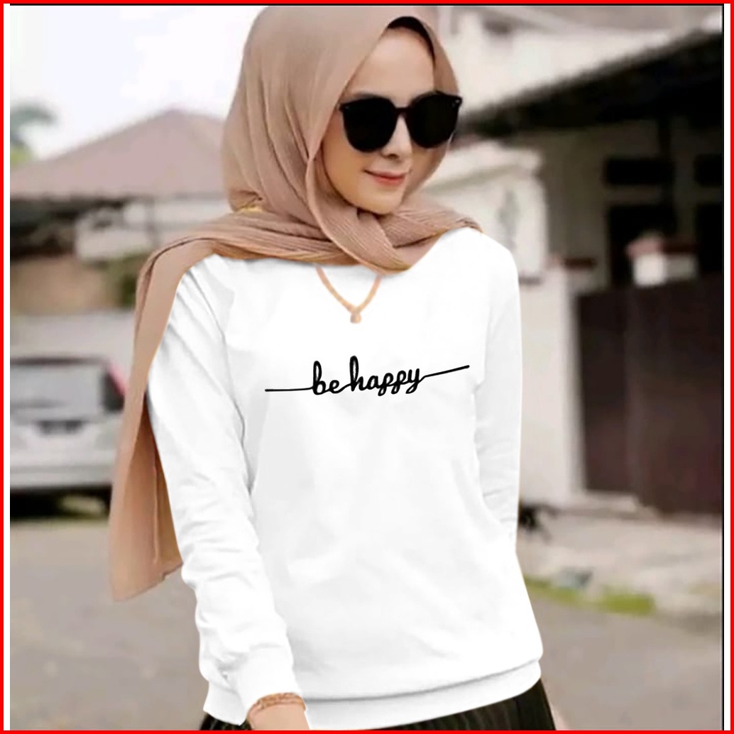 Collection Cools - Baju Behappy Trending S M L Xl Xxl Wanita Terbaru - Kaos Distro Keren Cewek Lengan Panjang Masa Kini